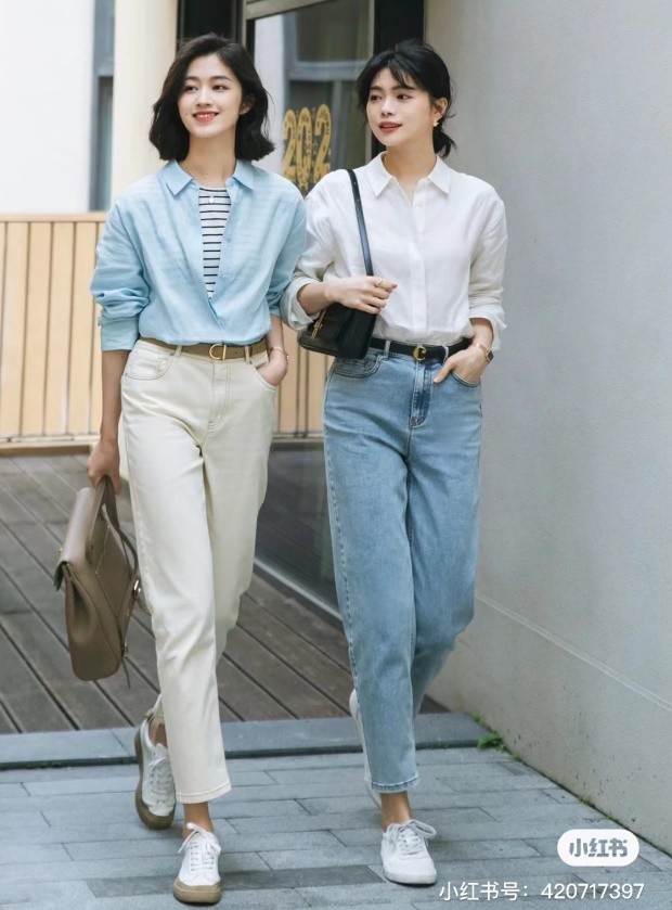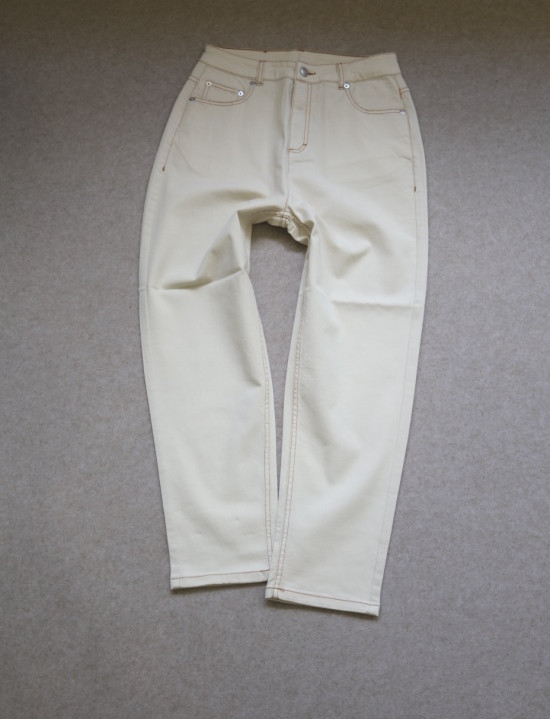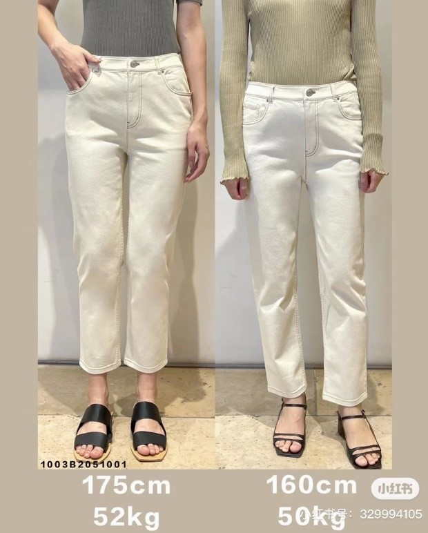 这是两个系列 裤型类型 算小直筒吧 整体微收下来 小腿并没有很窄