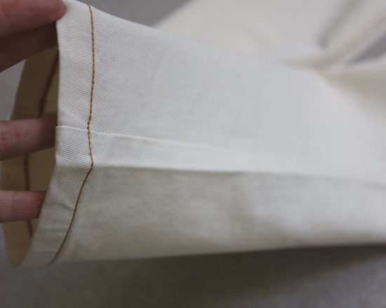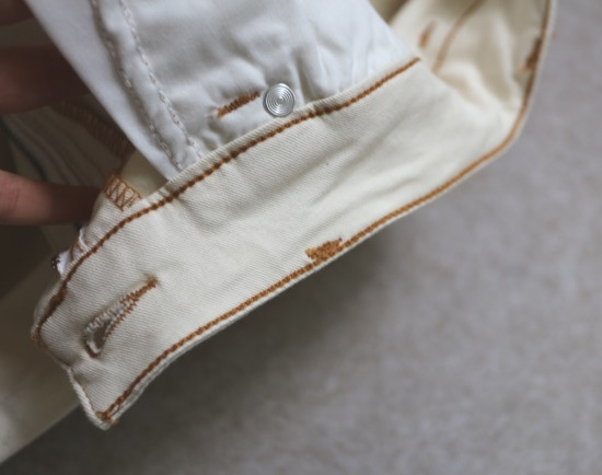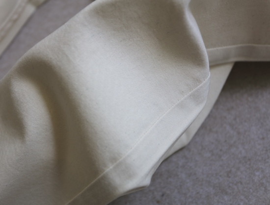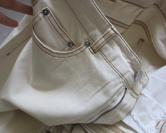 米白色的缝线 更黄一点 仔细看有小黑点 这是原棉的籽 可不是瑕疵