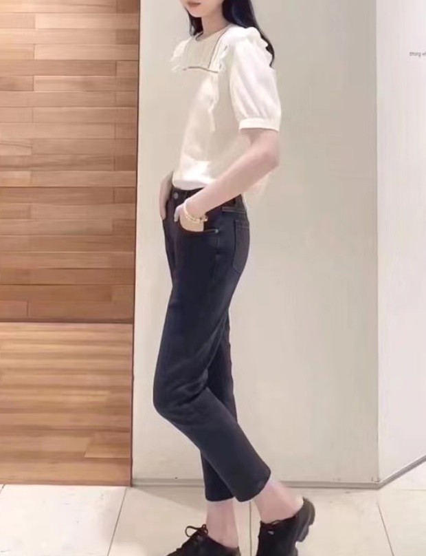 注意啊 跟套装款的牛仔裤 裤型不太一样 那款是有点微垮的