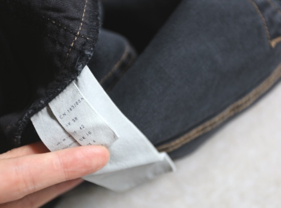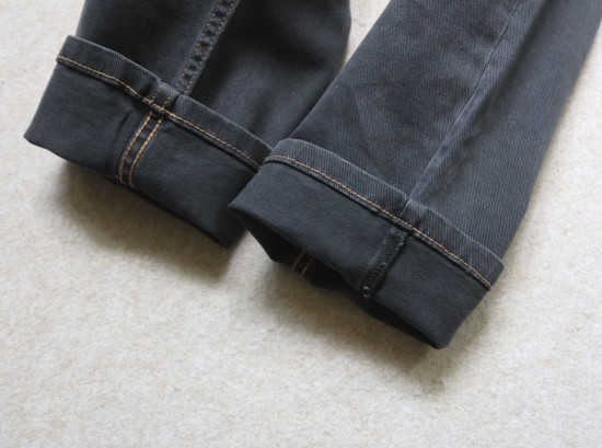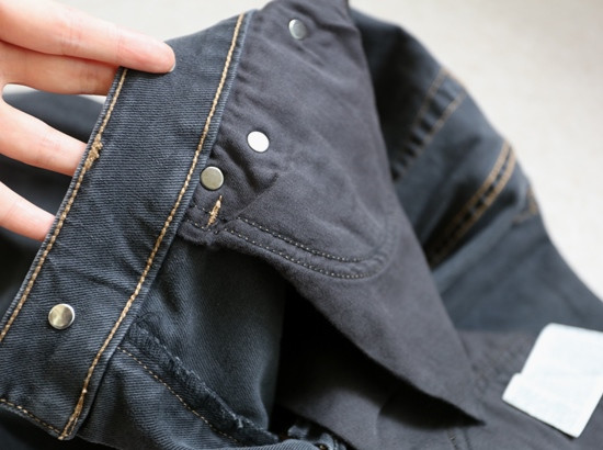 黑灰款 典型牛仔质地 成衣过水洗的 所以里面的水洗标 也被染色了