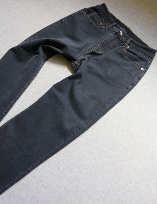 黑灰色 因为过水洗了 所以黄线颜色暗点 很均匀的磨白效果