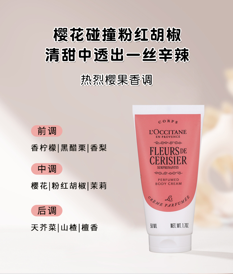 【小样】欧舒丹绮梦樱花香氛润肤霜50ml/102359 甄选天然植萃