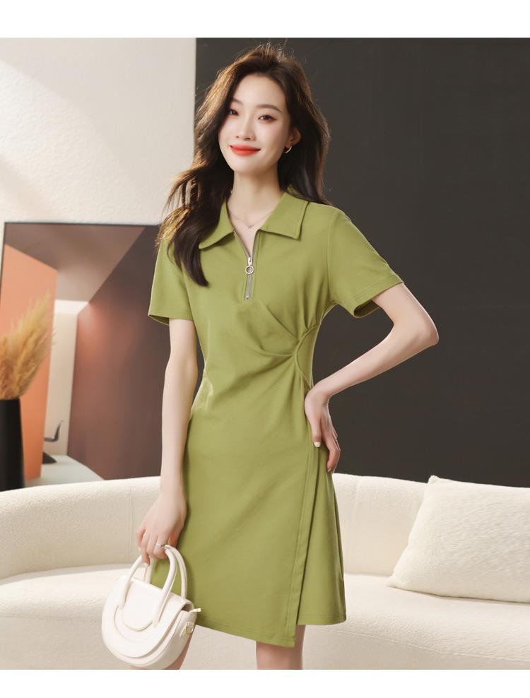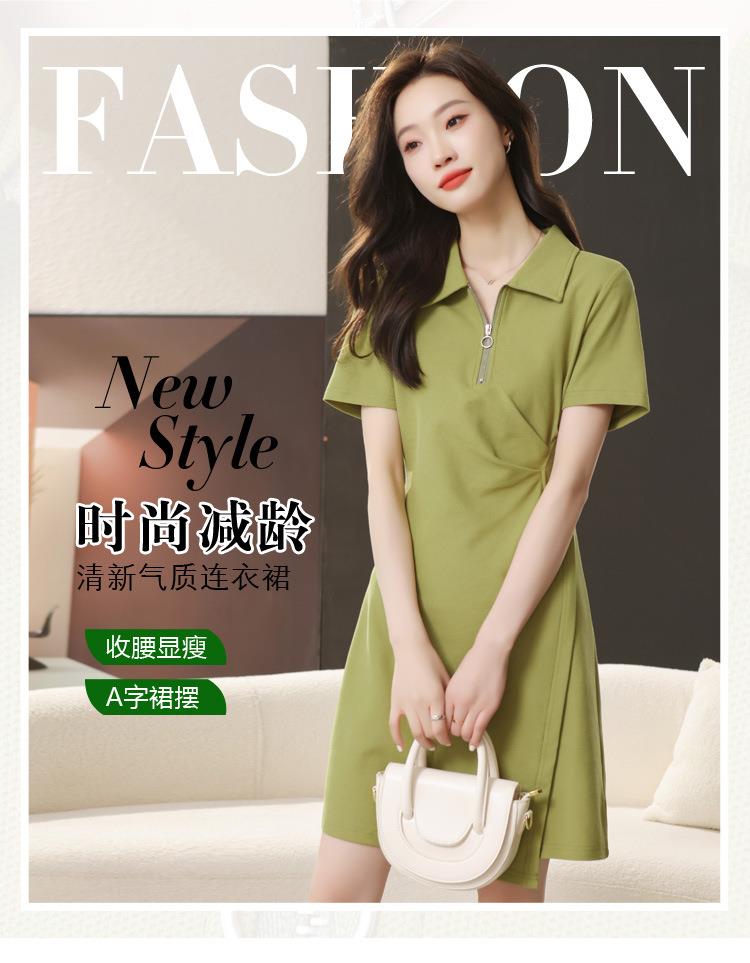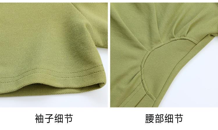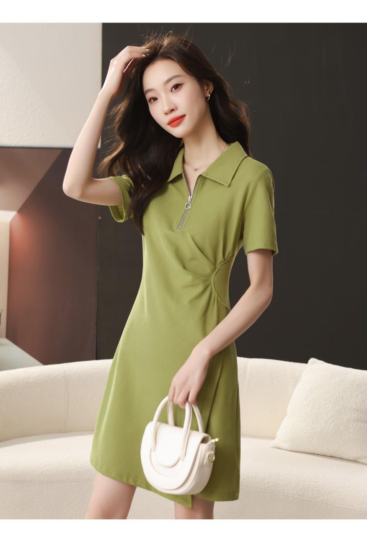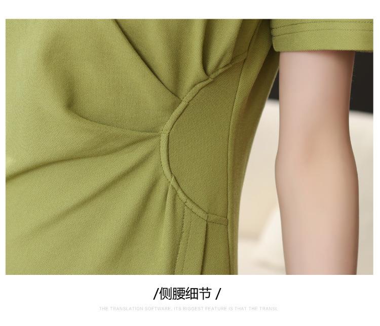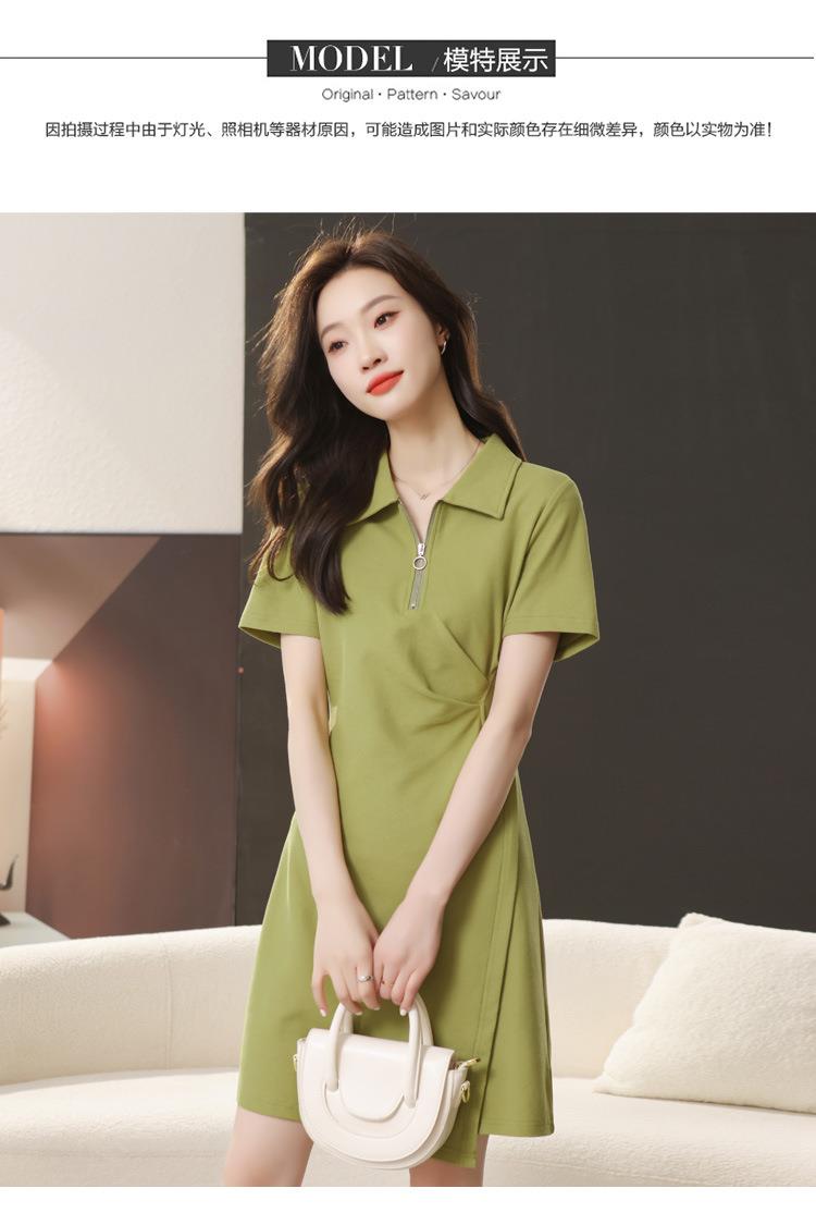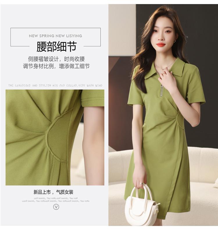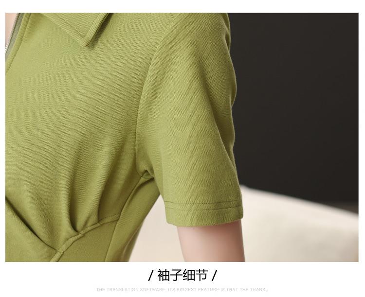 Polo领连衣裙夏季短袖2024新款女装绿色短袖高腰显瘦褶皱A字裙子