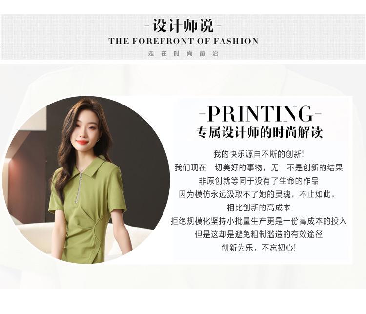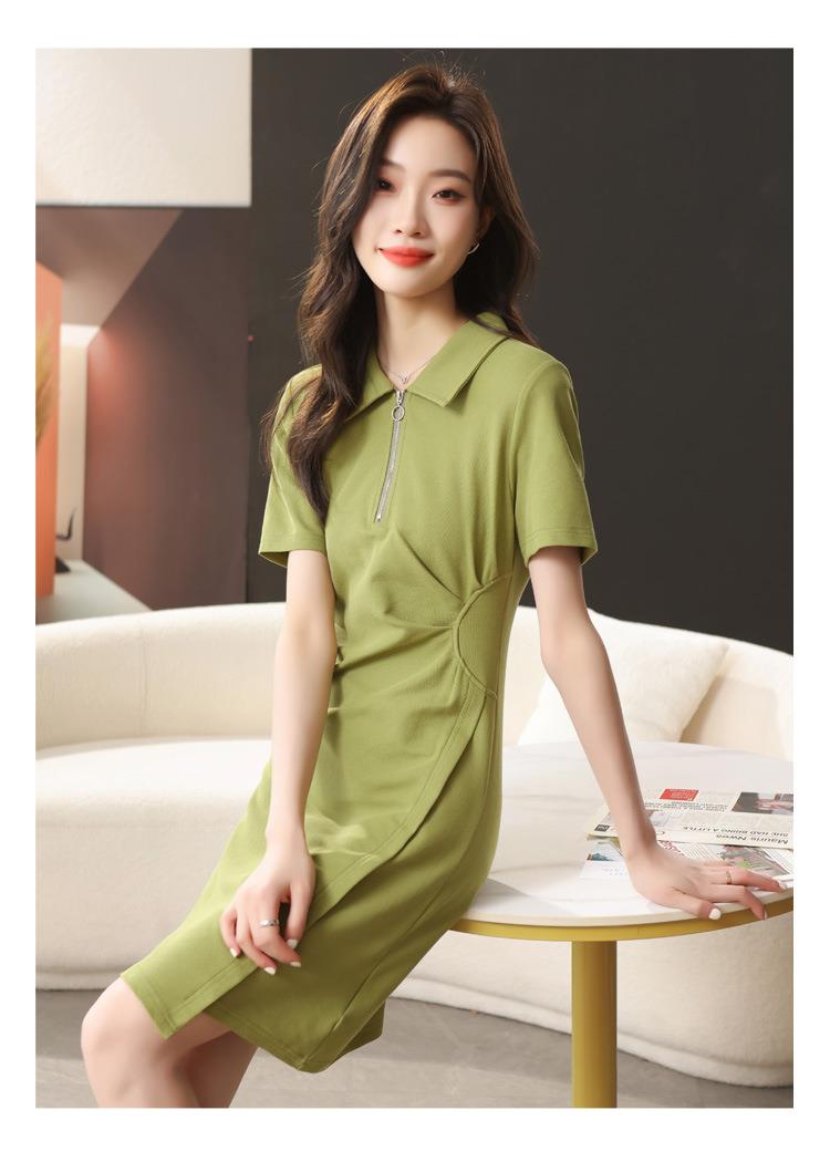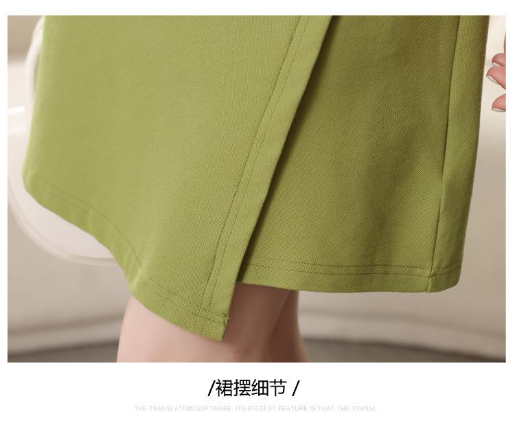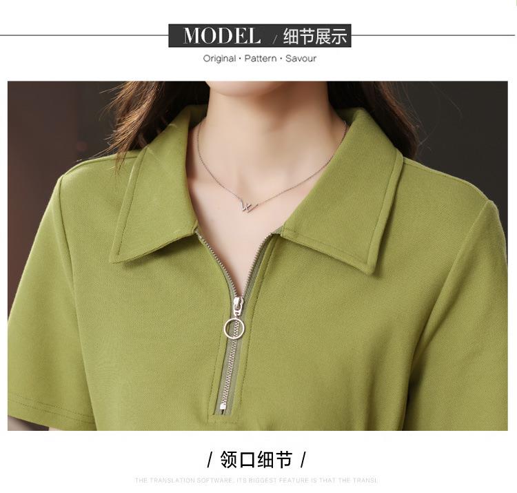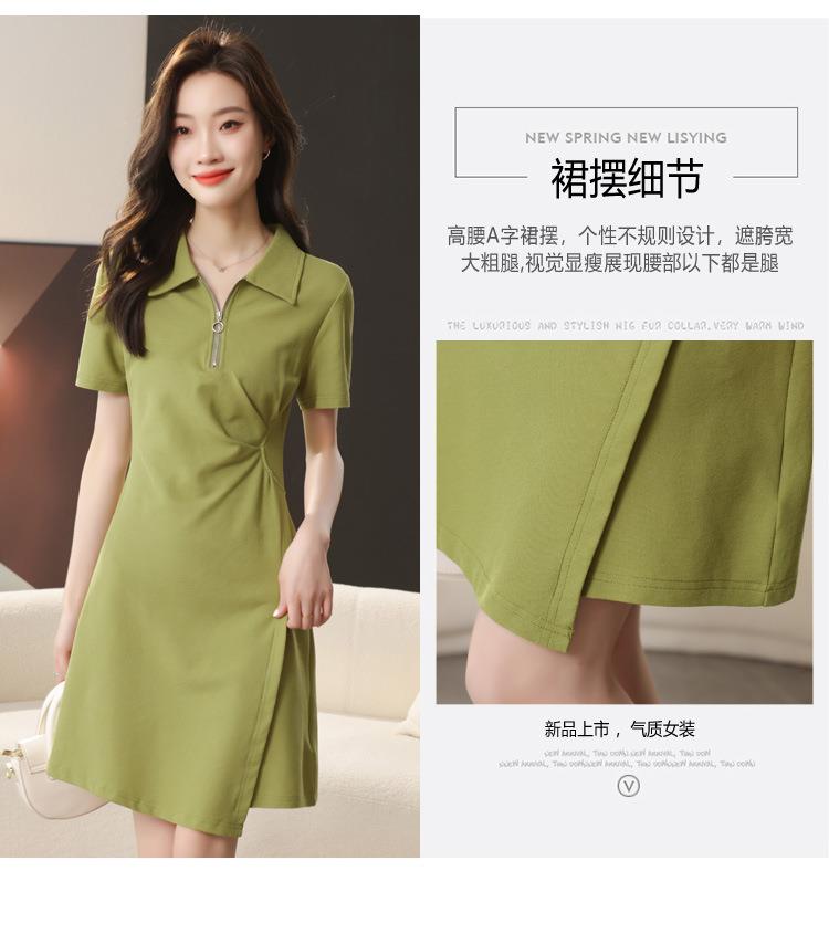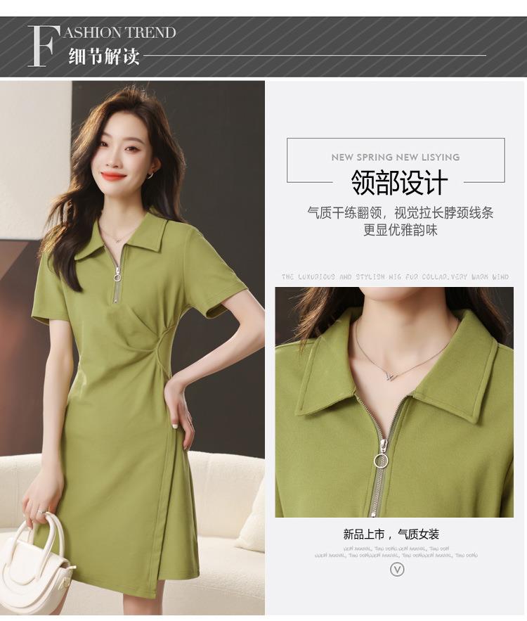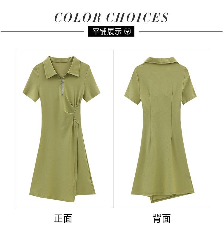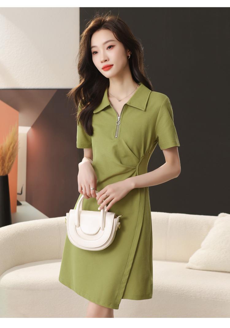 Polo领连衣裙夏季短袖2024新款女装绿色短袖高腰显瘦褶皱A字裙子