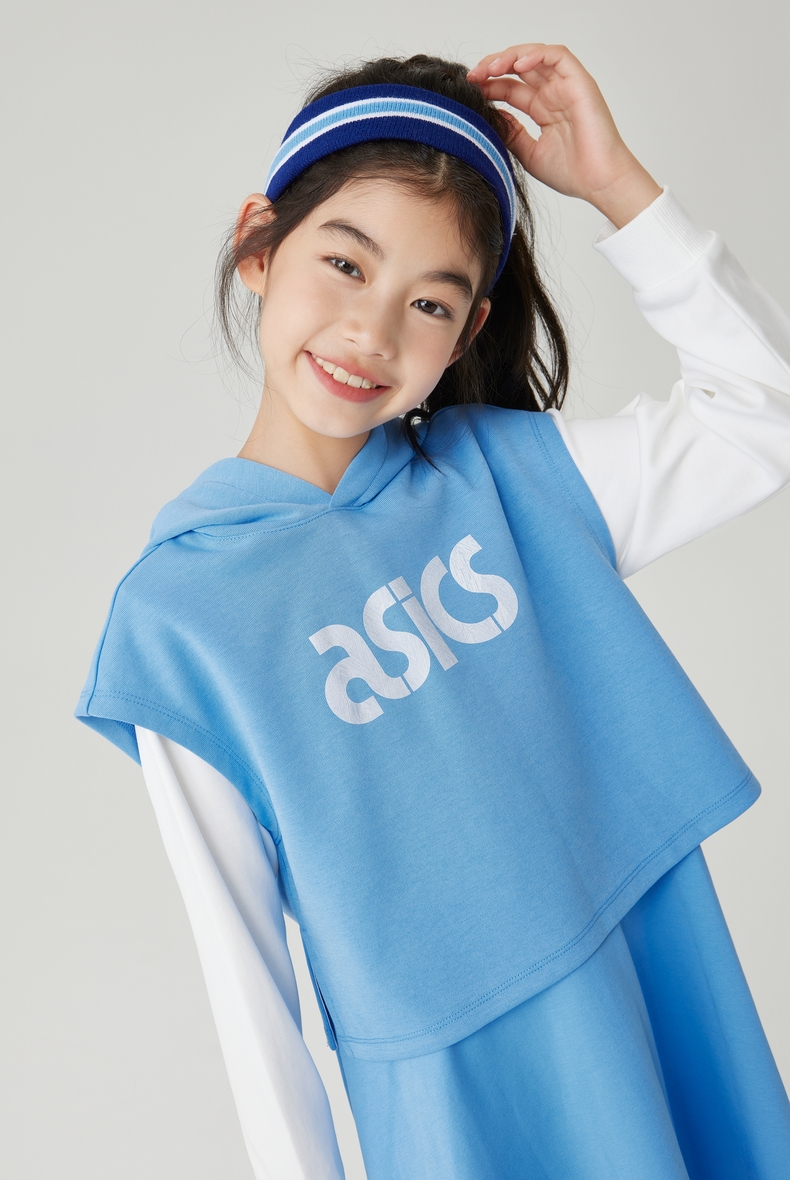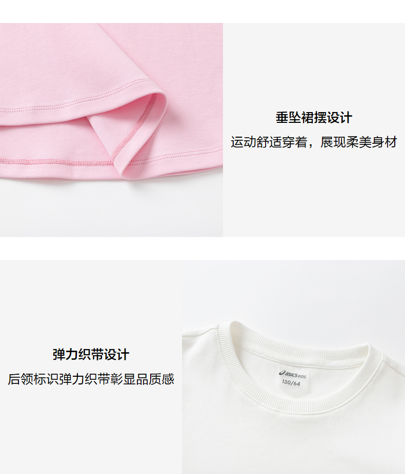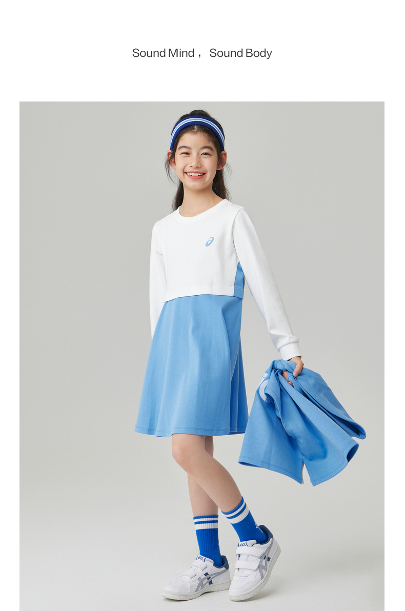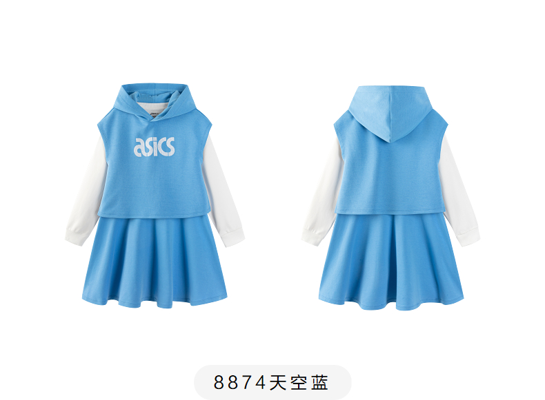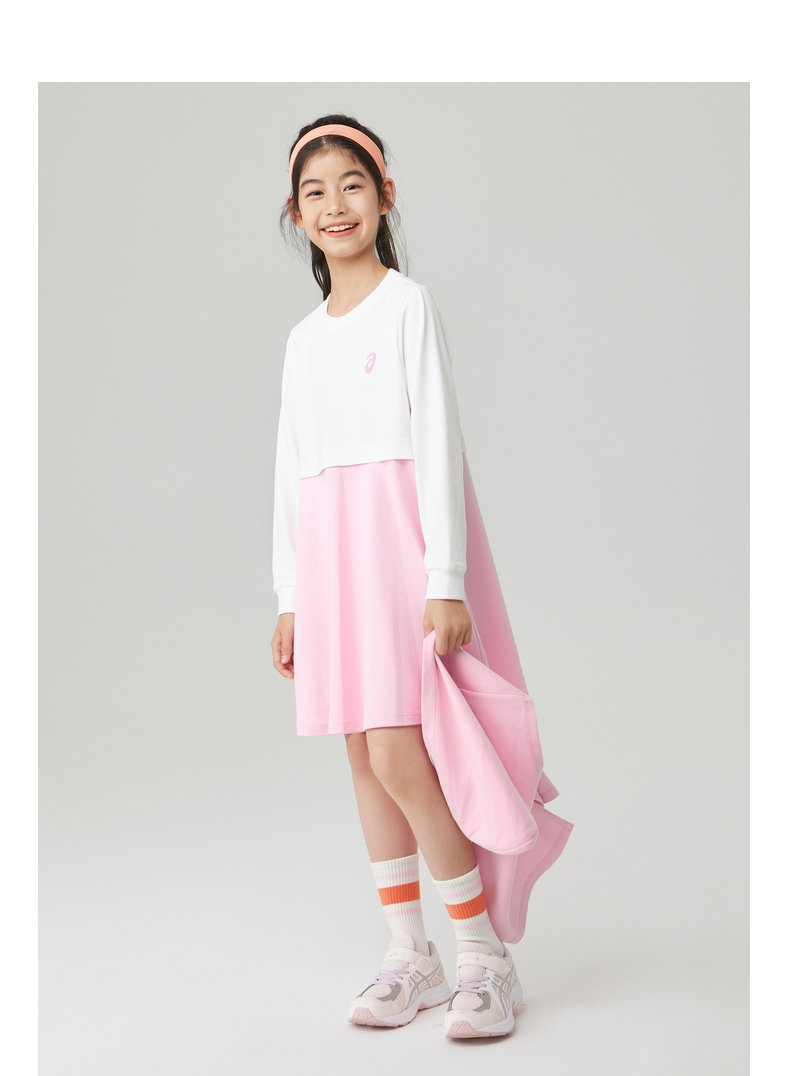 ASICS/亚瑟士童装2023年秋季新款女童运动休闲真假两件针织连衣裙