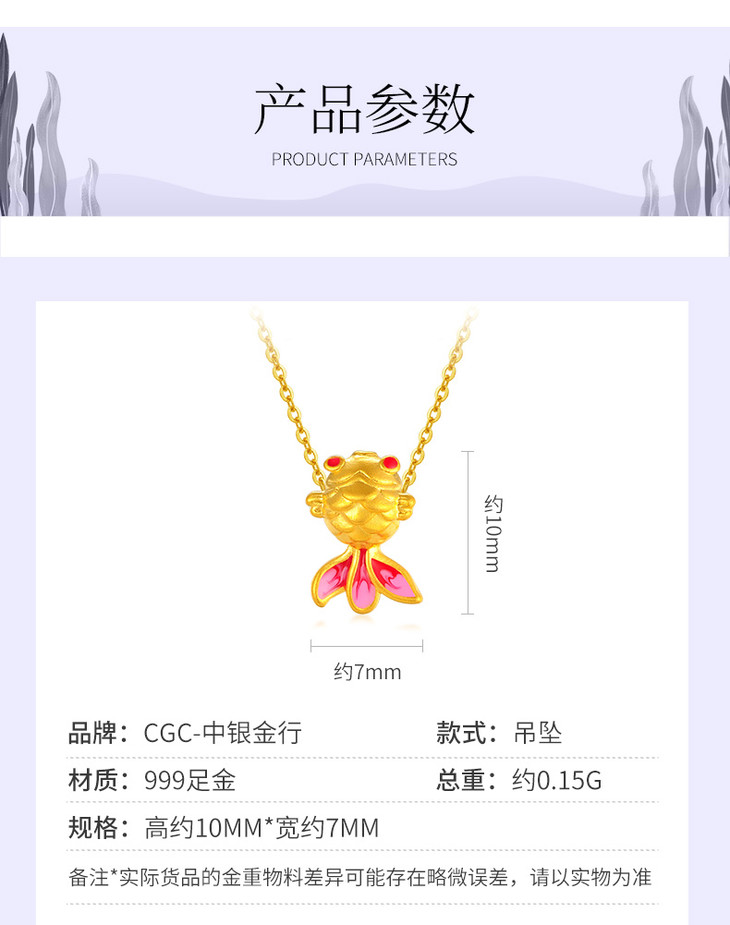 中银金行黄金金鱼吊坠女款足金吊坠波妞烤漆小金鱼挂坠送礼黄金吊坠重量约0.15g赠银项链DSCA0127