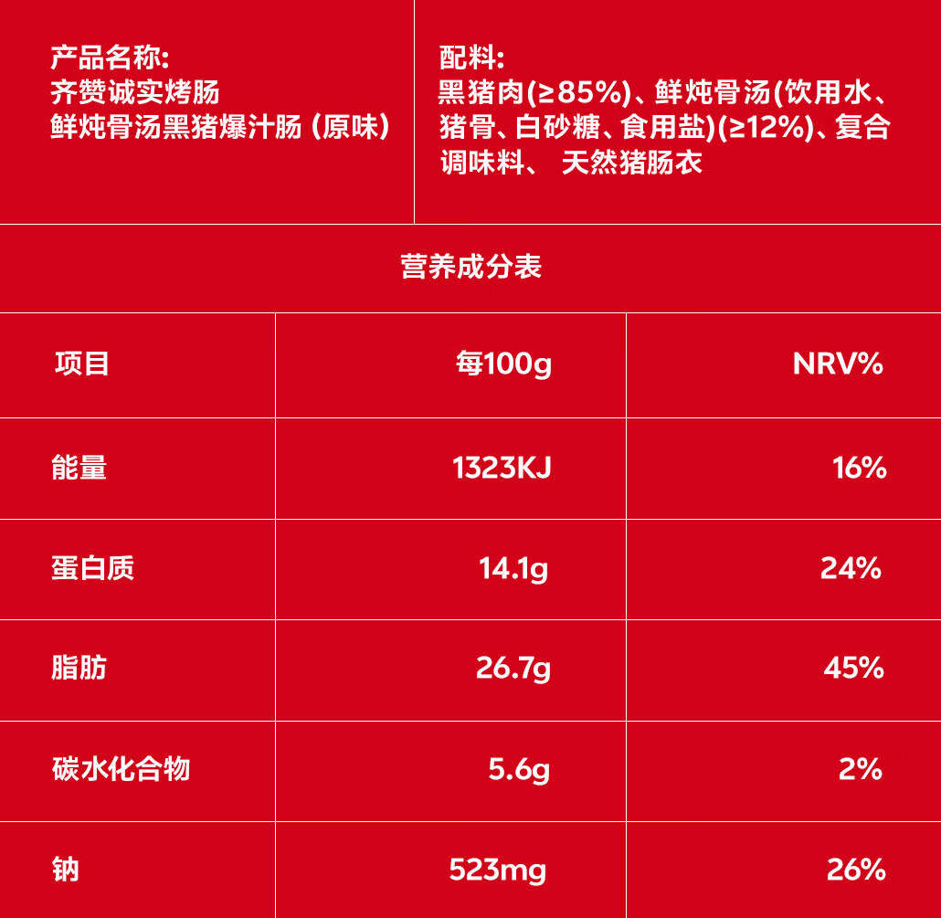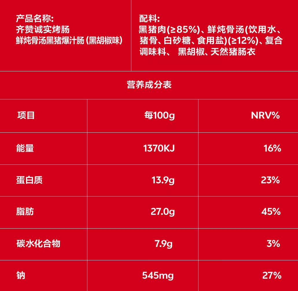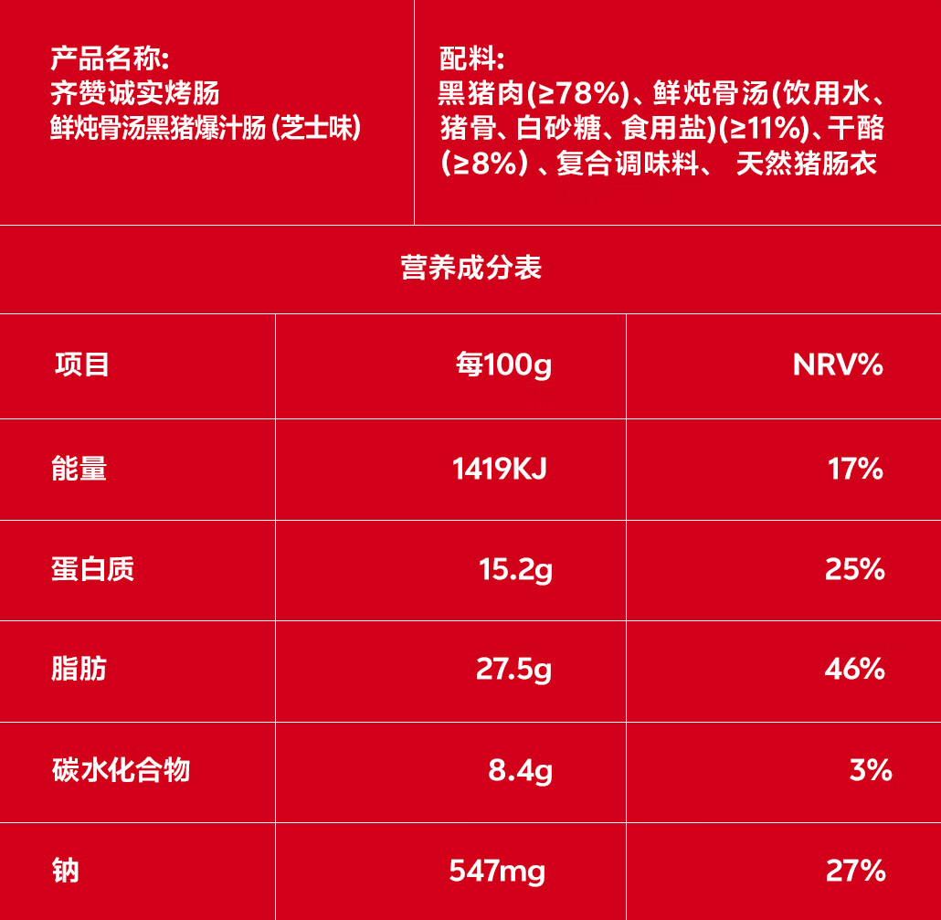 齐赞鲜炖骨汤黑猪爆汁肠芝士味