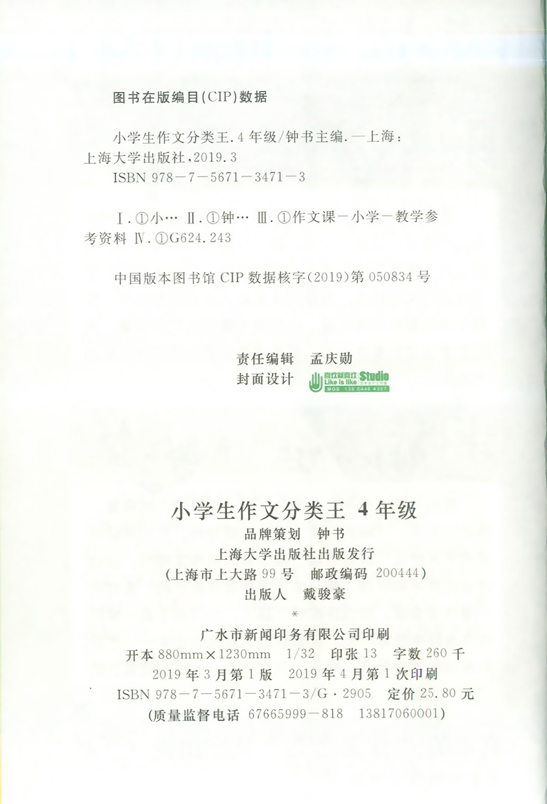 钟书作文榜样 小学生作文分类王 4年级/四年级 根据部编版教材写作要求编写 小学同步作文写作技巧训练 上海大学出版社