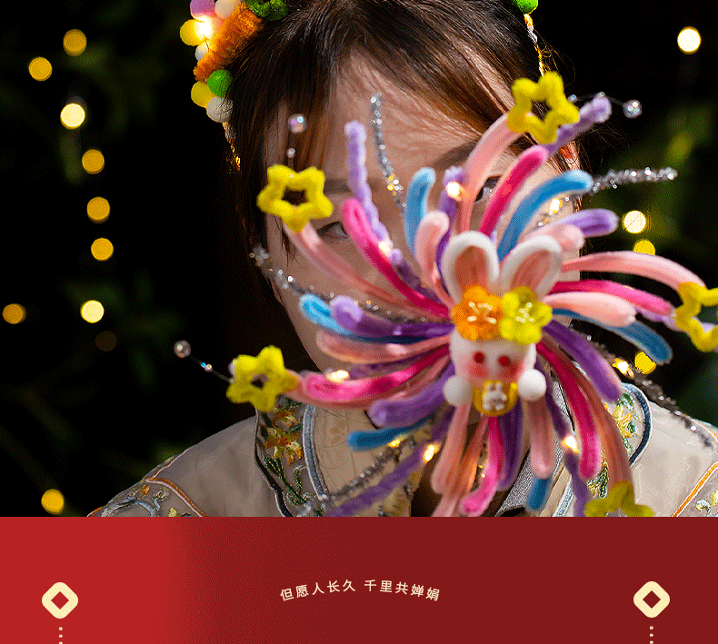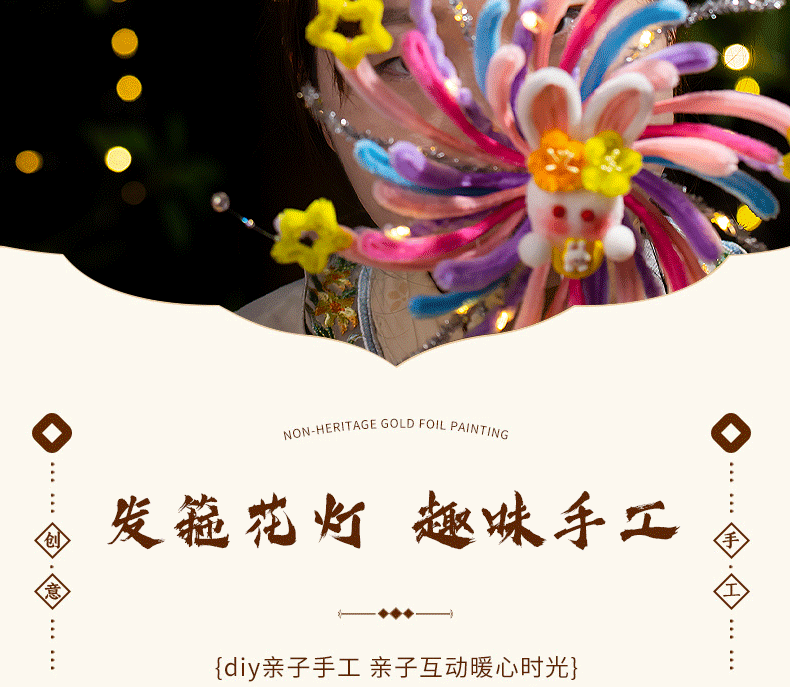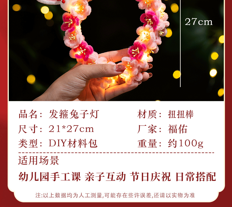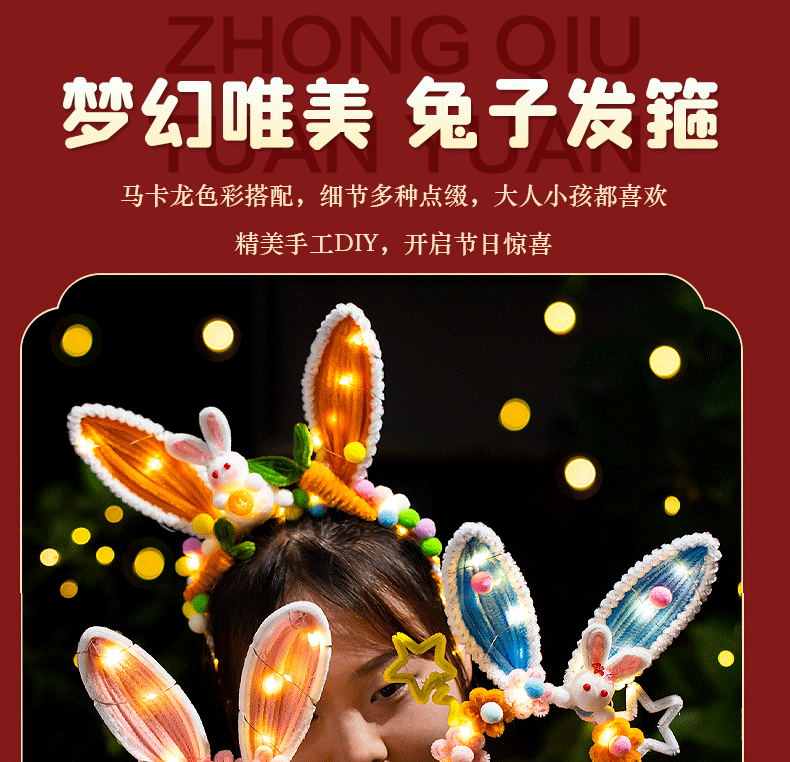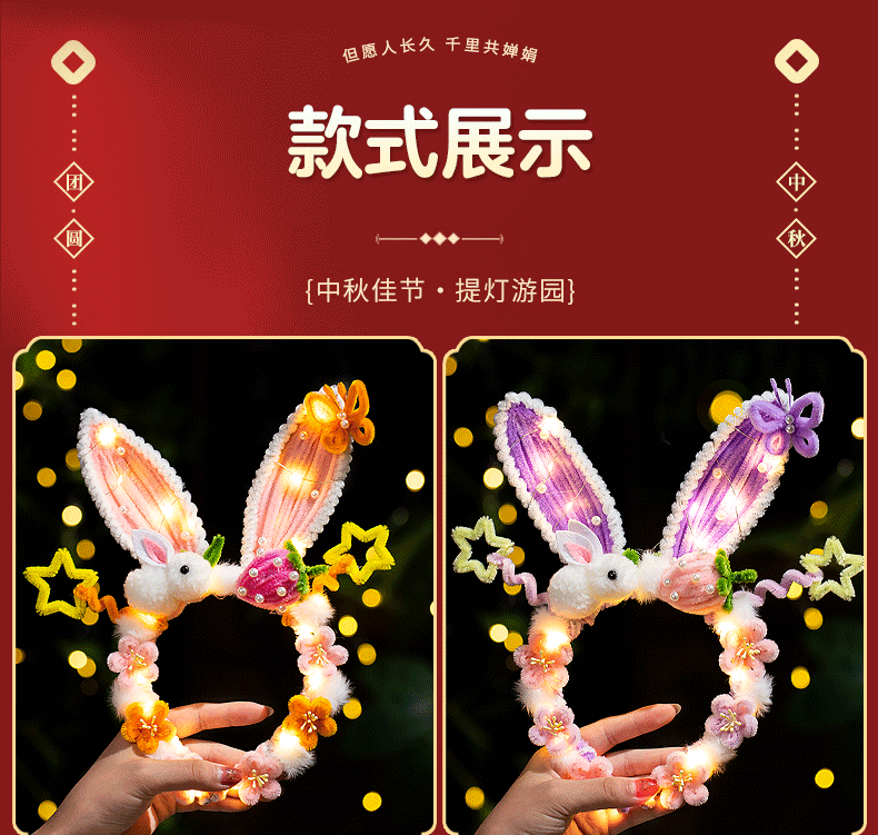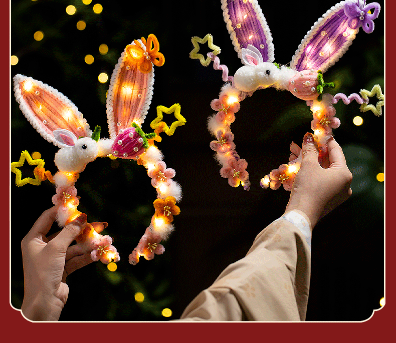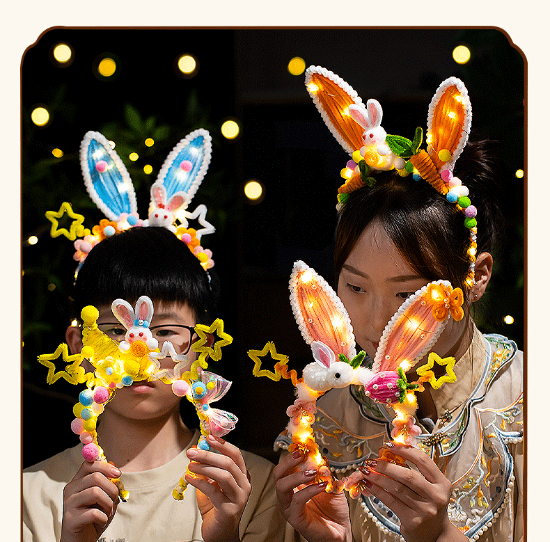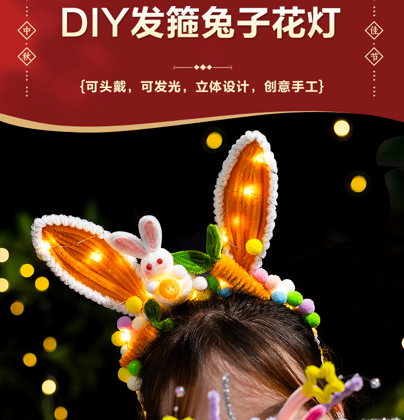 【DIY发箍兔子花灯!创意手工】可头戴,可发光,中秋节发箍兔子灯笼扭扭棒头饰手工diy材料包儿童发光小兔子花灯。rb