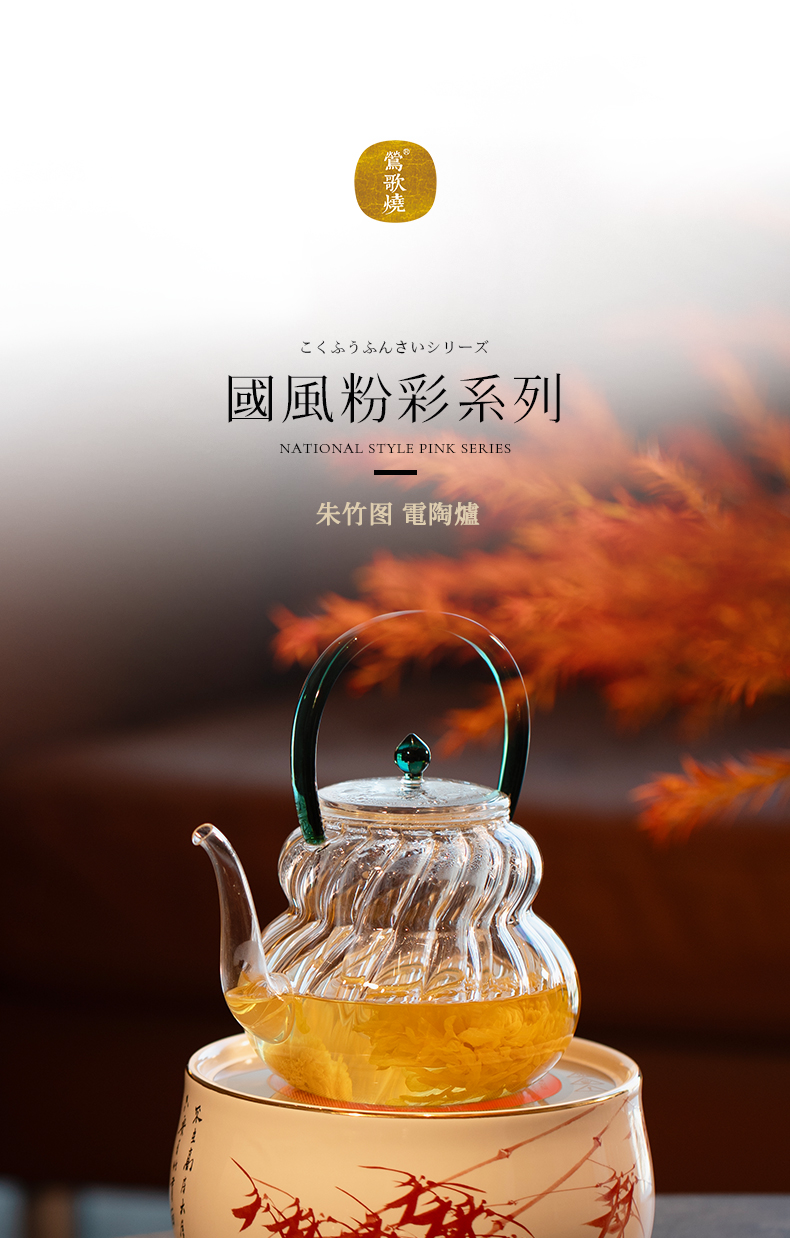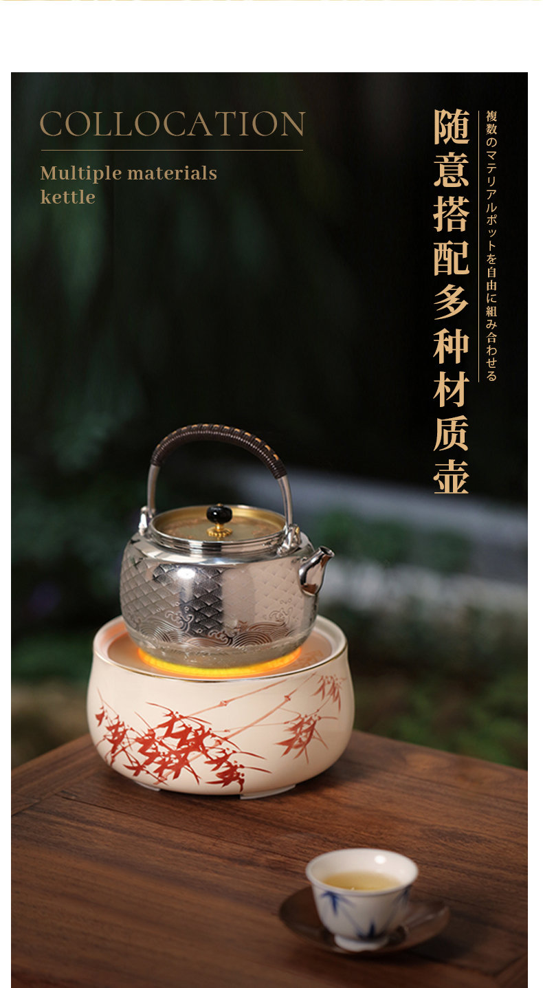 【莺歌烧旗舰店】天目釉金松纹电陶炉