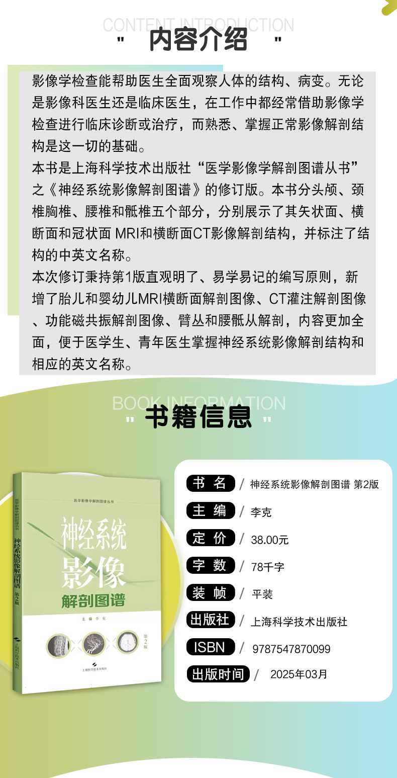 神经系统影像解剖图谱 第2二版 医学影像学解剖图谱丛书 李克编 神经影像系统解剖医学解剖医学图谱医学书籍 上海科学技术出版社