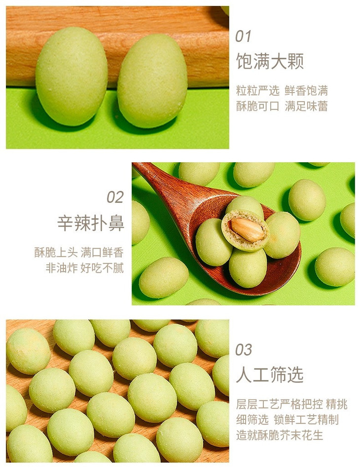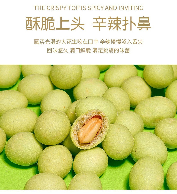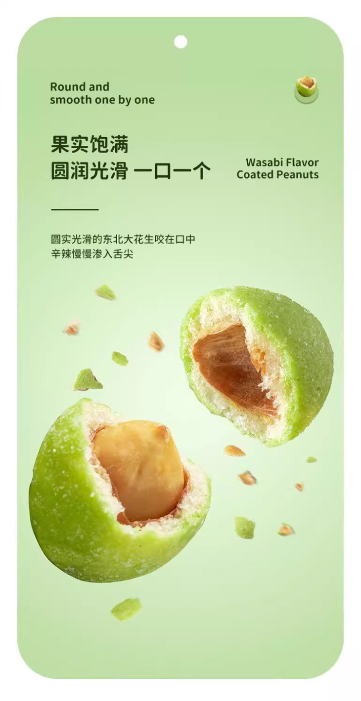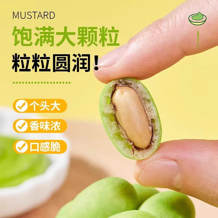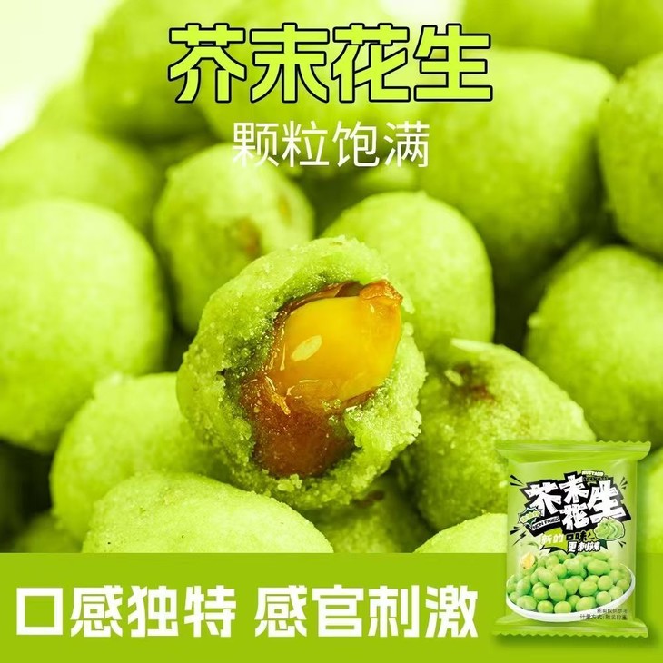 外面的芥末味调味料看着不起眼🤏 却藏着让人惊艳的小宇宙! 它不是那种冲得人皱眉的呛😣 是带着清冽感的辣 这股子滋味和花生的醇厚缠缠绵绵 在嘴里层层绽放🌸 吃完一颗就像被勾了魂 手不自觉就伸向了下一颗,根本刹不住车!🚗💨
