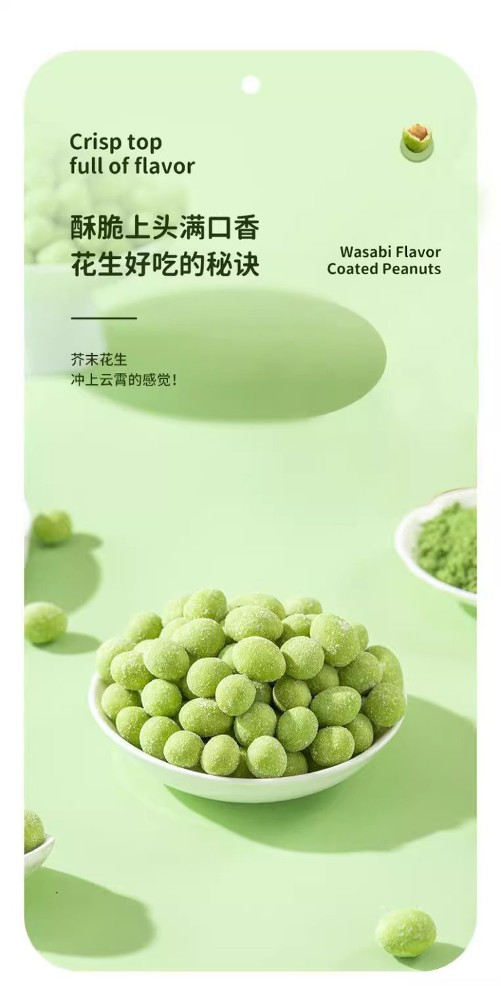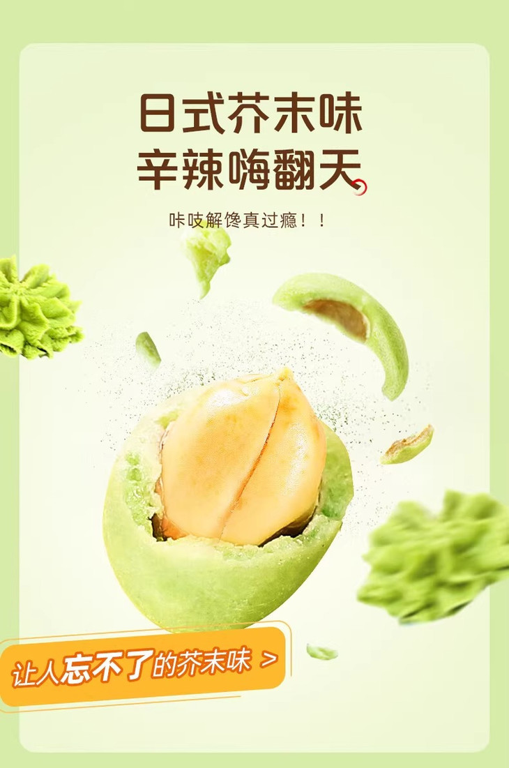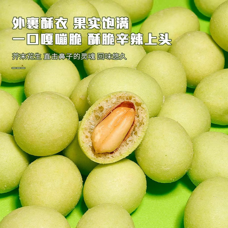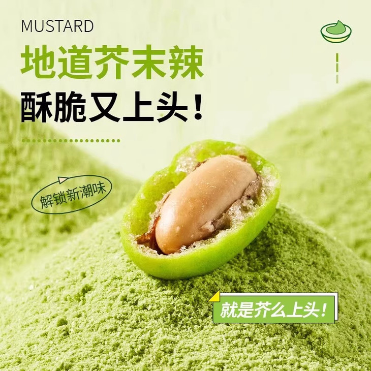 📣上头警告💰19.9抢60包【芥末花生】😍送给对芥末又爱又怕的你🌿辛辣清爽的淡口芥末和花生的醇厚完美融合,越嚼越上头🤯
