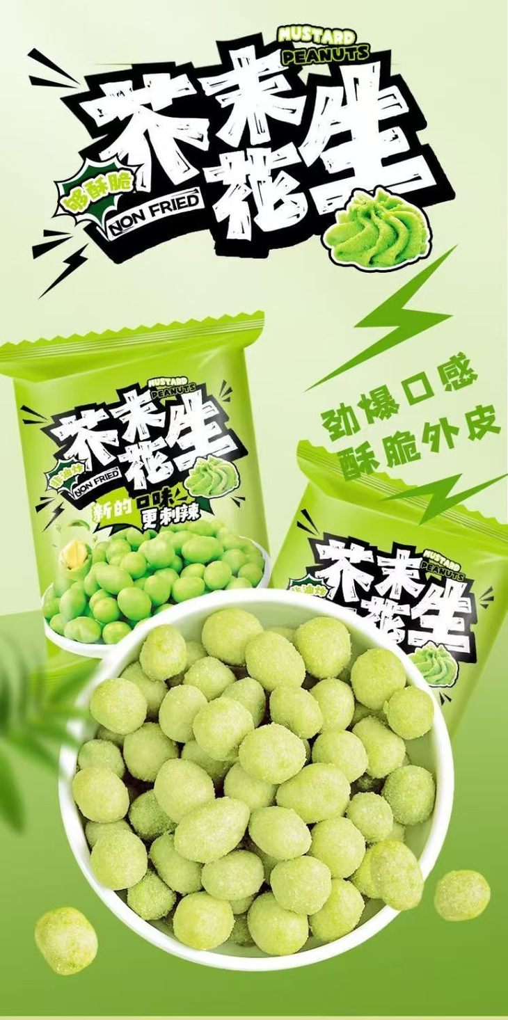 既不会像纯芥末那样让人齁到皱眉 也不会像普通花生那样平淡无味😐 每一口都像在舌尖放烟花🎇 让你在每一次咀嚼中都能感受到不同的层次和惊喜✨ 越吃越想吃,双手根本停不下来🙌