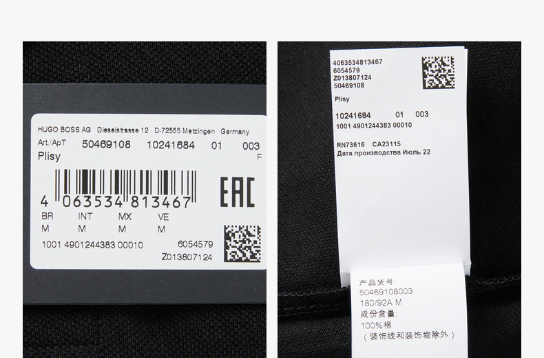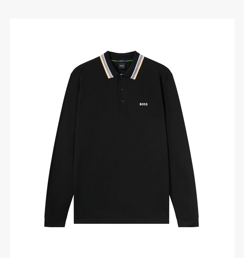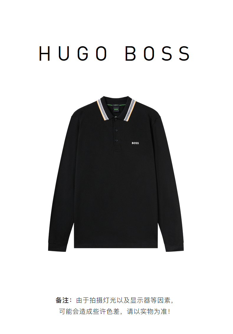 HUGO BOSS 雨果博斯 2023春夏新品 男士LOGO标识商务休闲长袖POLO衫 黑色 50469108