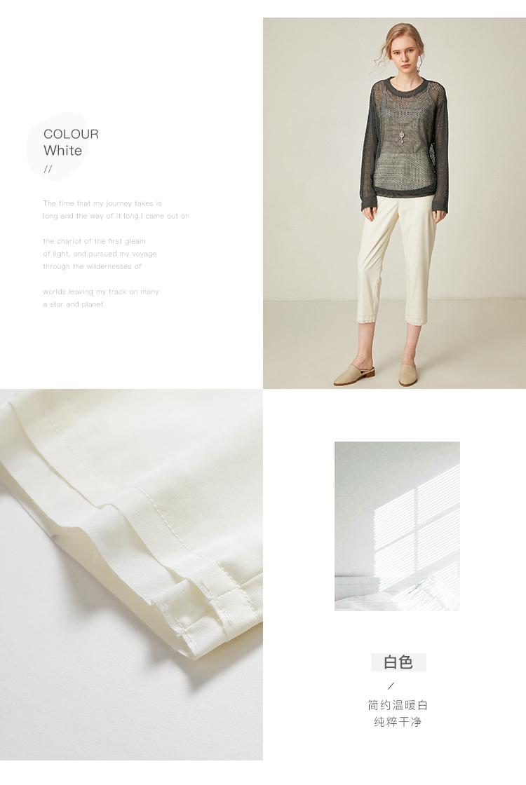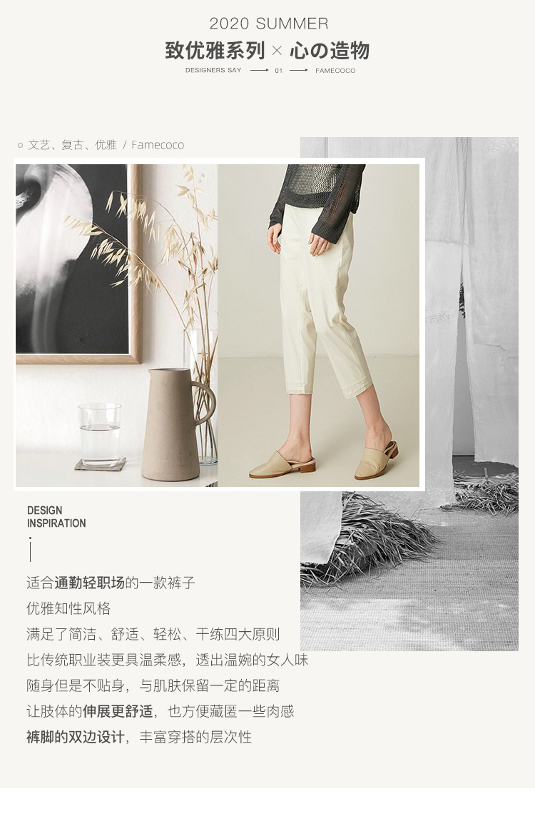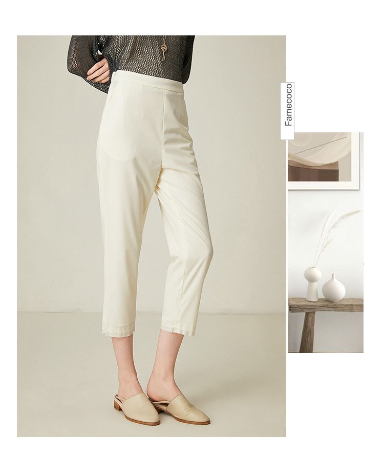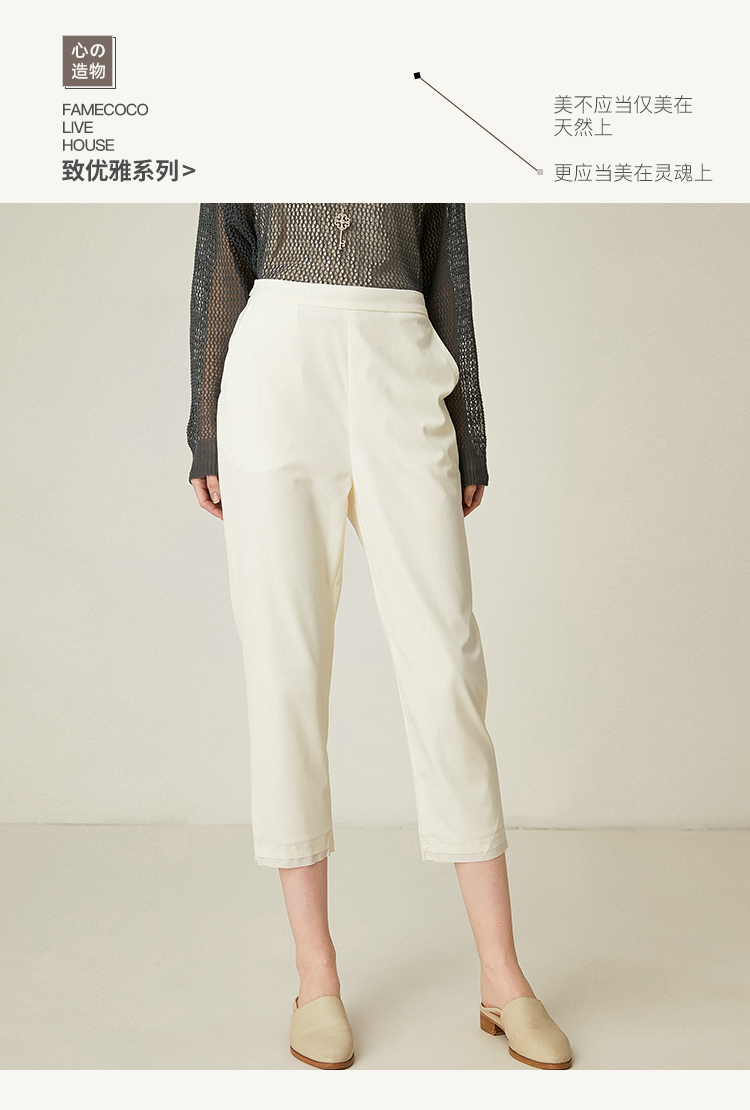 famecoco范可儿通勤裤子女新款宽松直筒长裤白色休闲裤F193GA027