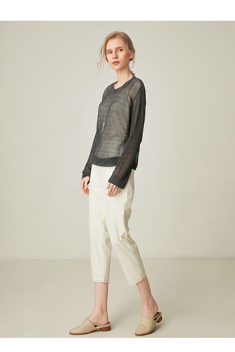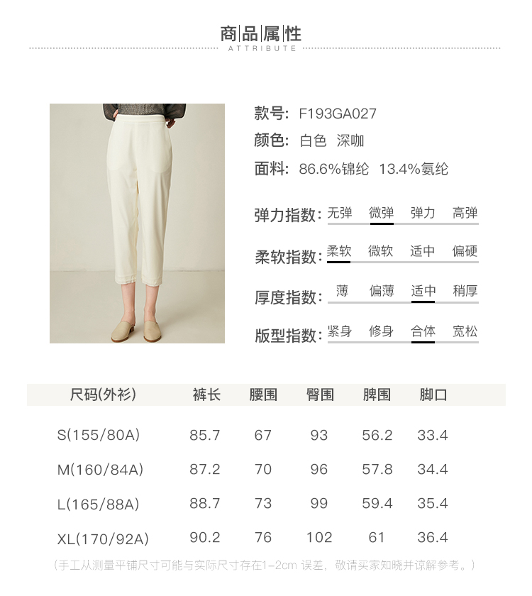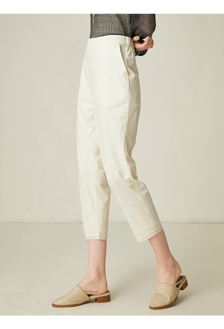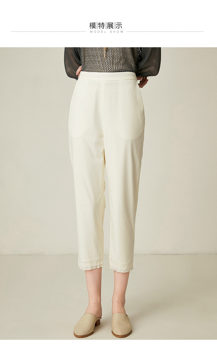 famecoco范可儿通勤裤子女新款宽松直筒长裤白色休闲裤F193GA027