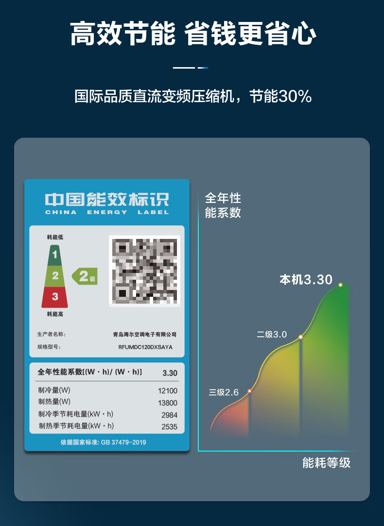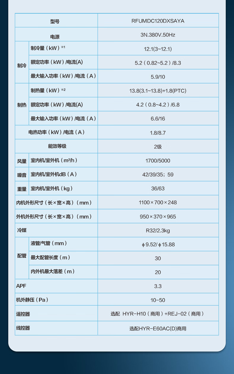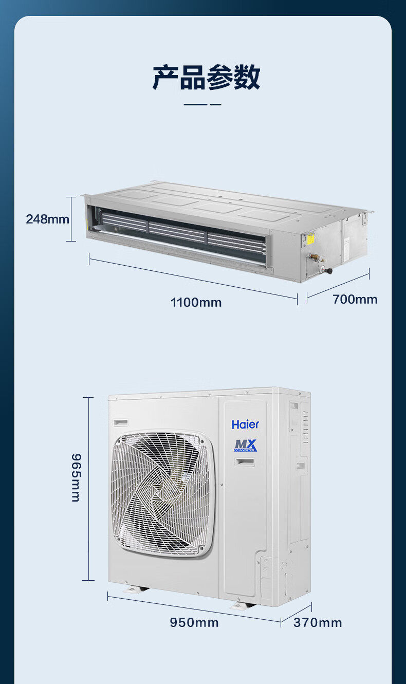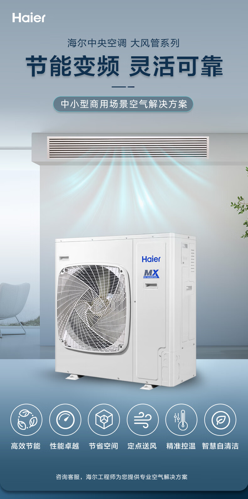 海尔(Haier)中央空调5匹一拖一风管机二级能效380V RFUMDC120DXSAYA 裸机不含安装