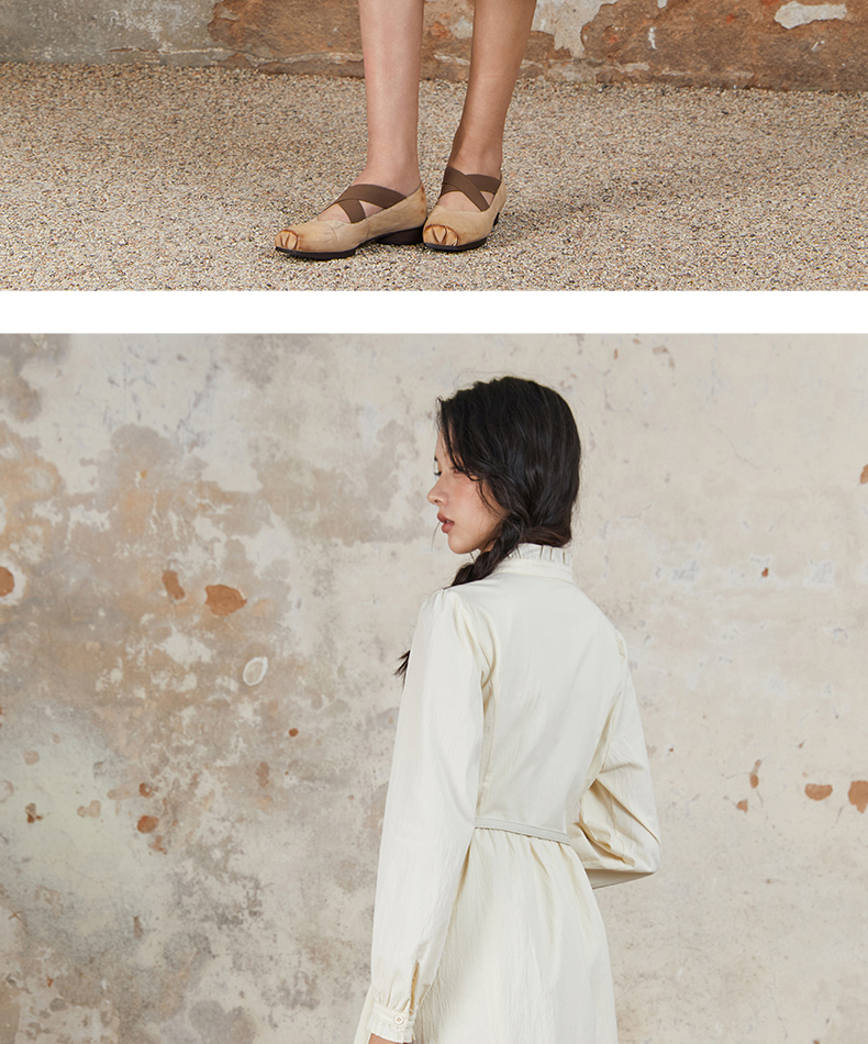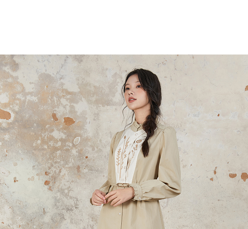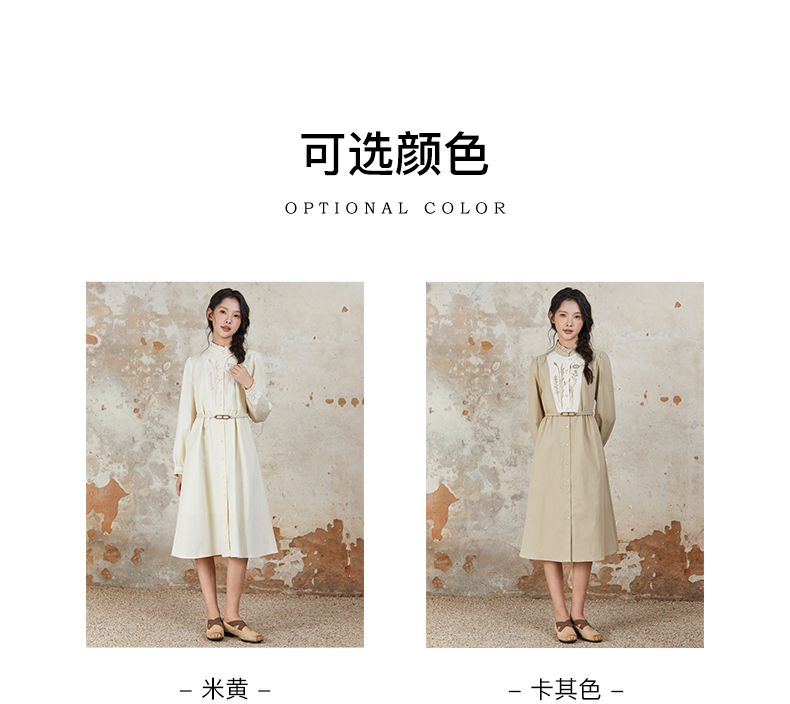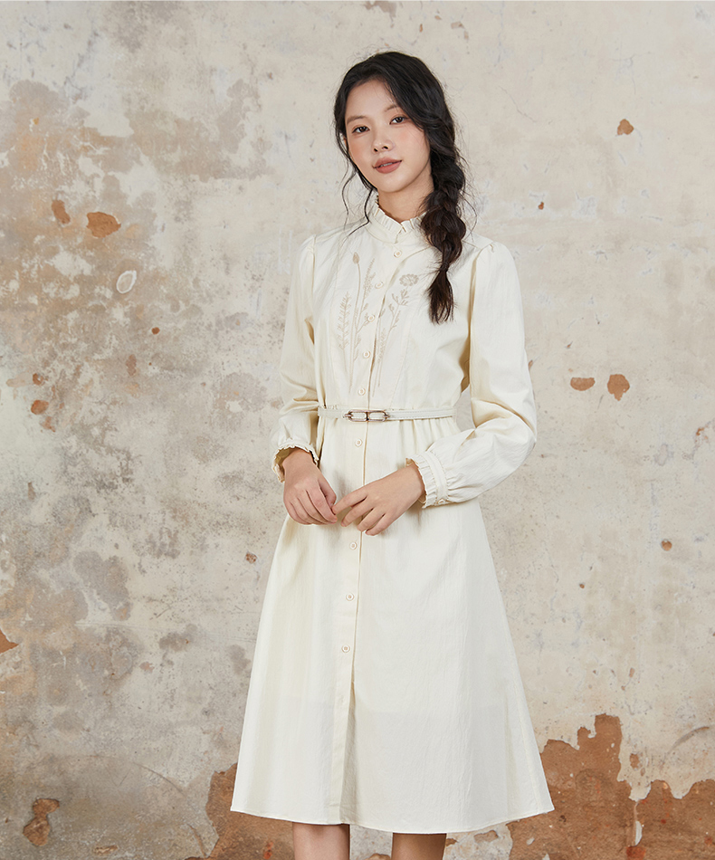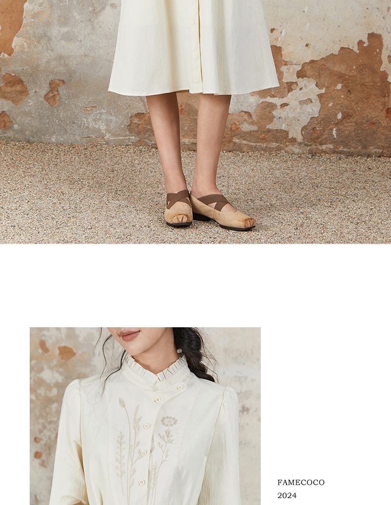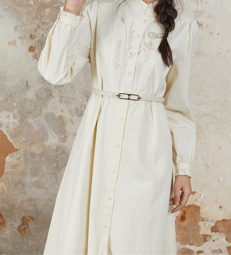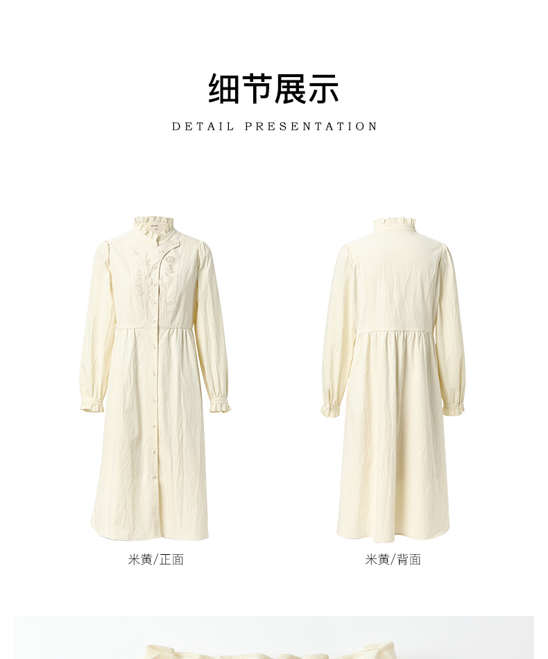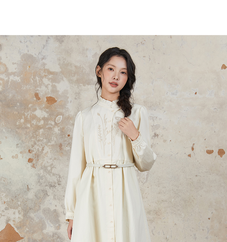 Famecoco原创文艺范胸前刺绣高腰花边设计感连衣裙春款FAB6FA025