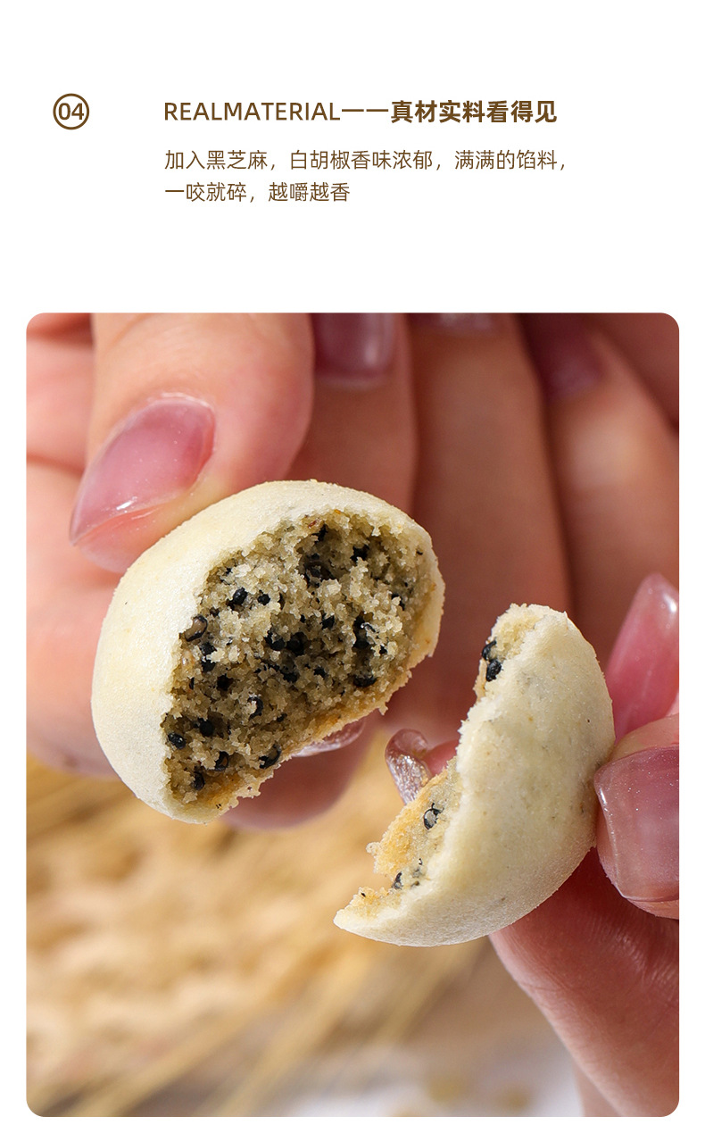 【一口酥脆!咸香椒盐小烧饼】经典小馒头造型 精致圆巧个头均匀,皮薄脆 馅酥松!芝麻香味浓郁 越嚼越香,早餐代餐传统零食小吃独立包装糕点Y