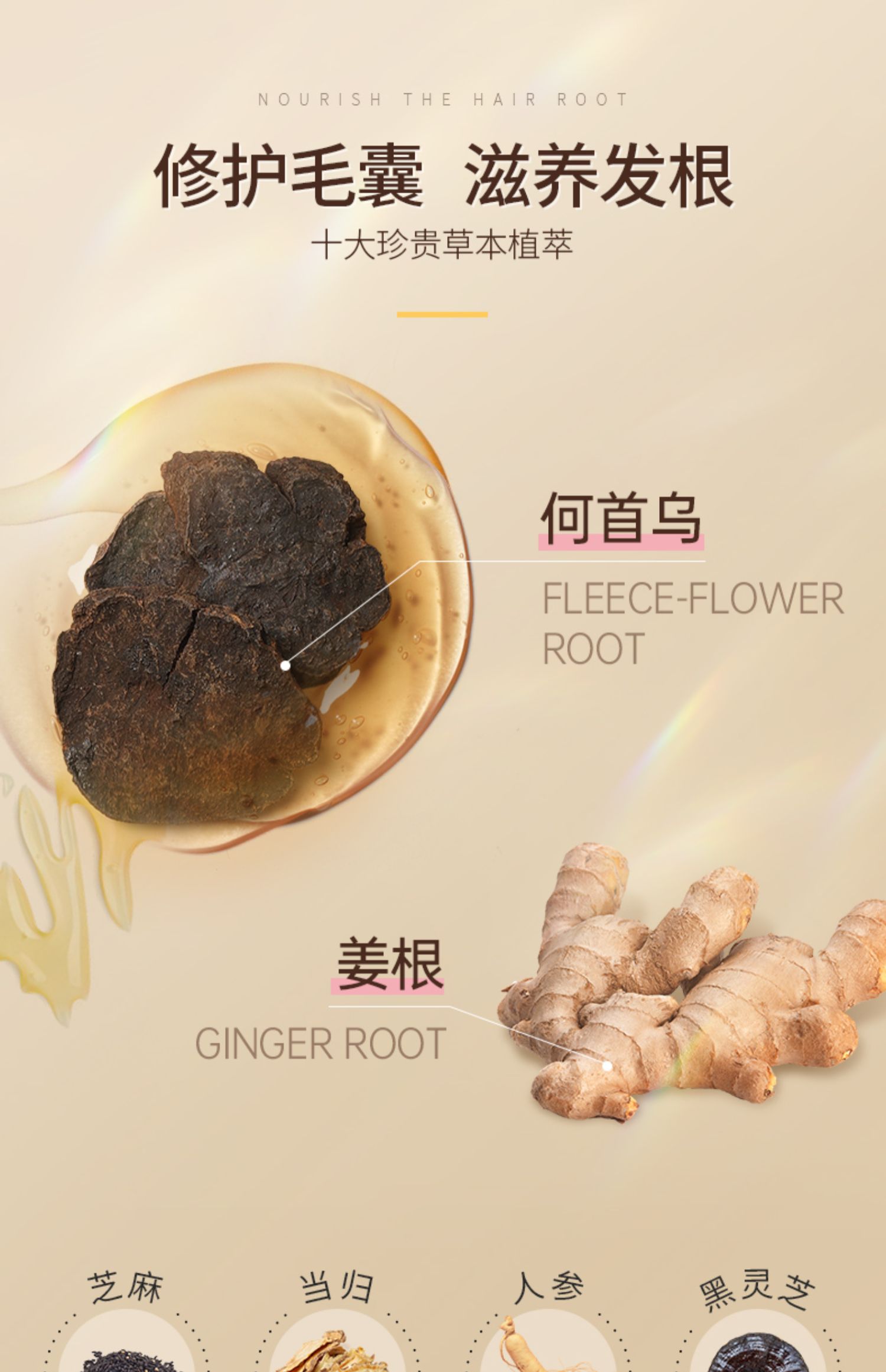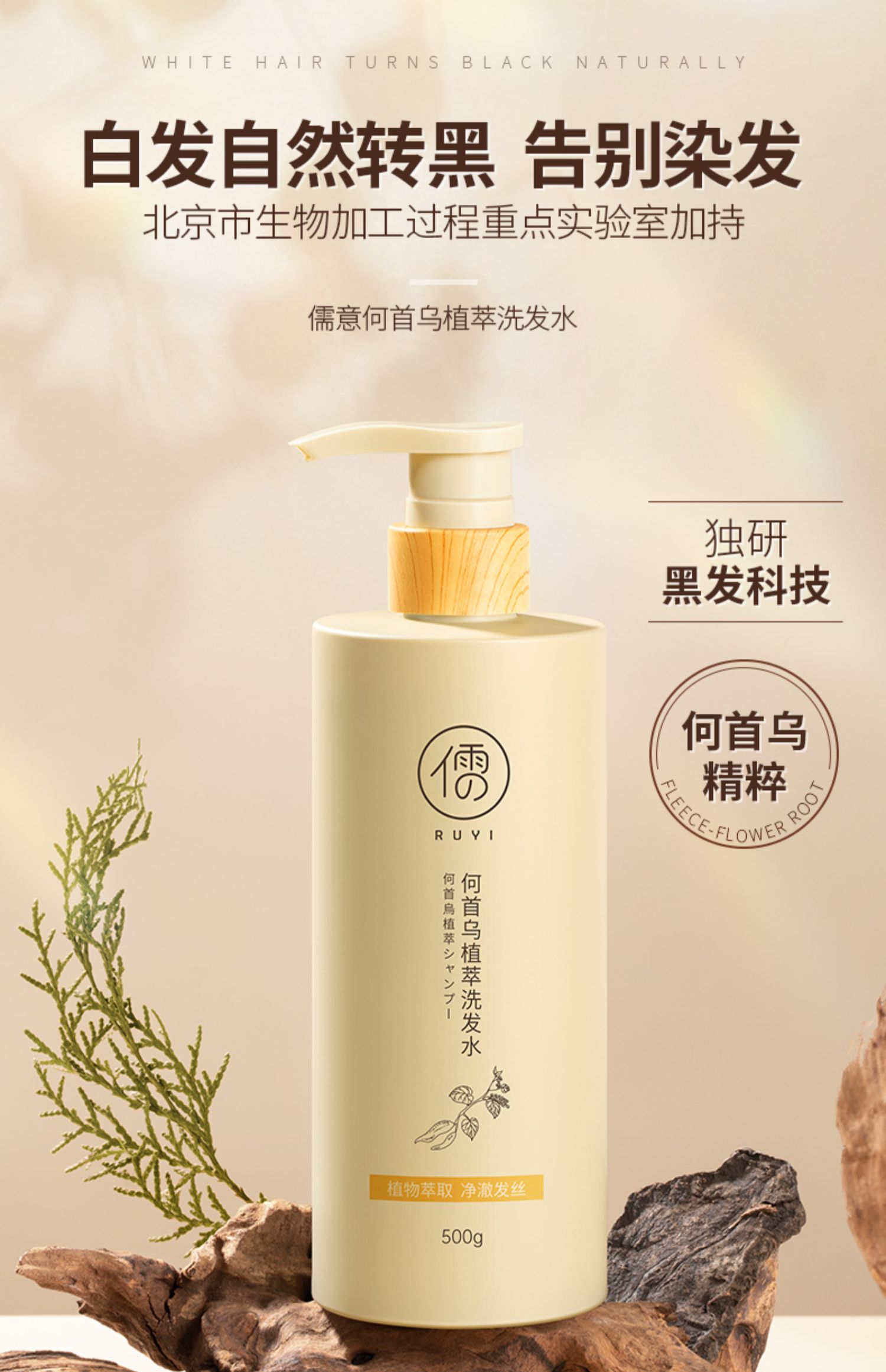 【何首乌萃取精华 告别白发困扰 】儒意何首乌植萃洗发水 何首乌去白发变转黑发 草本洗发水 草本配方 500g大瓶装