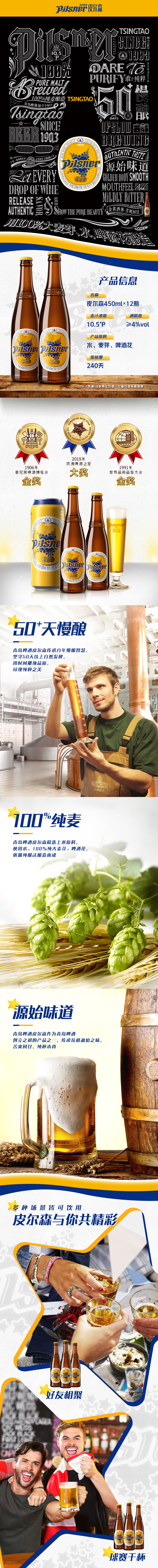 青岛啤酒 皮尔森10.5度450ml*12瓶/箱 第二件半价
