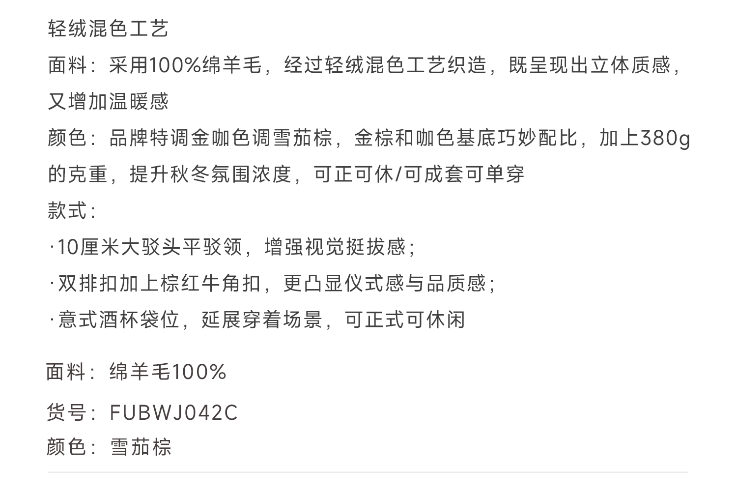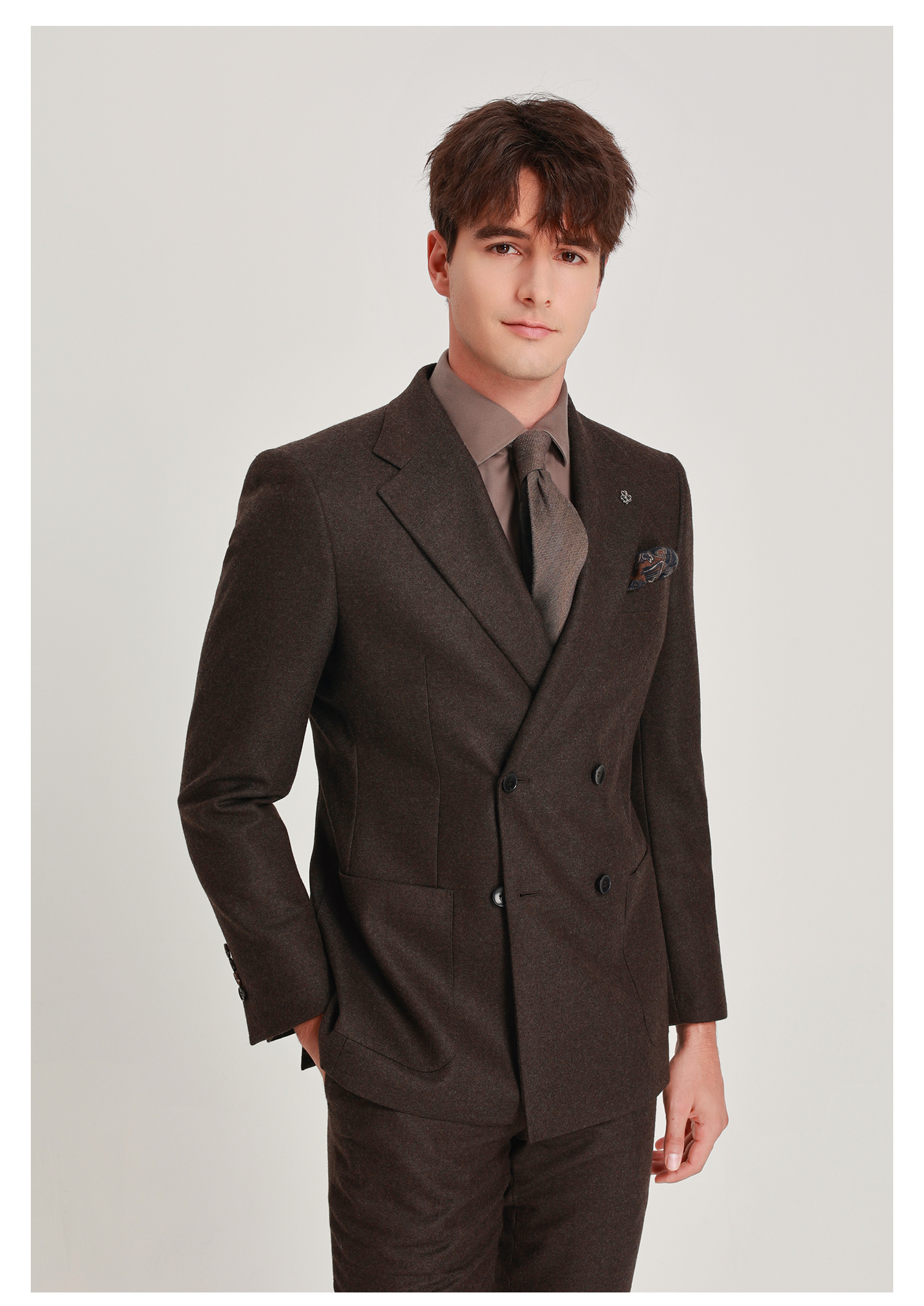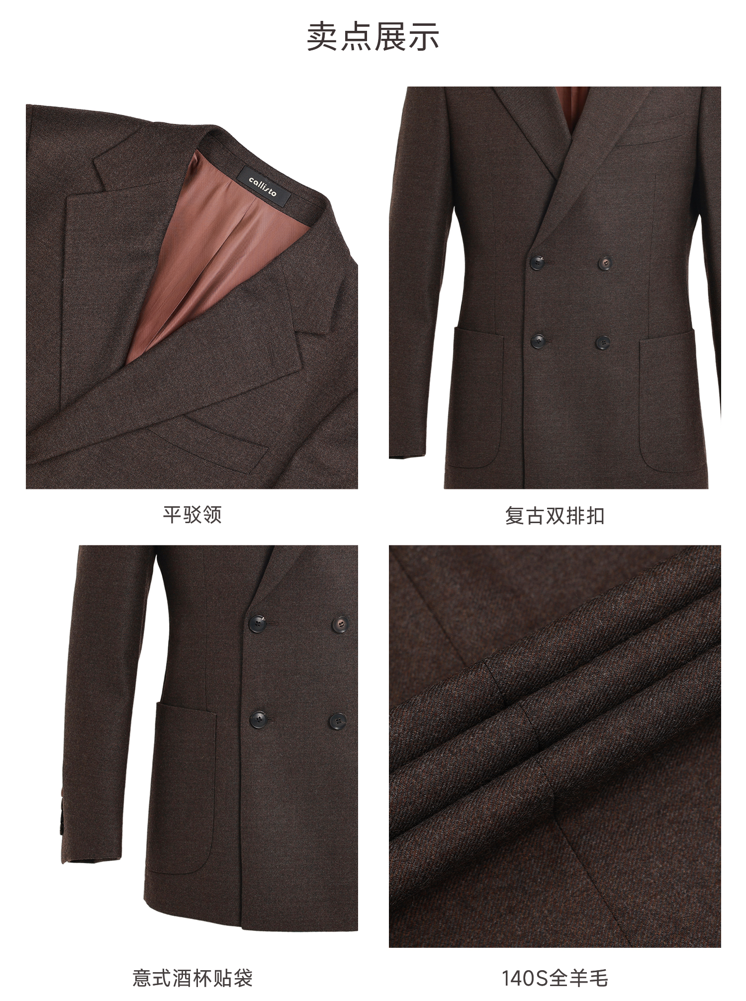 callisto雪茄棕绵羊毛西服