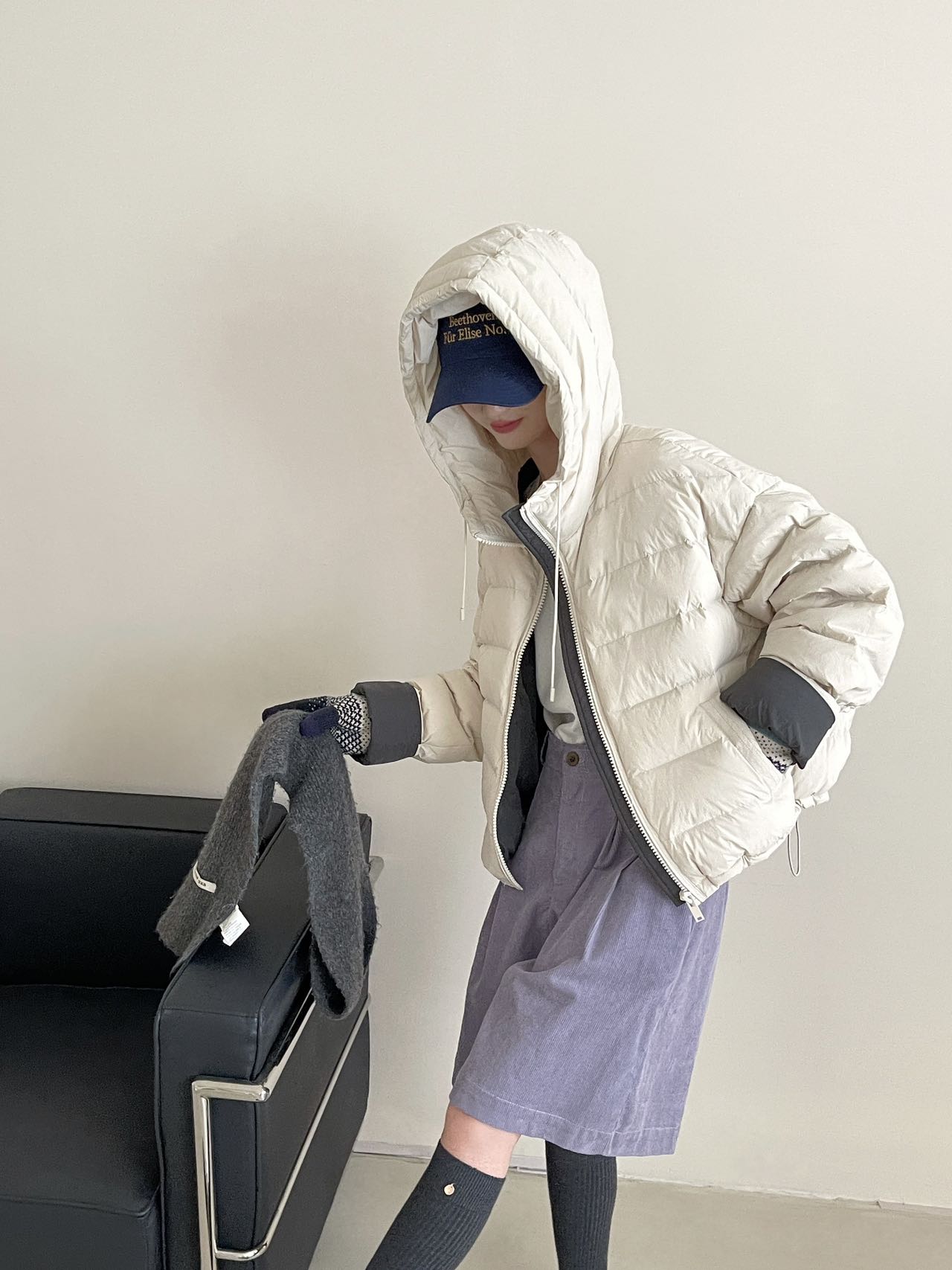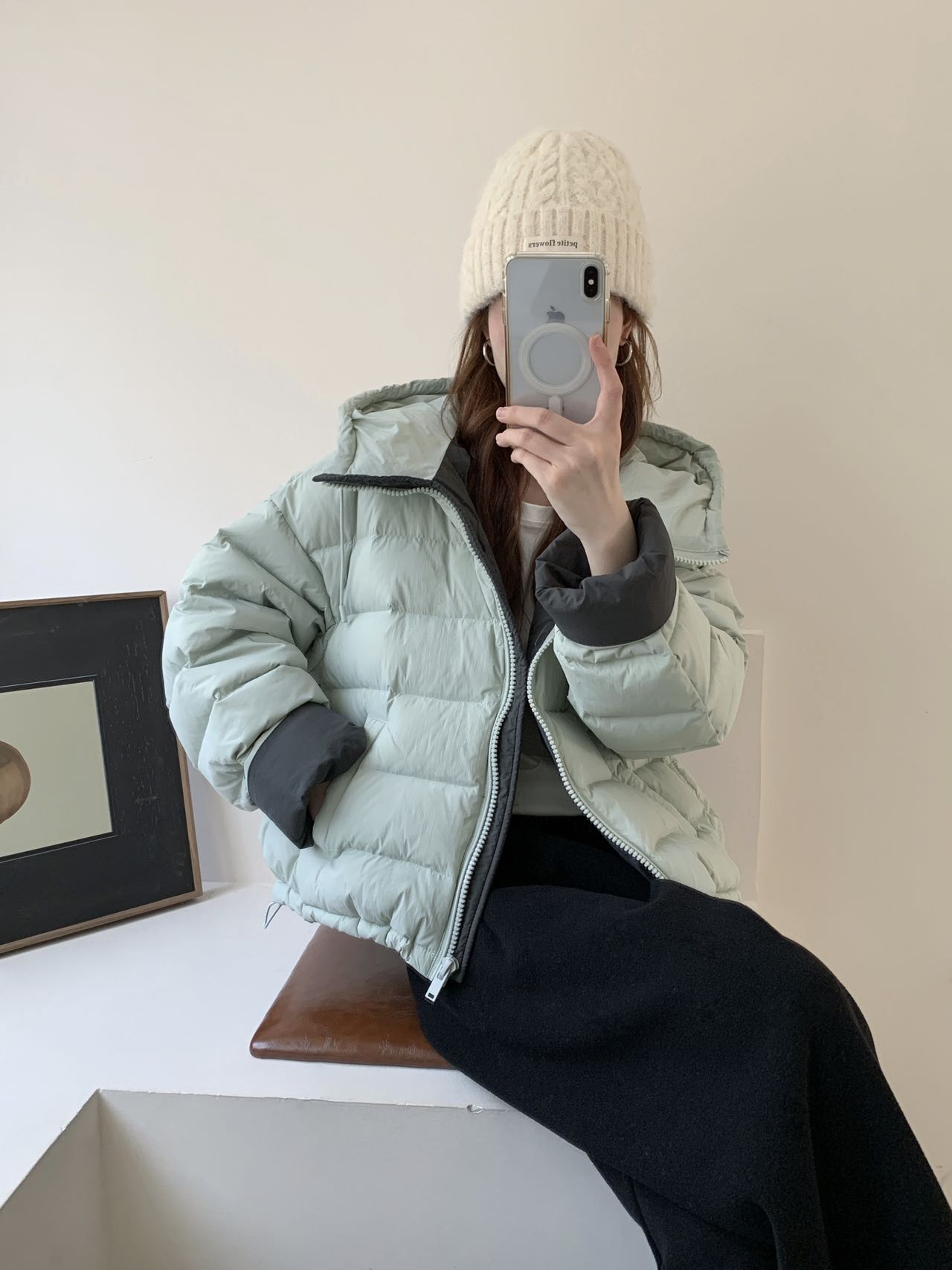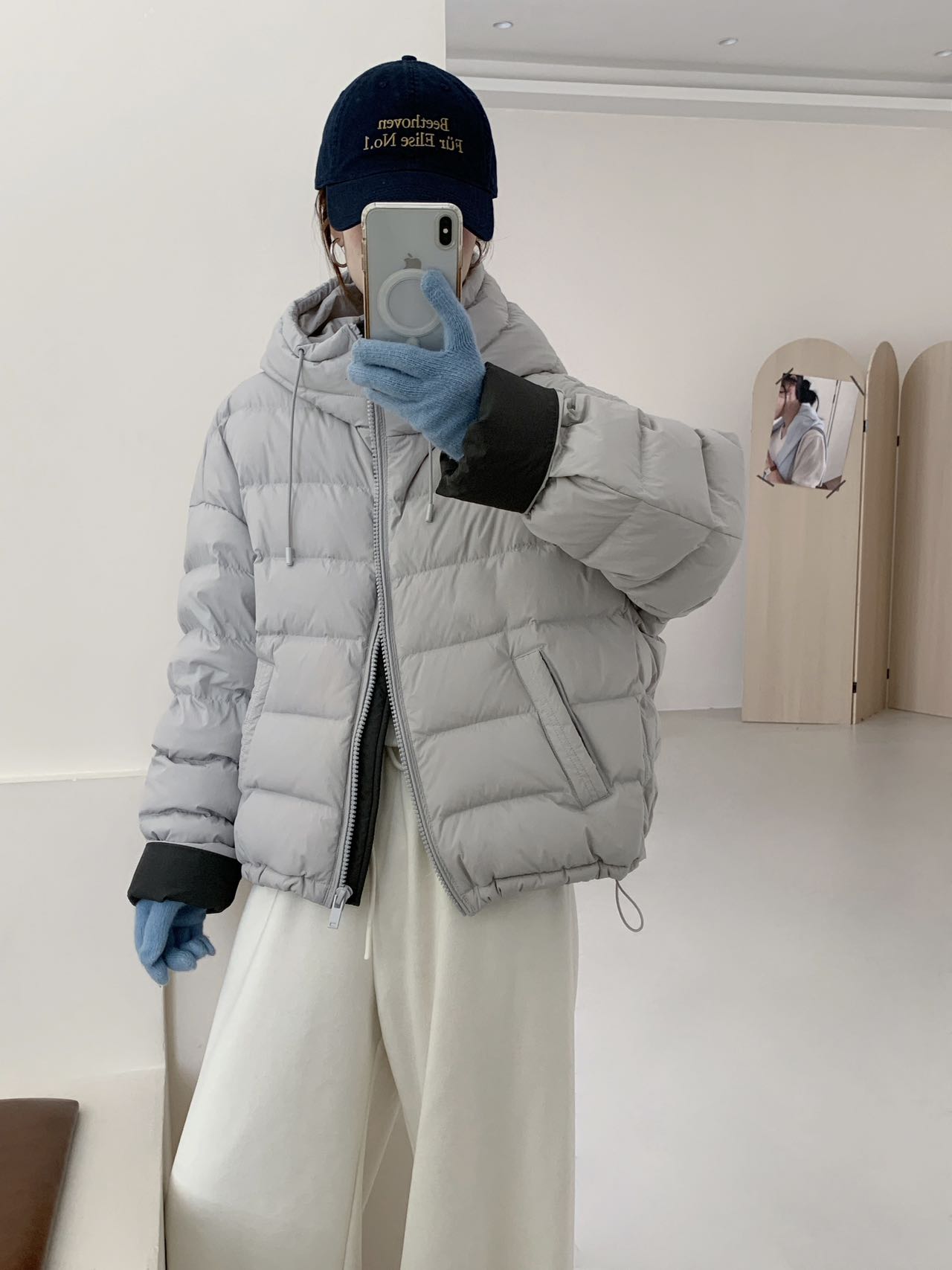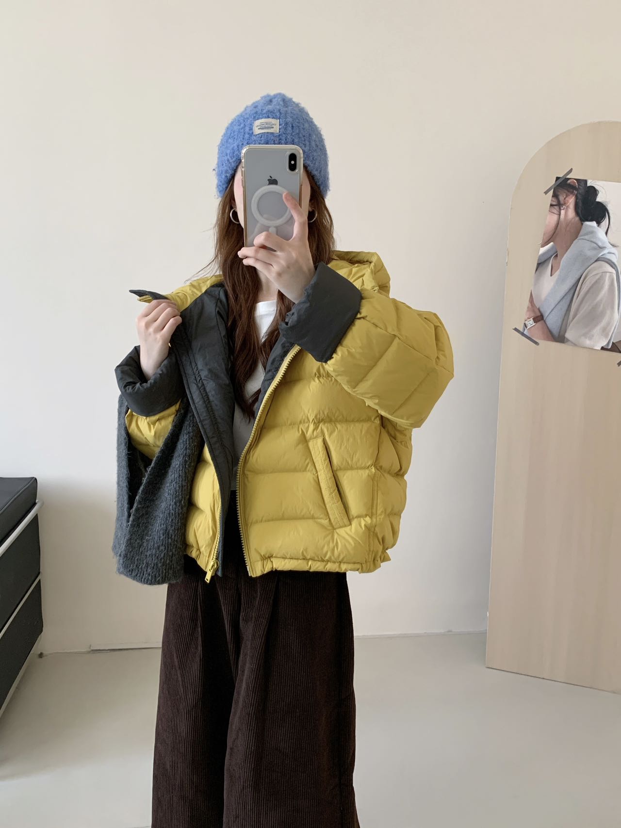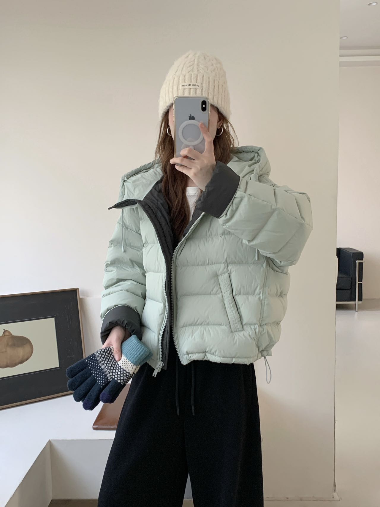 【YW】无忧购50绒女士羽绒服拼色洋气小个子短款宽松白鸭绒外套 8521(截单后3-5天发货)
