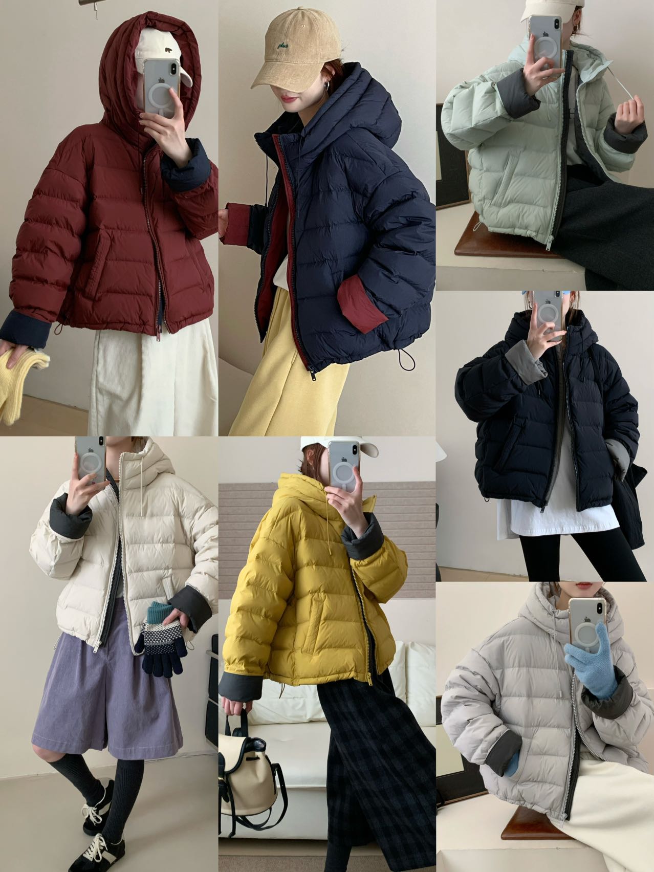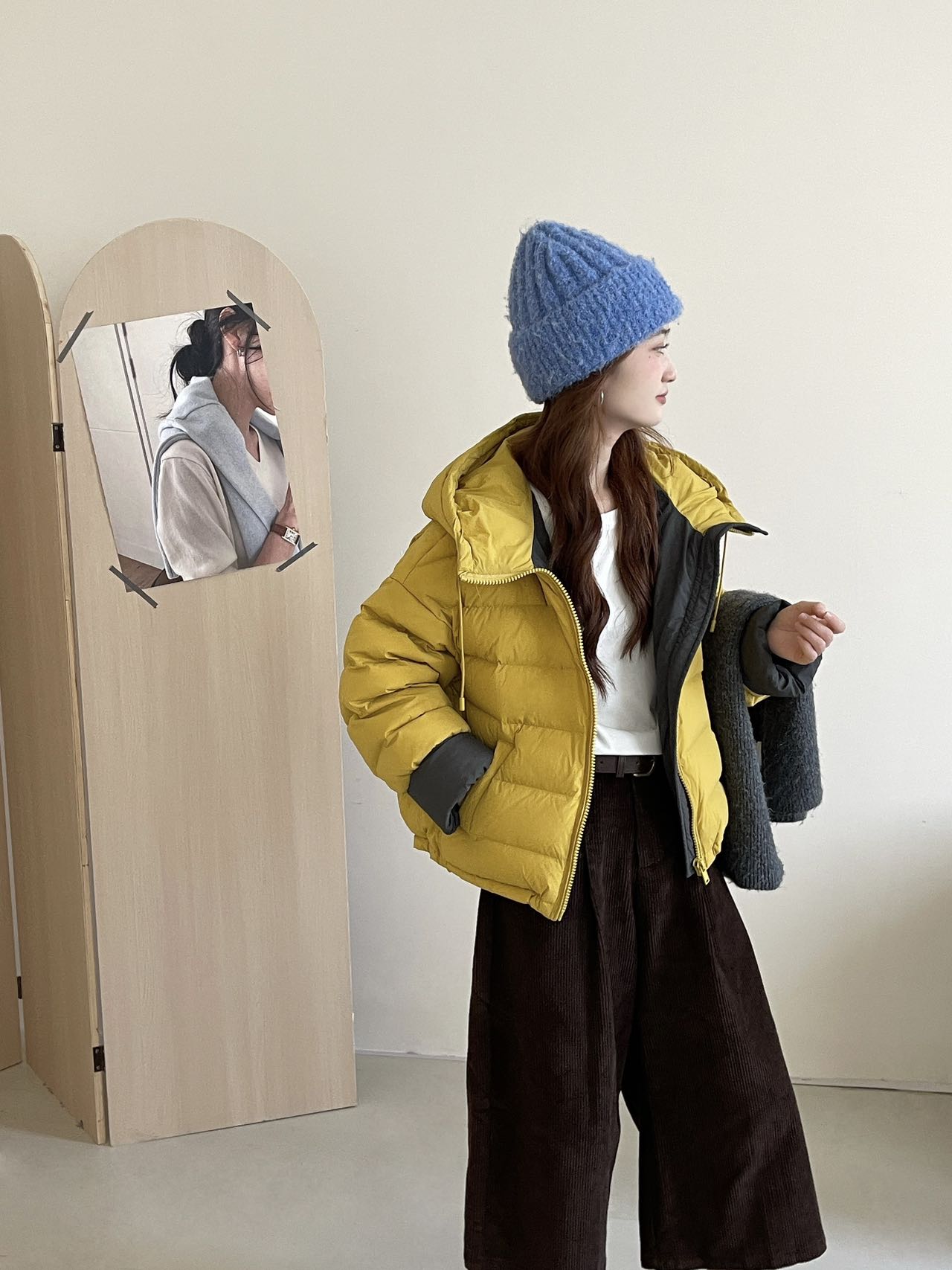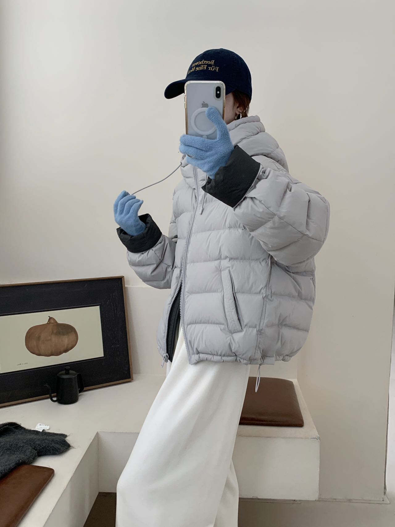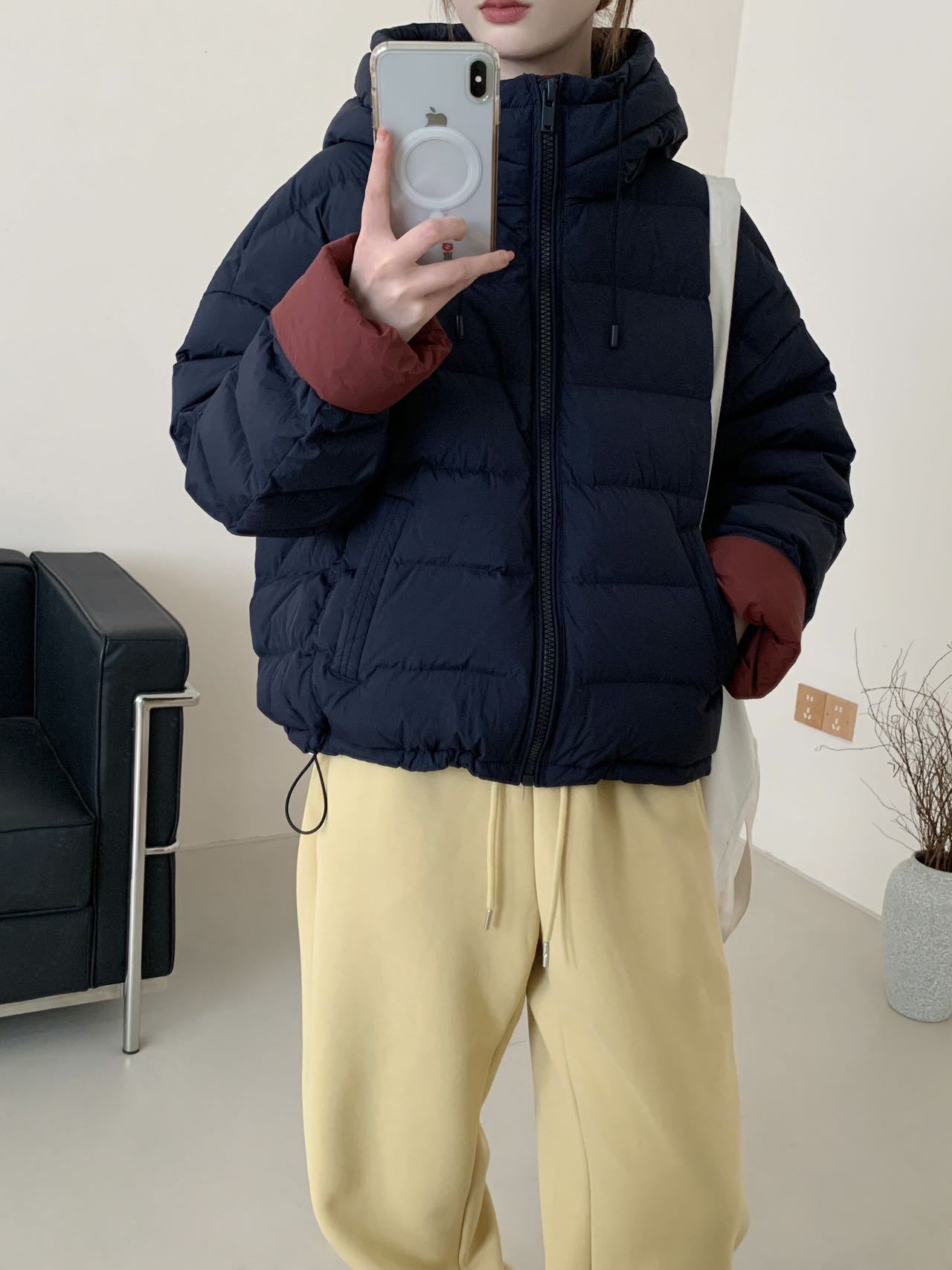 【YW】无忧购50绒女士羽绒服拼色洋气小个子短款宽松白鸭绒外套 8521(截单后3-5天发货)