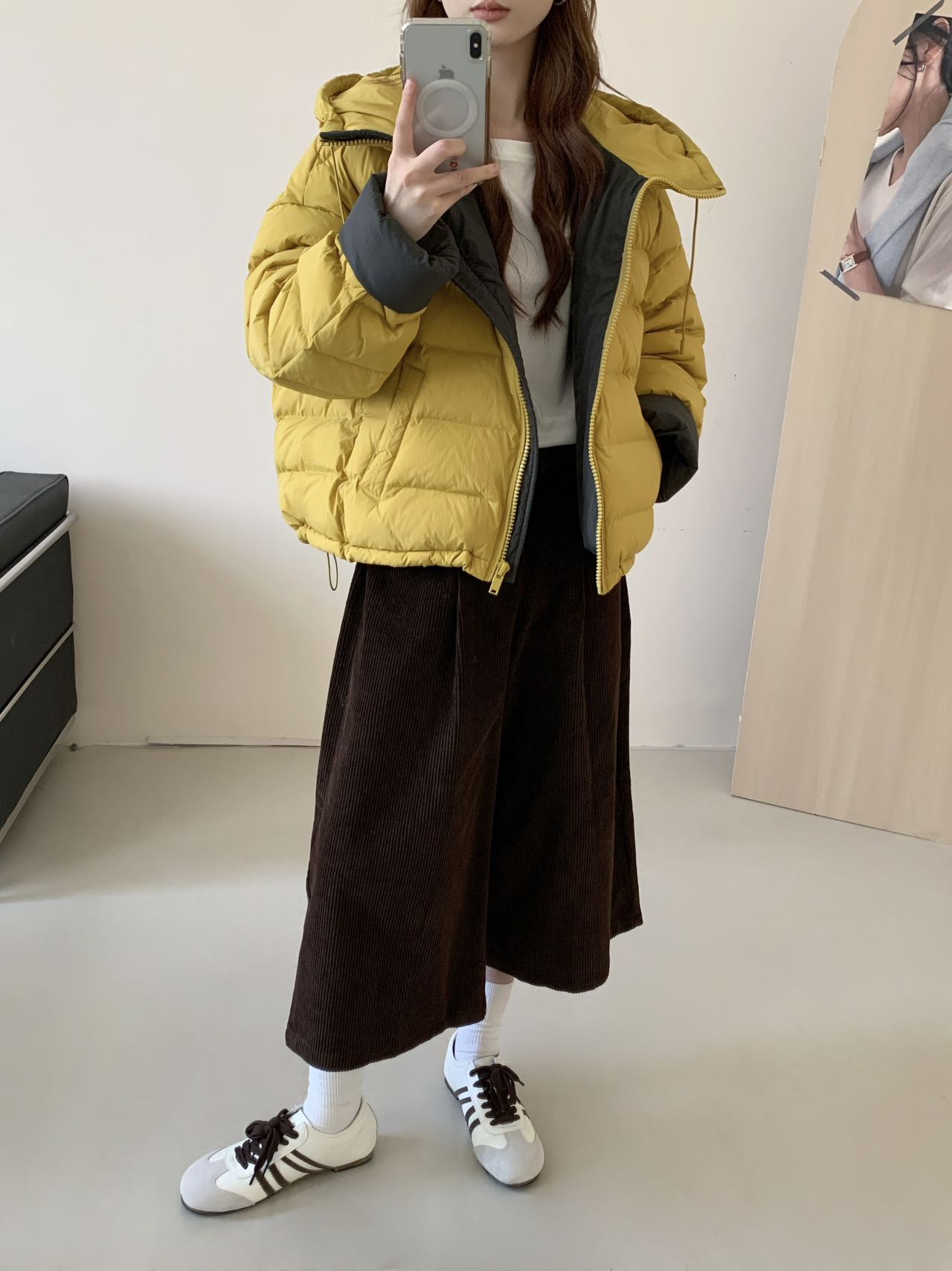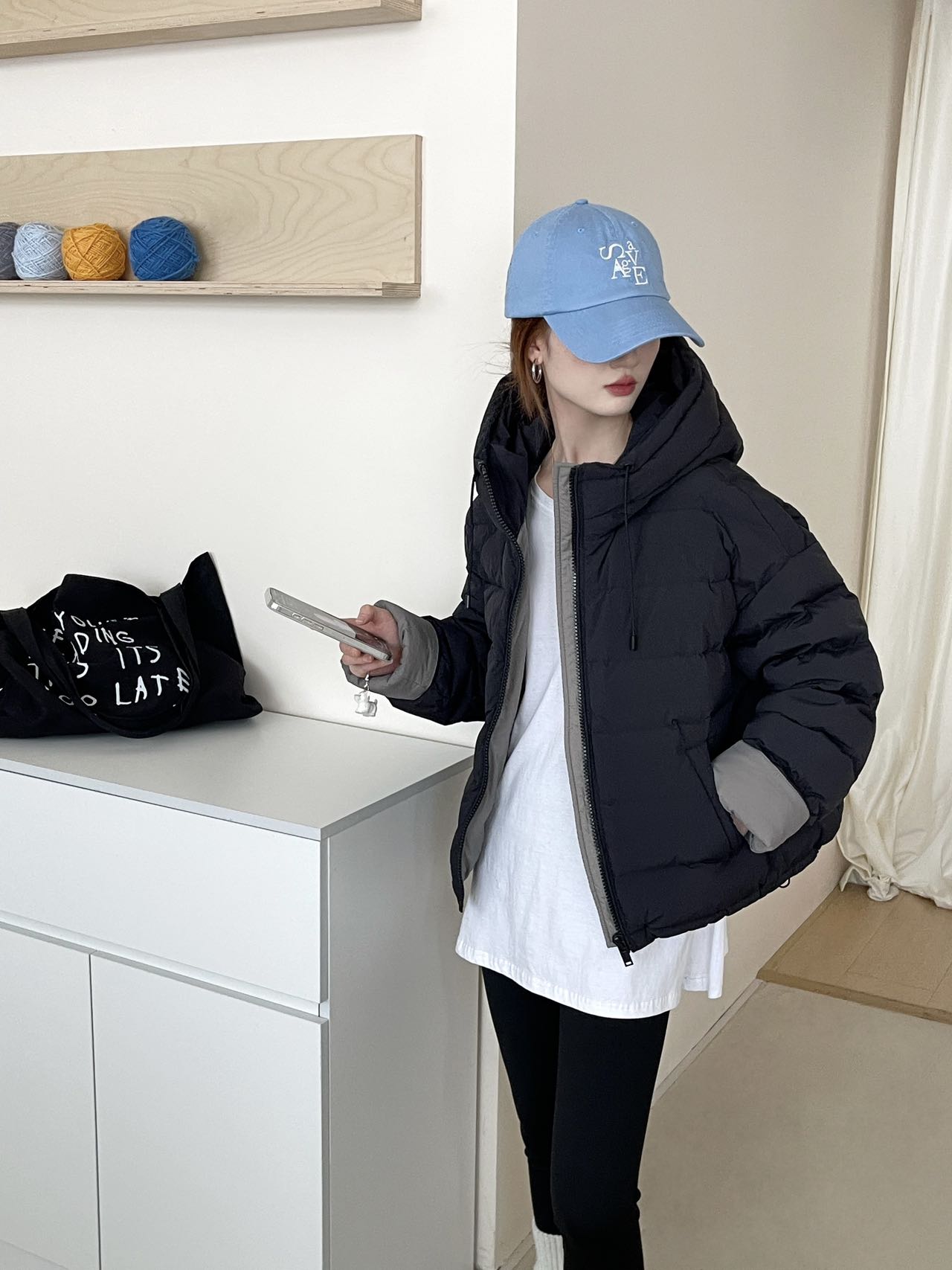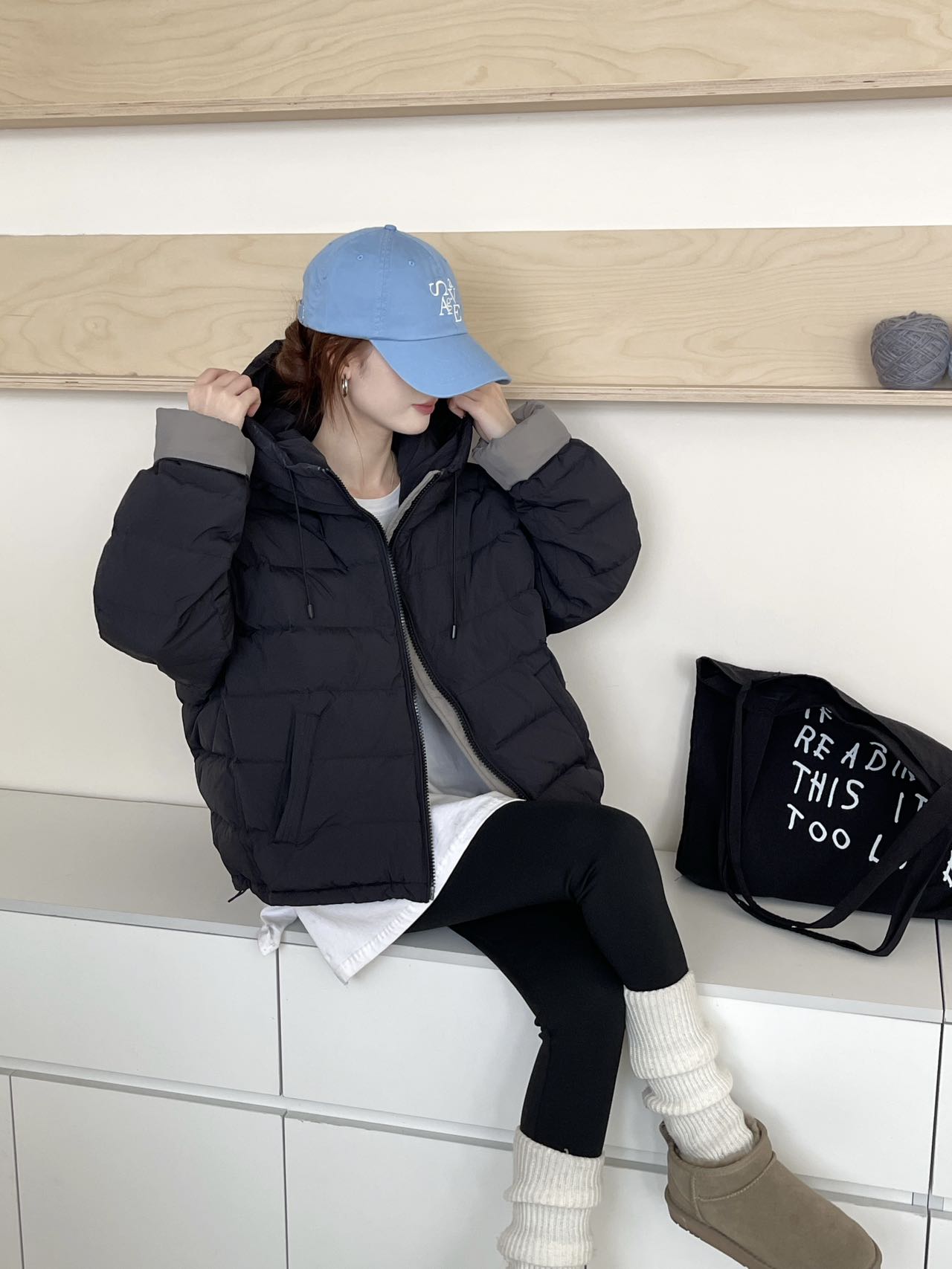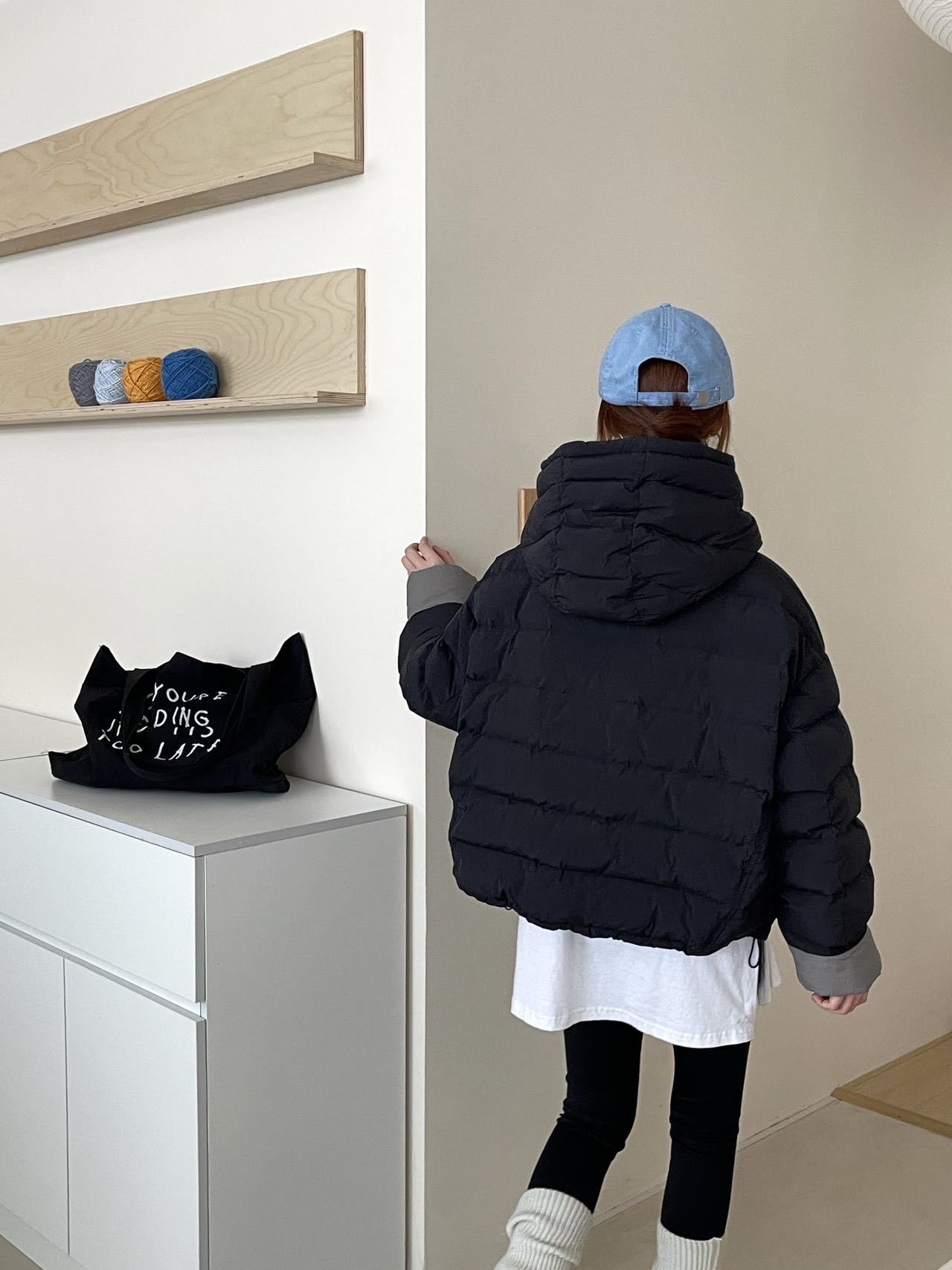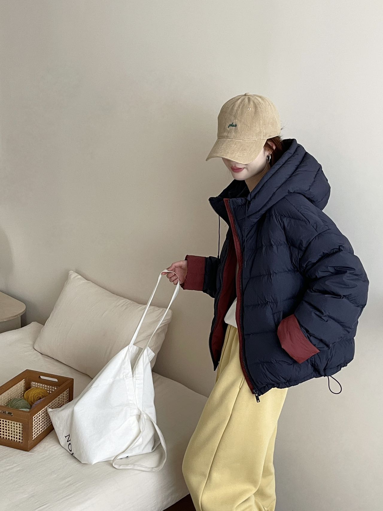 【YW】无忧购50绒女士羽绒服拼色洋气小个子短款宽松白鸭绒外套 8521(截单后3-5天发货)