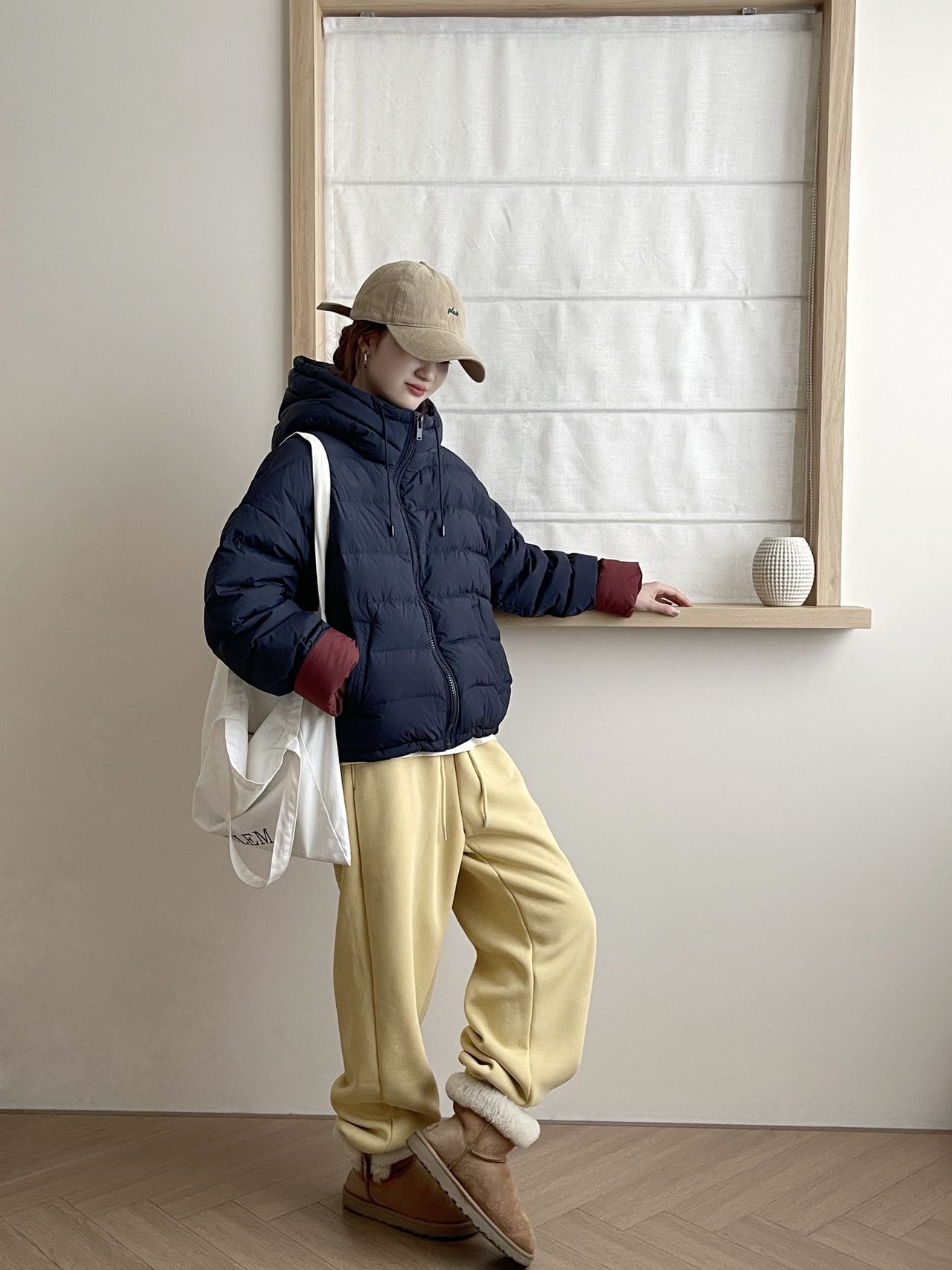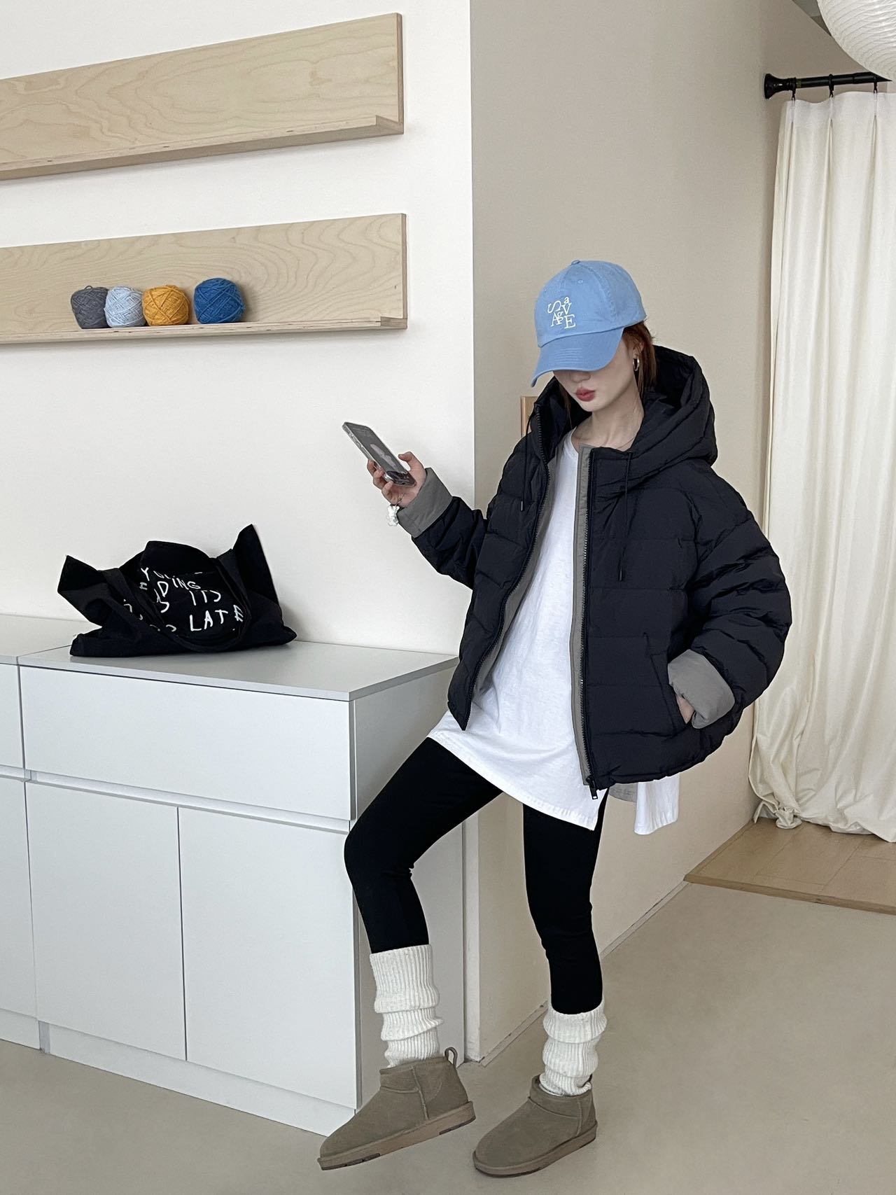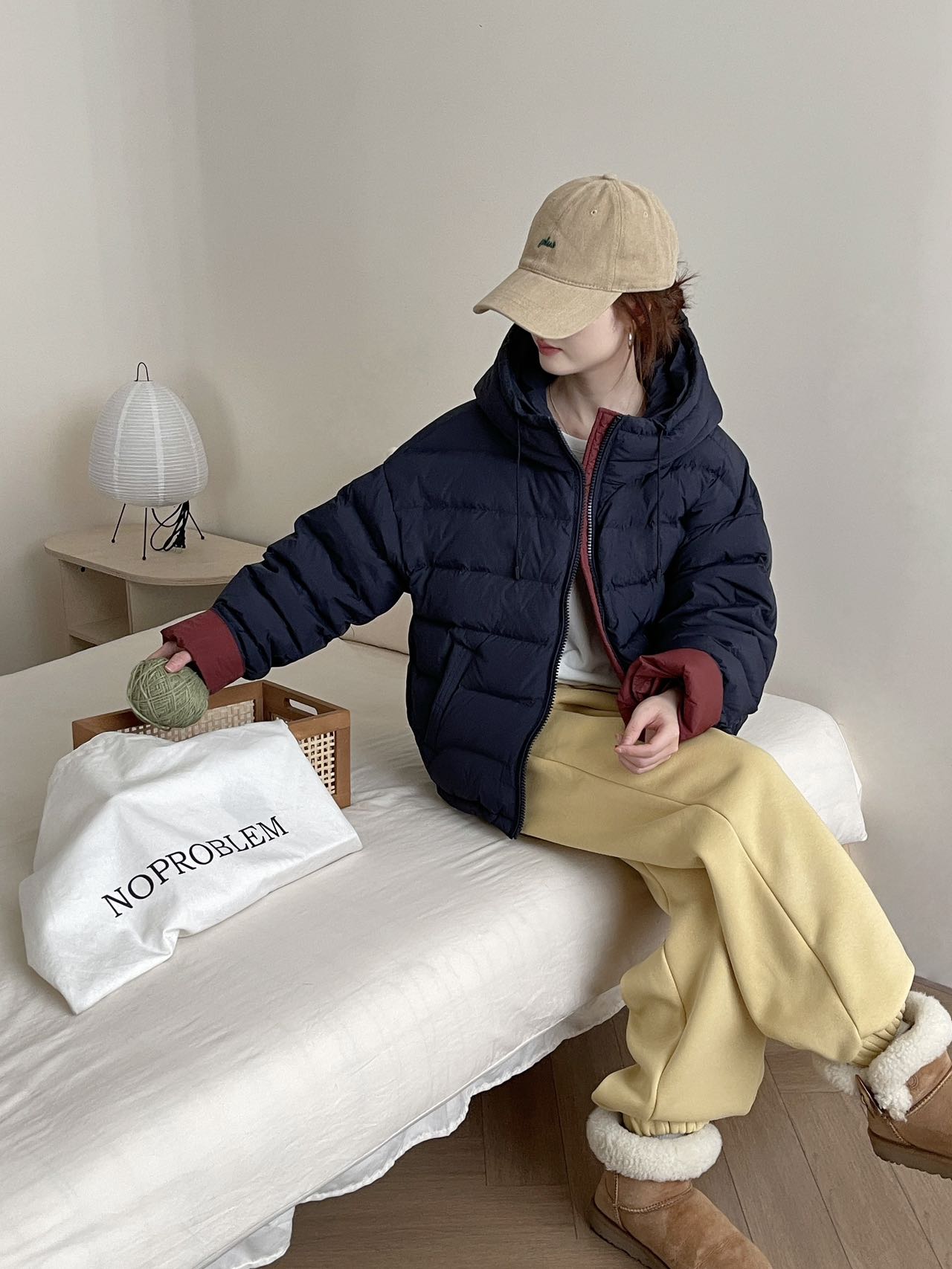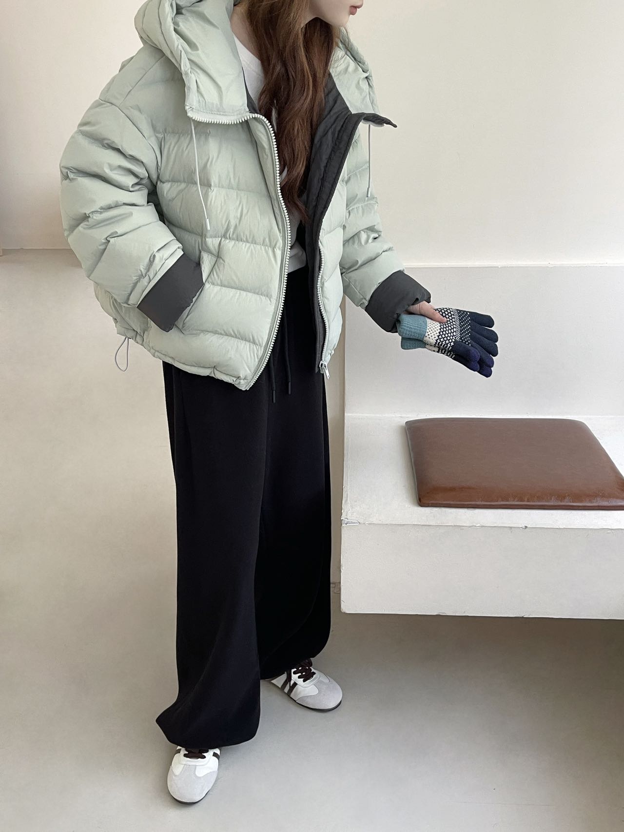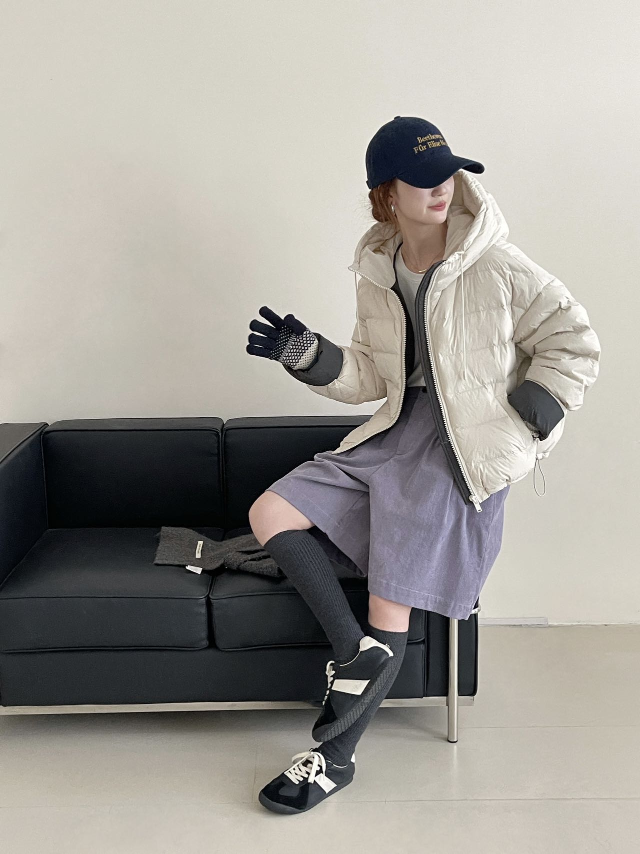 【YW】无忧购50绒女士羽绒服拼色洋气小个子短款宽松白鸭绒外套 8521(截单后3-5天发货)