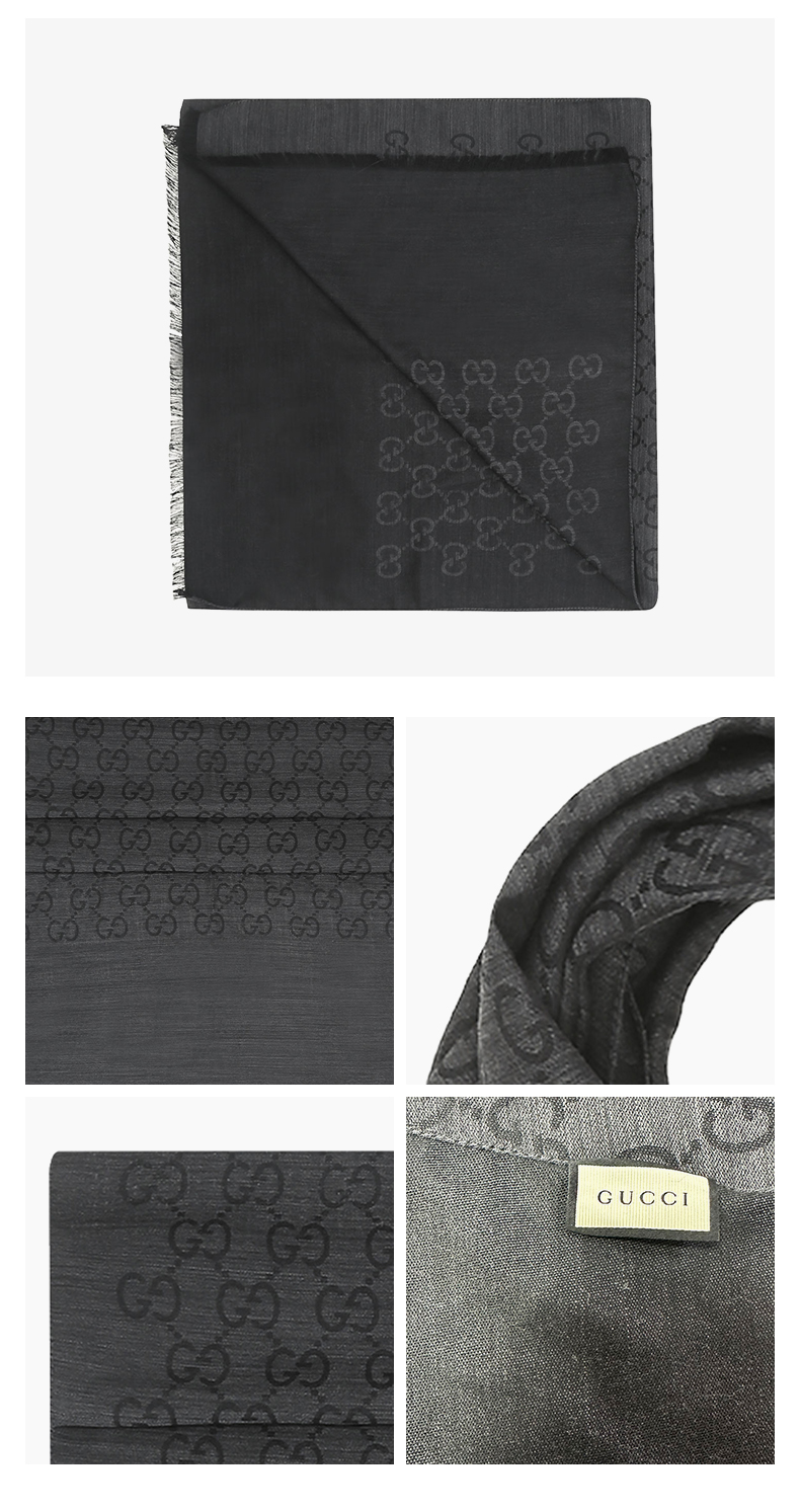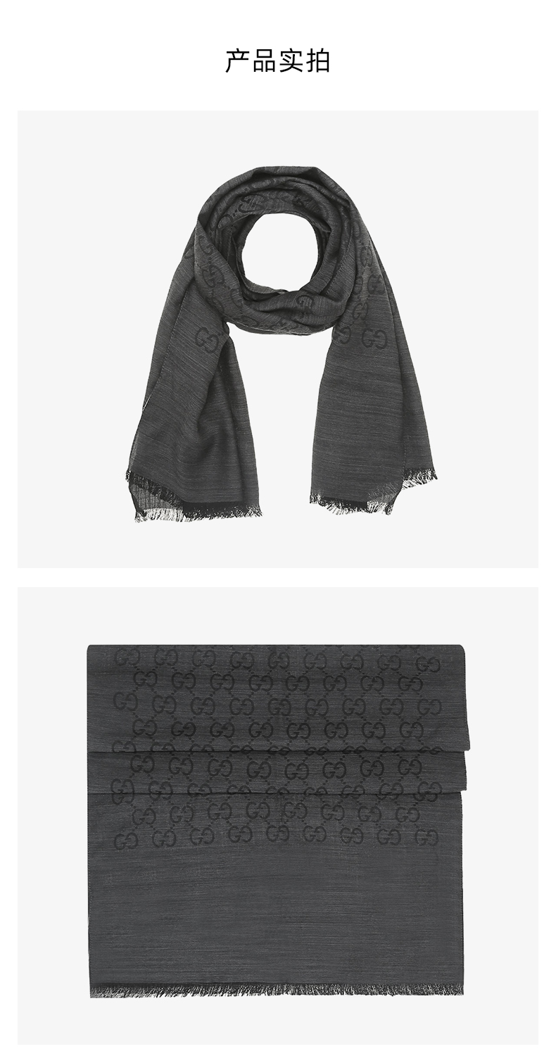 GUCCI 女士羊毛真丝围巾 165904炭灰色