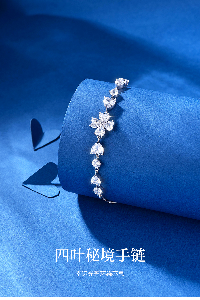 卡蒂罗/KADER 四叶秘境手链 925银幸运四叶草满镶锆石轻奢时尚闪耀设计银饰 璀璨吸睛夏日百搭爱心手饰在逃公主 礼盒