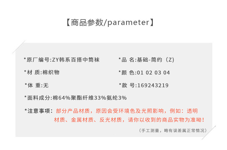 基础韩系百搭中筒袜-简约-纪念日百货门店同款169243219