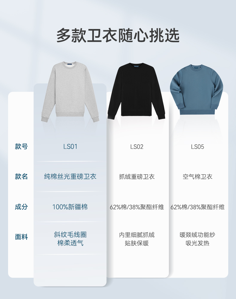 十如仕液氨丝光3A抗菌针织圆领卫衣LS01