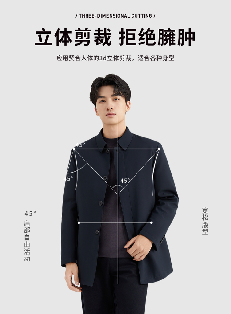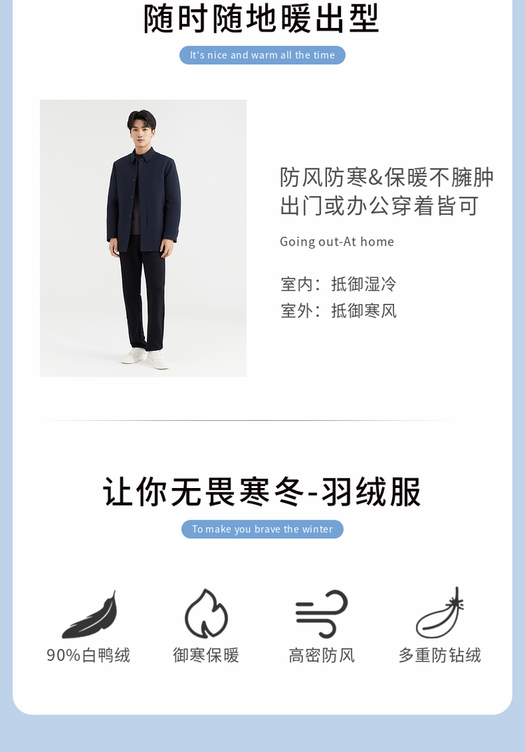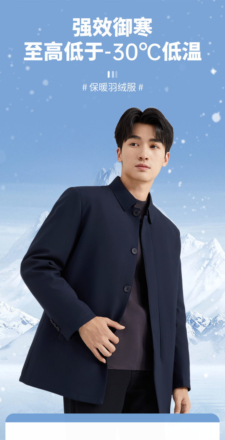 【90%鸭绒】圣得西商务休闲中长款羽绒服男冬季新款翻领外套2462941011