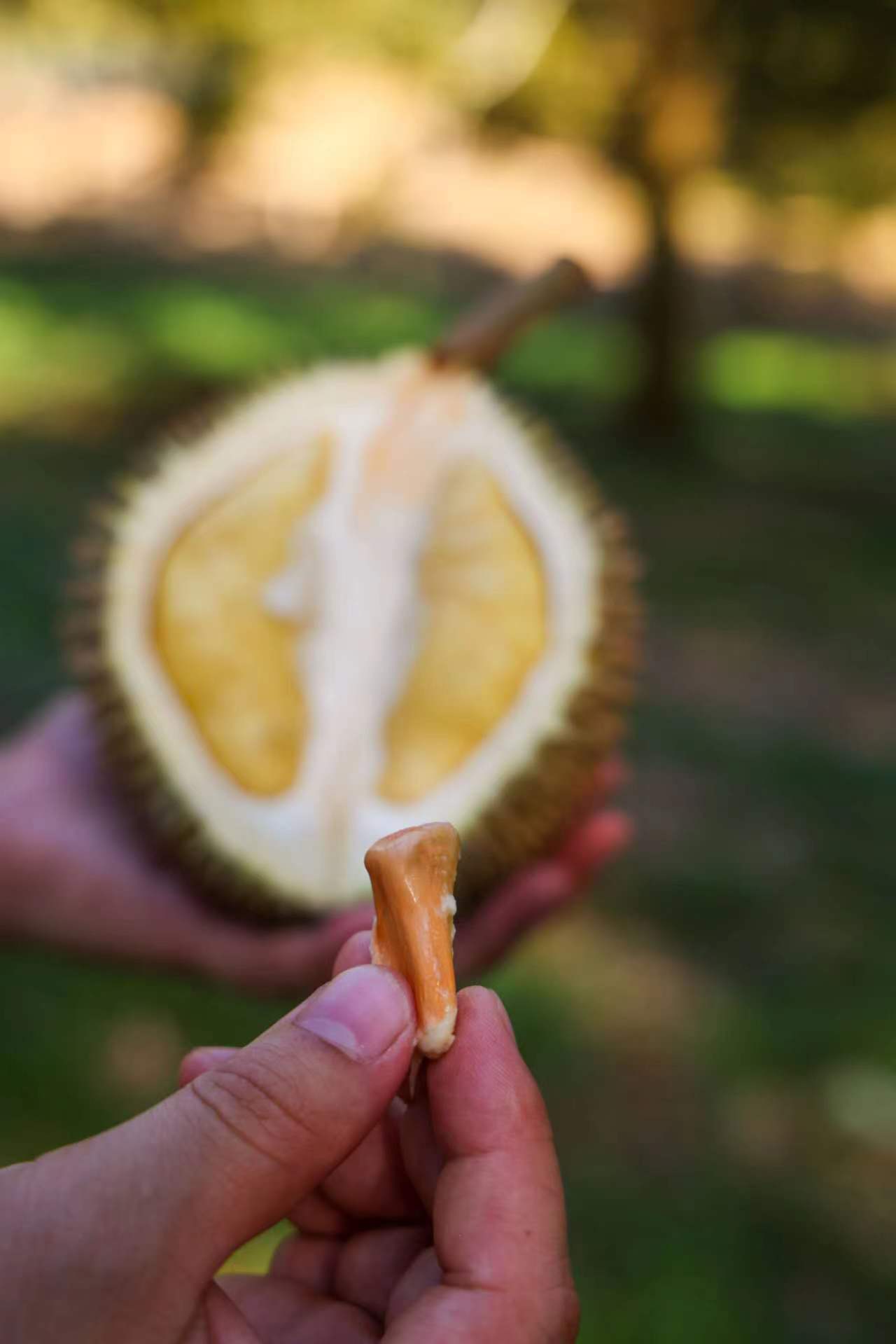 国内几乎难以见到它的身影,因为这次旅途的邂逅,让我们再次与金凤榴莲相遇,就下定决心要把金凤这个好品种挖掘回来,不能让如此优秀的品种被埋没在马来西亚,就让我们来与金凤榴莲来一场美味的邂逅吧!