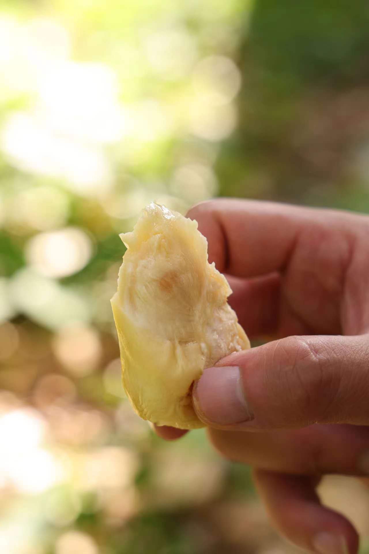 【关于产地】我们的金凤榴莲是与猫山王同一个果园,风景环境十分优美。走进榴莲果园,第一直观感受是“震撼”,其次是“美”,阳光透过浓密的树冠,洒在绿意盎然的土地上,洒在苍老的榴莲老树上,形成了迷人的光影斑驳。