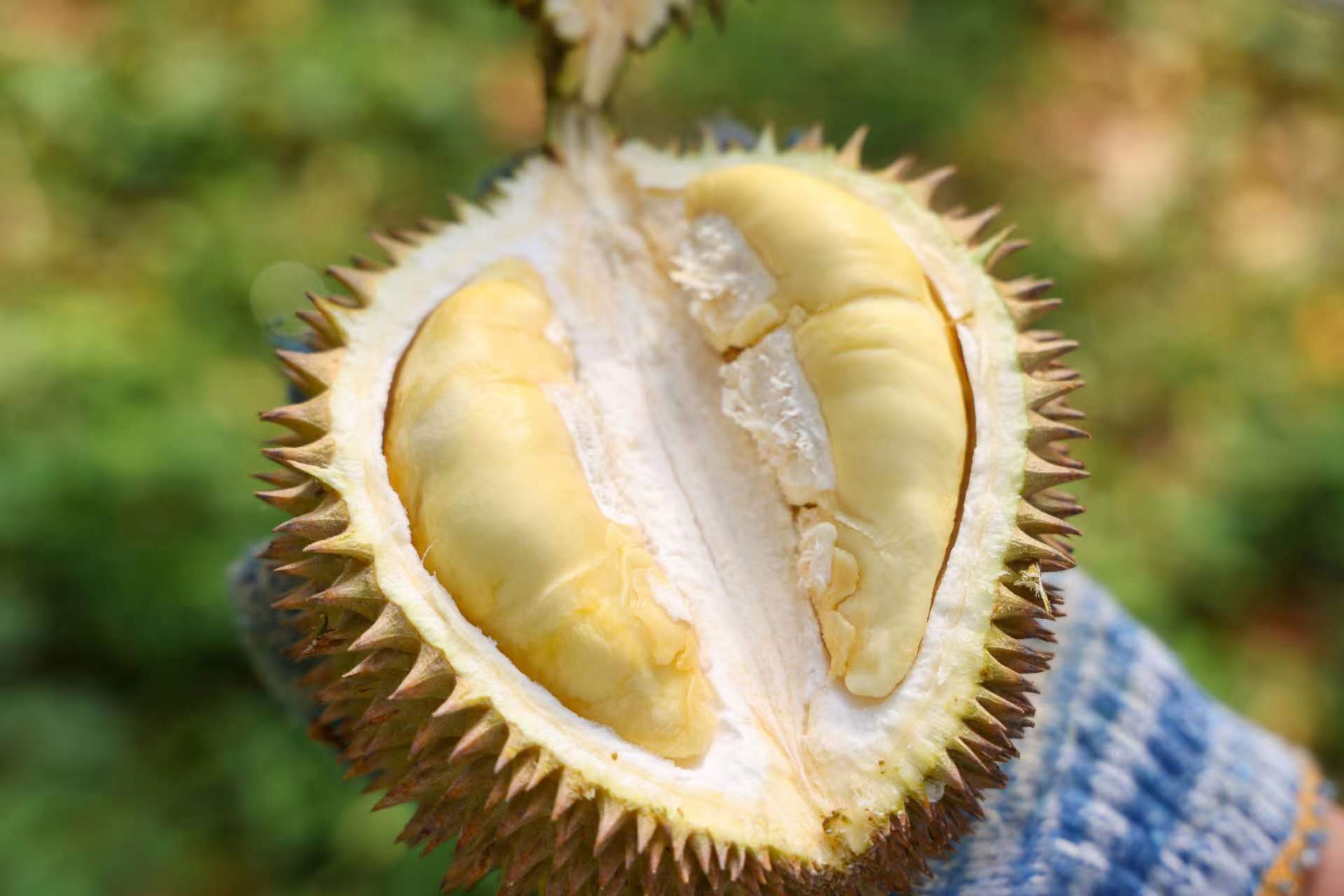 尽管个头不大,但是它的出肉率是极高的,也就是我们俗称的“报恩榴莲”。不但壳很薄,十分的容易打开之外,它的果肉也是十分的饱满,轻轻松松就可以开出五房果肉,等你放入口中的时候,你就会感叹!这才叫做吃榴莲!