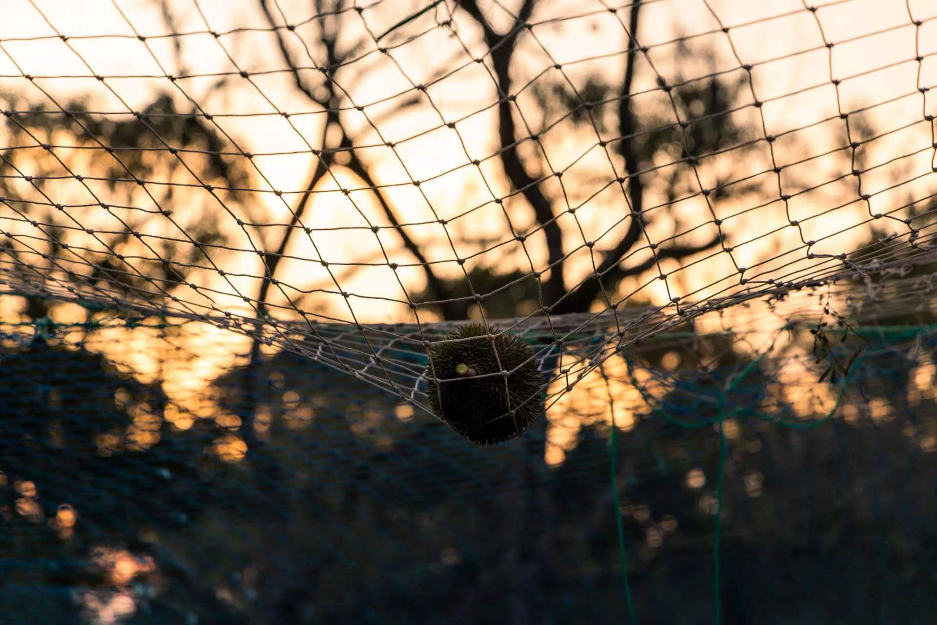 金凤榴莲的采摘方式也是和猫山王榴莲一样,在果树下围出一个巨大的网,在它自然成熟的时候,掉落下来接住它,同样也遵循着自然成熟、瓜熟蒂落的原则。