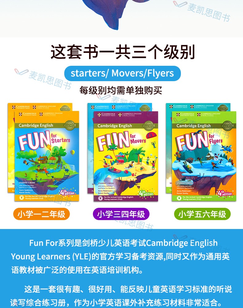 新版fun for starters movers flyers儿童听说读写cambridge english剑桥少儿英语yle官方考试教材