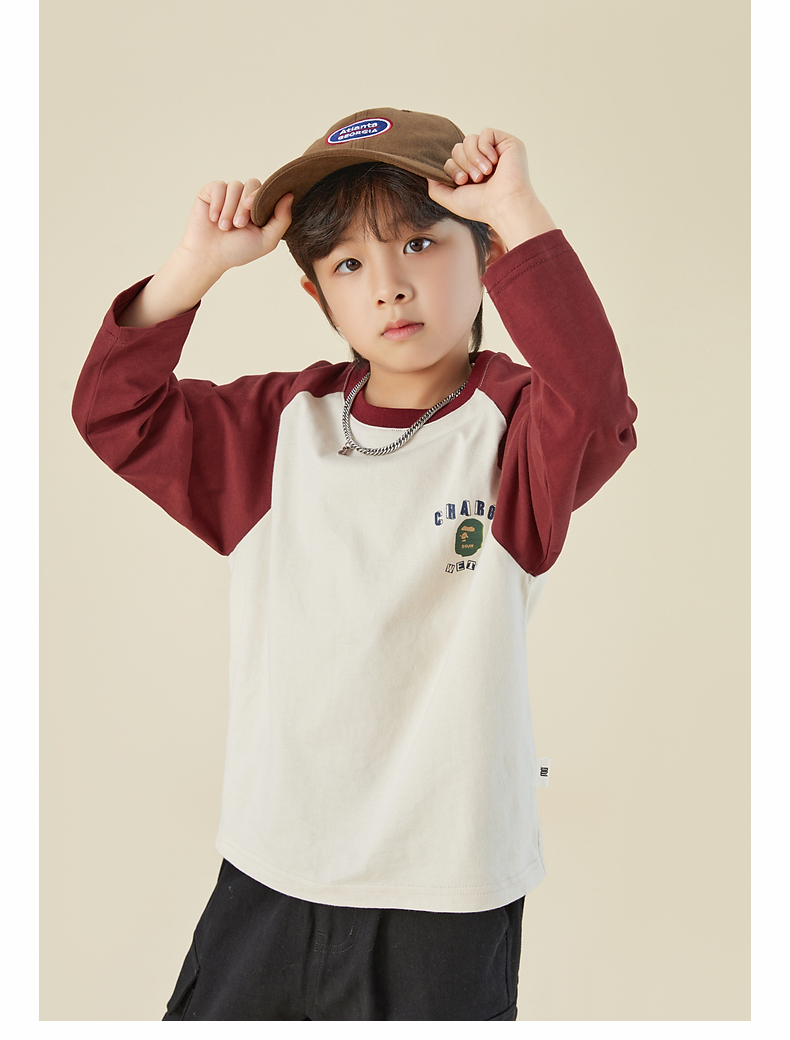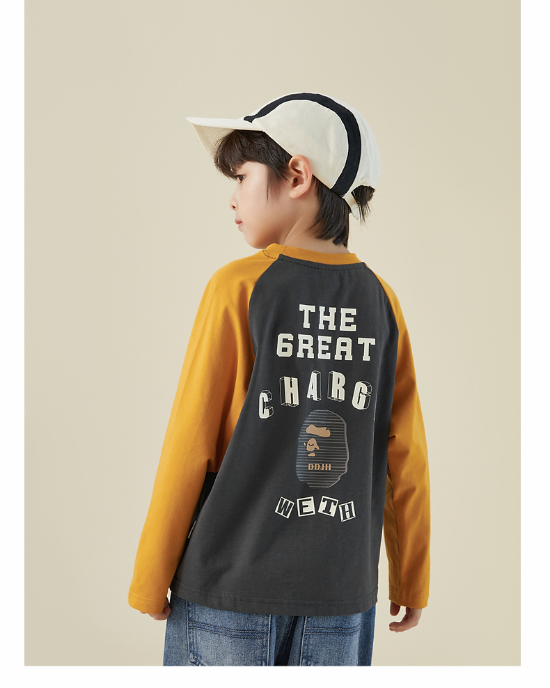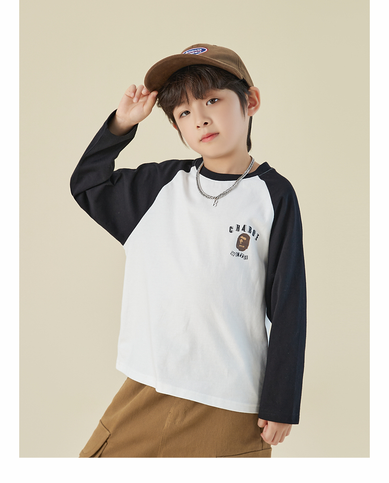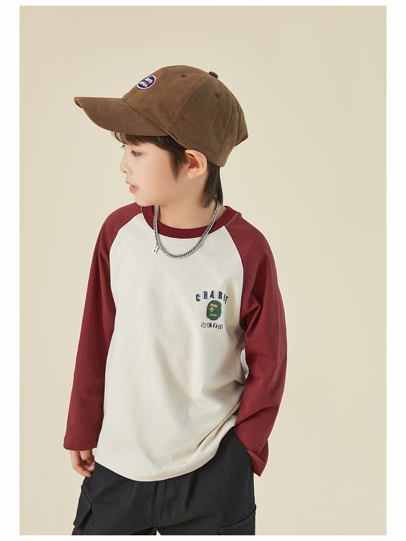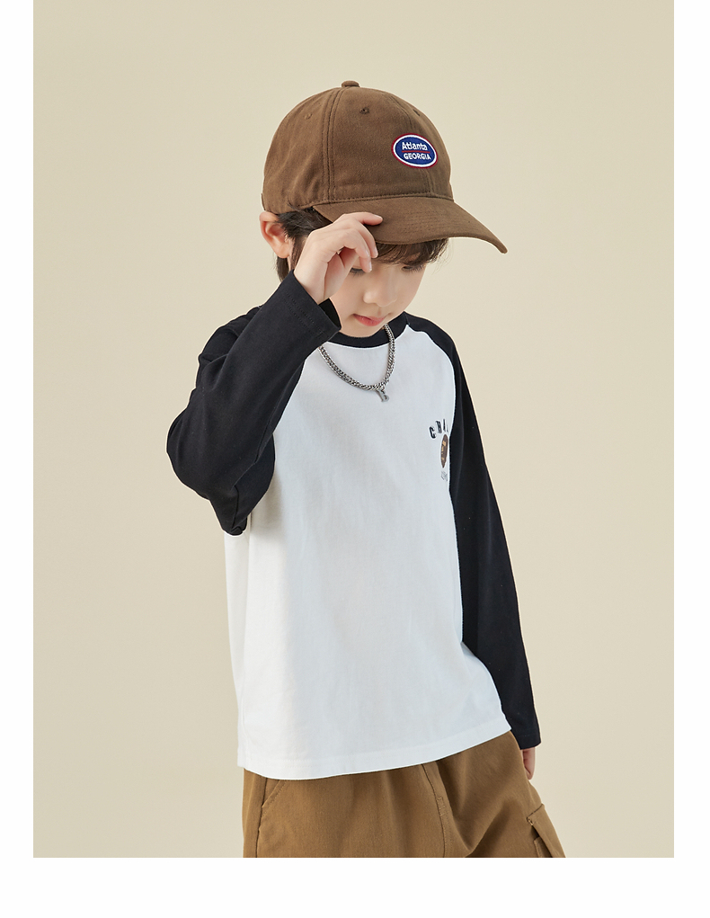 【件件底价,童装双倍积分】多多家男童长袖T恤春秋季撞色插肩袖儿童上衣2024新款中大童春装9095