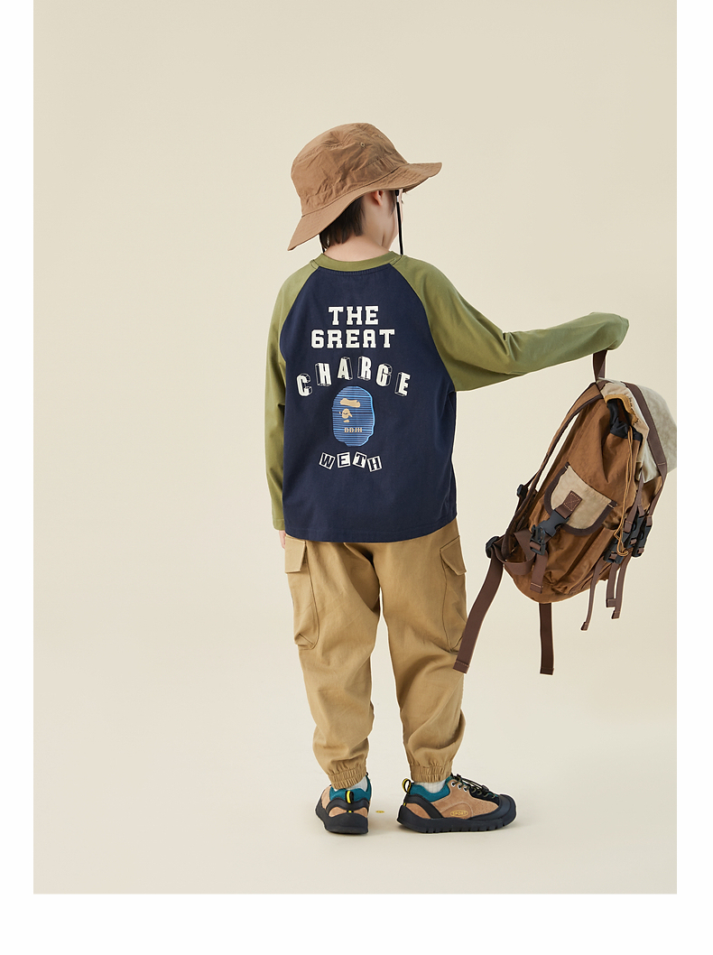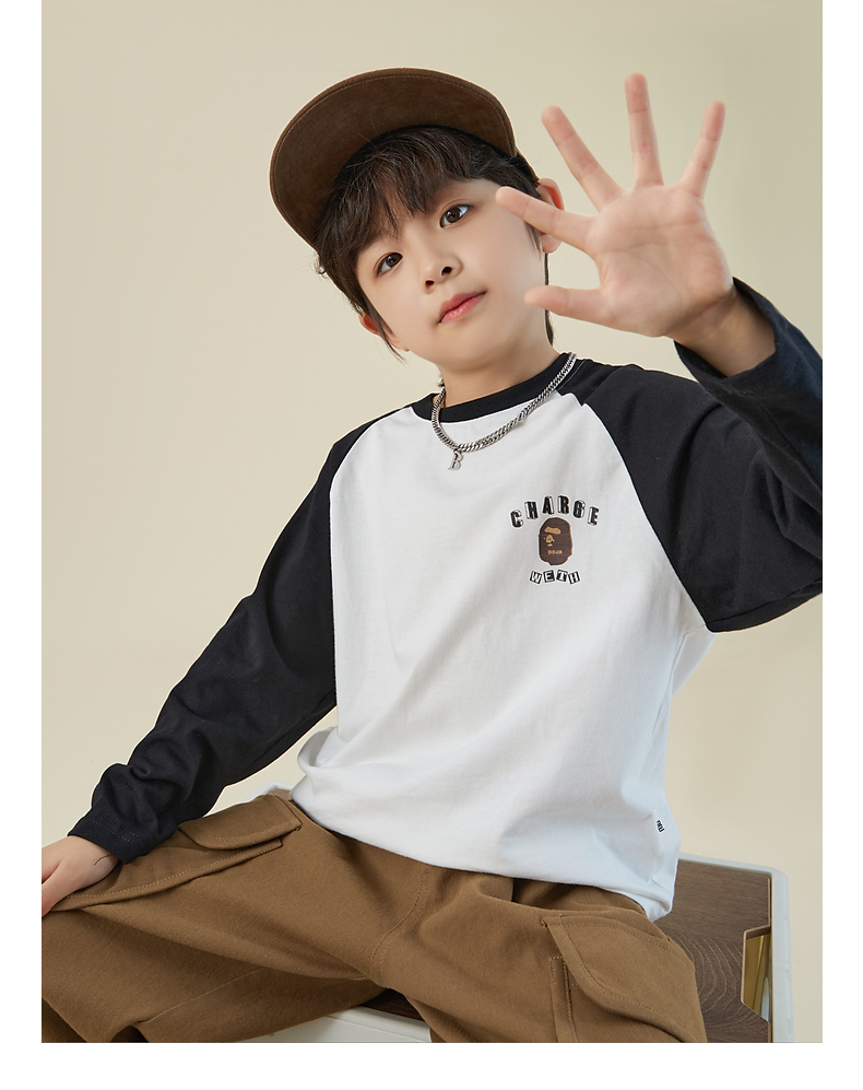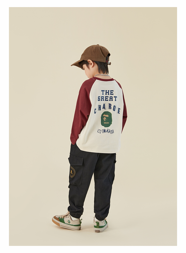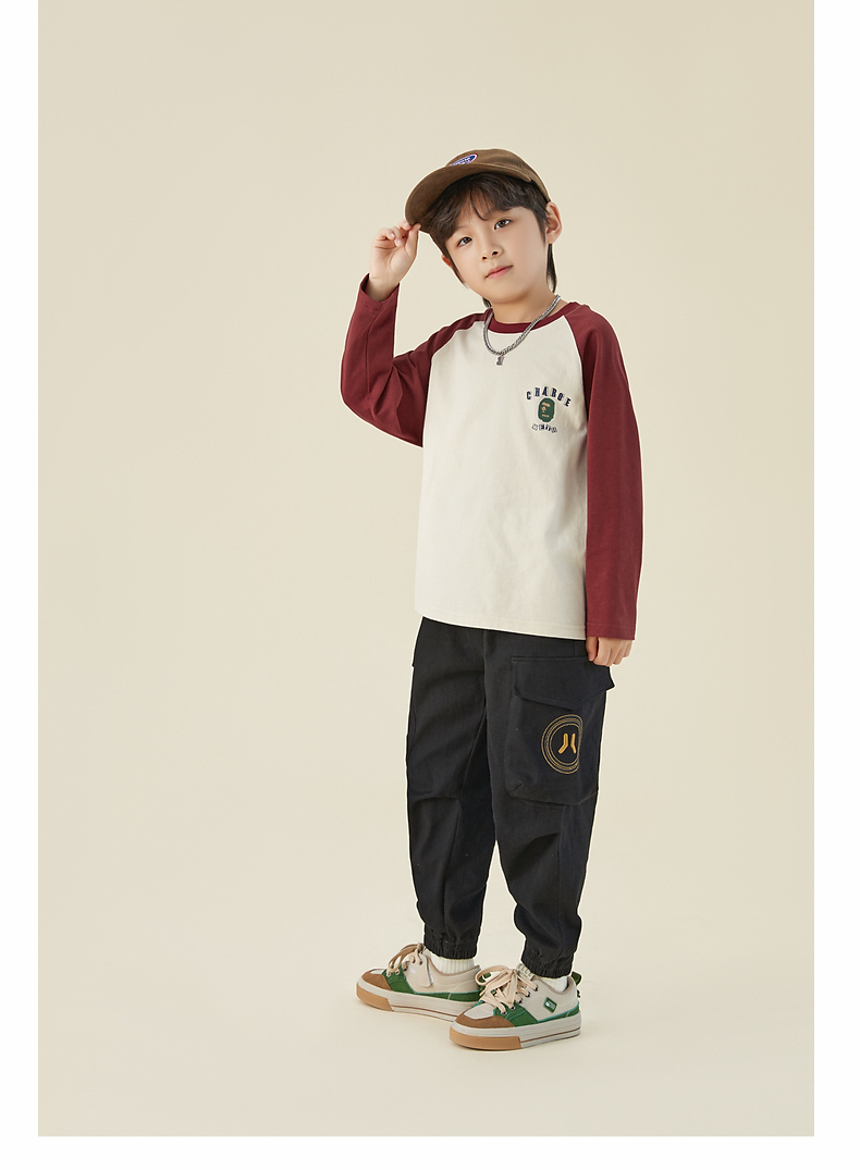 【件件底价,童装双倍积分】多多家男童长袖T恤春秋季撞色插肩袖儿童上衣2024新款中大童春装9095