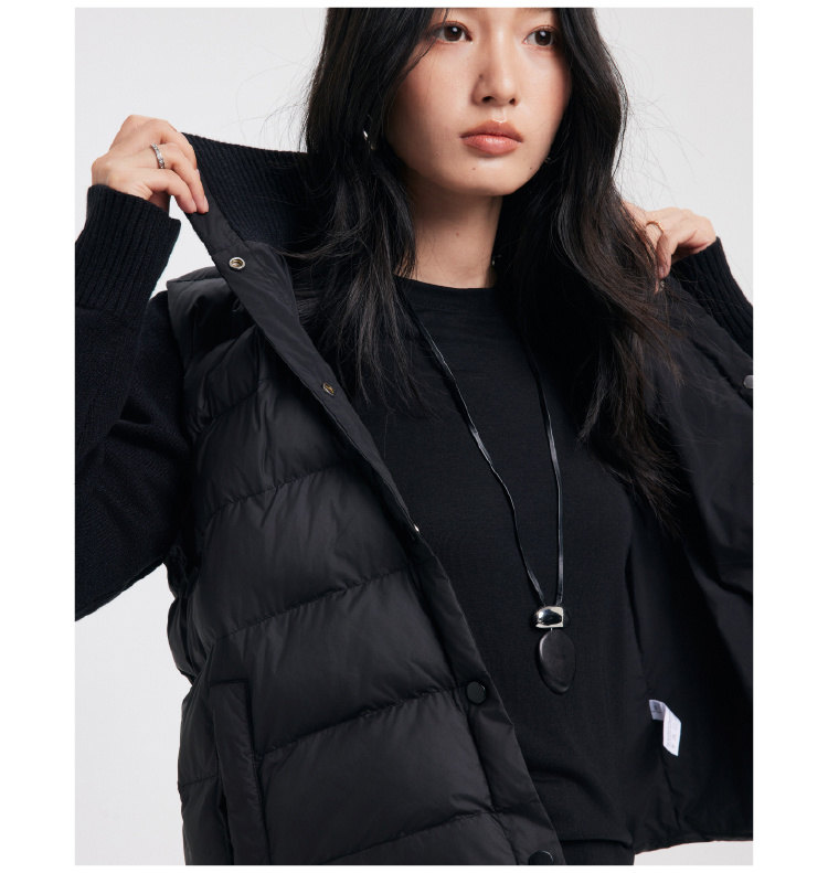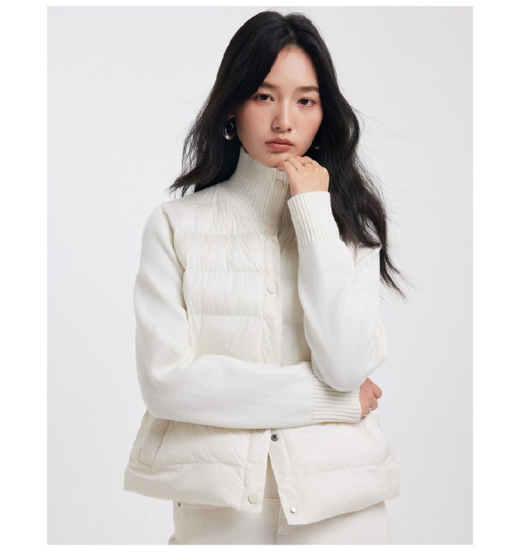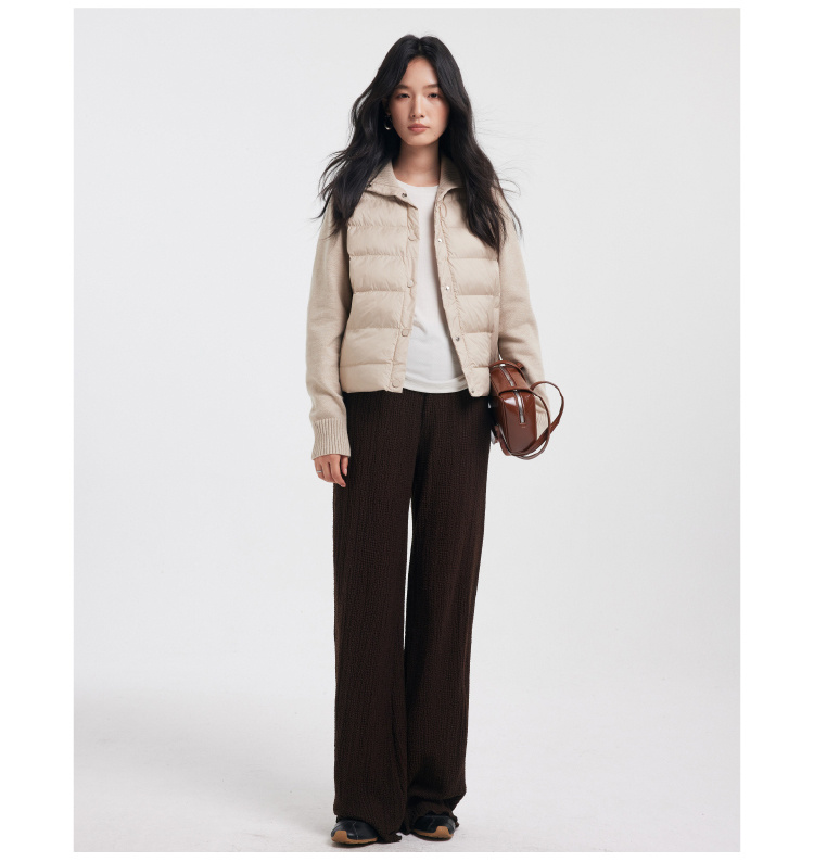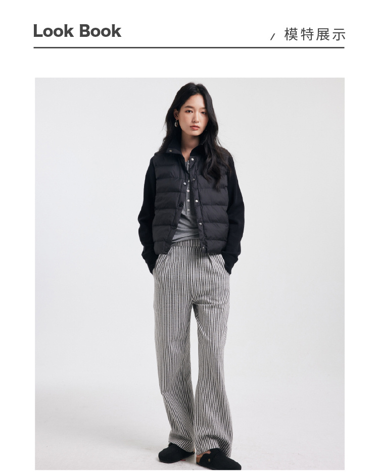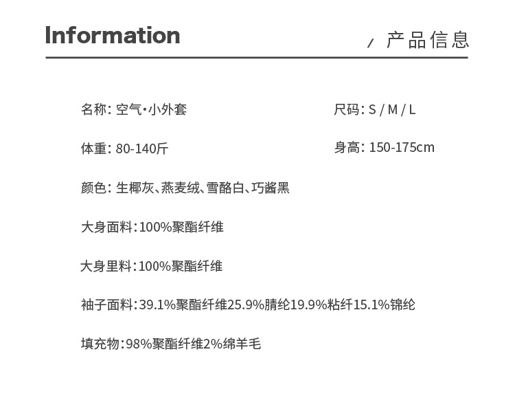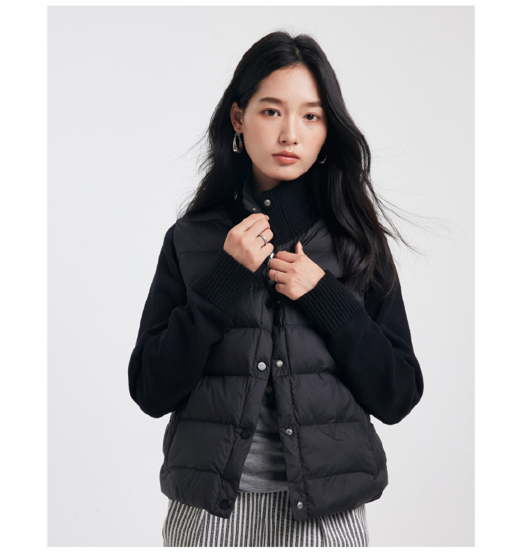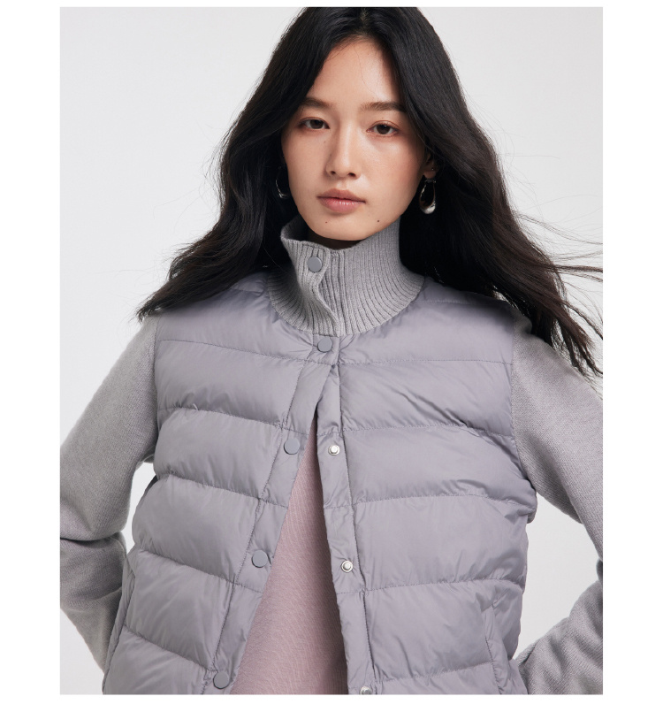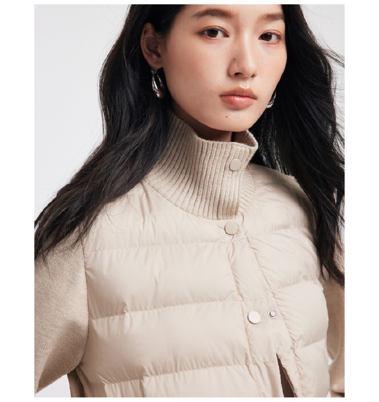 用针织袖子和领口去搭配机织的面料大身,材质的碰撞更显年轻时尚感。内里填充的是优某库同款空气绒,3D中空纤维打造的颗粒状填充物,单位体积内可以多层次的容纳更多的空气。又利用这chao细的纤维制成的特殊3D颗粒状,提高了蓬松度。使得这款暖若羽绒,空气感轻盈