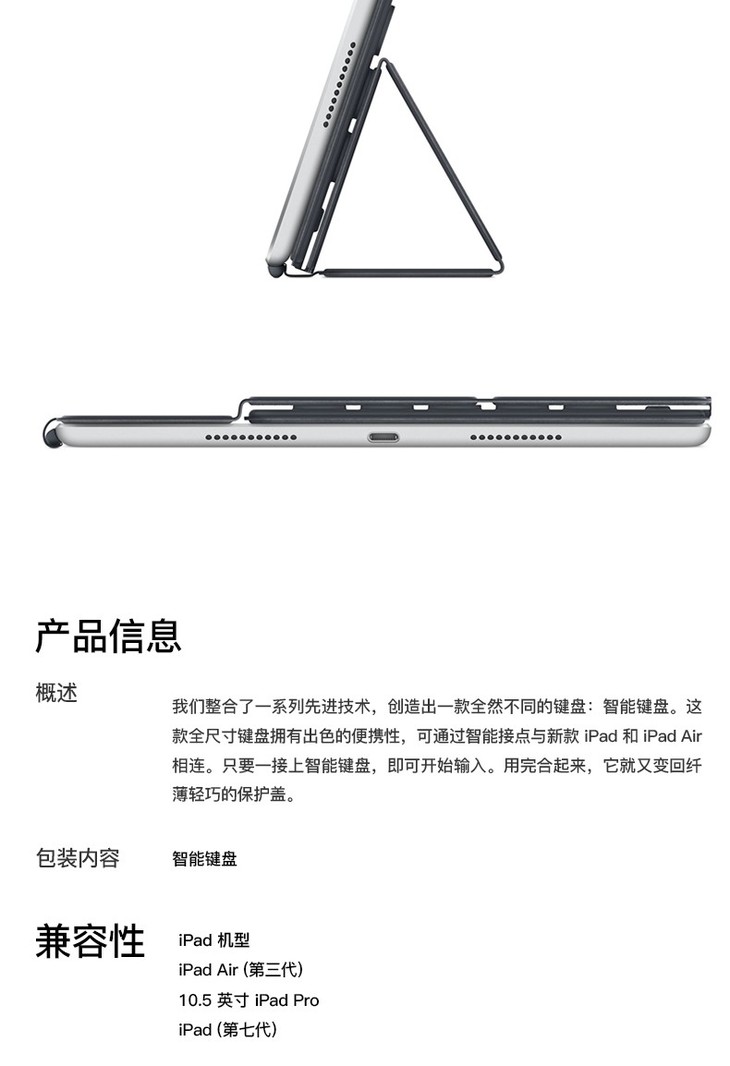 Apple适用于iPad 10.2英寸(九代/八代)和iPad Air 3的智能键盘-中文(拼音)