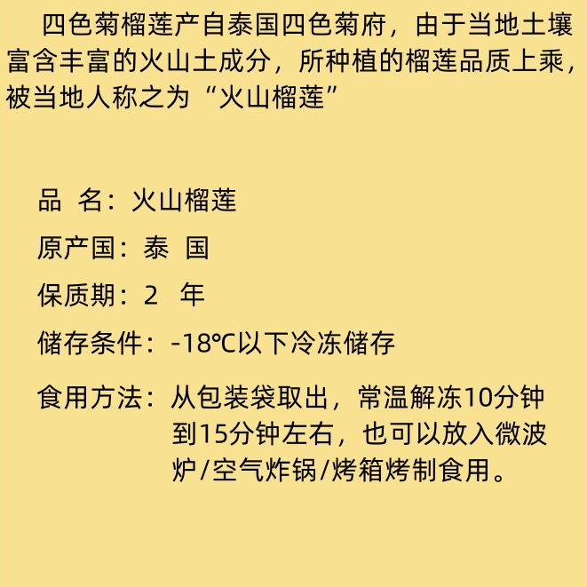 990~1kg 冷冻火山榴莲 冷冻榴莲(带核) 泰国冷冻榴莲