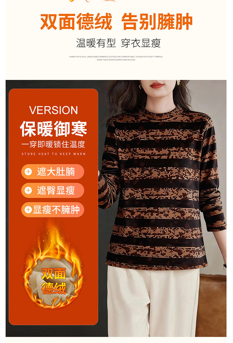 德绒半高领打底衫女冬季新款显瘦遮肚长袖T恤大码宽松内搭上衣胖m
