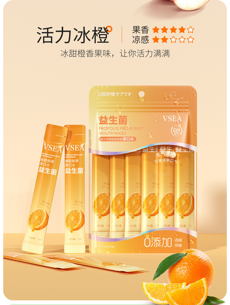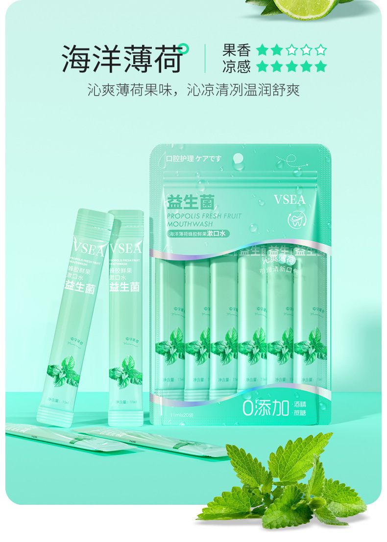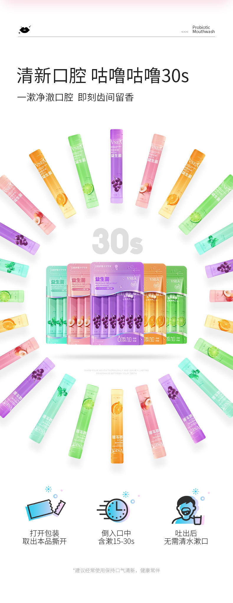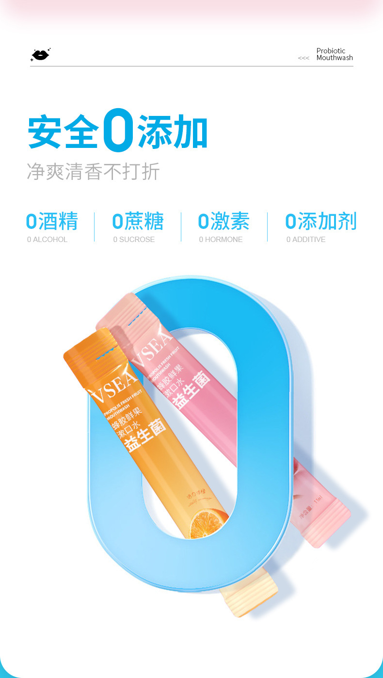 「20条装!五款口味」vsea益生菌漱口水 口气清新便携式一次性口腔护理