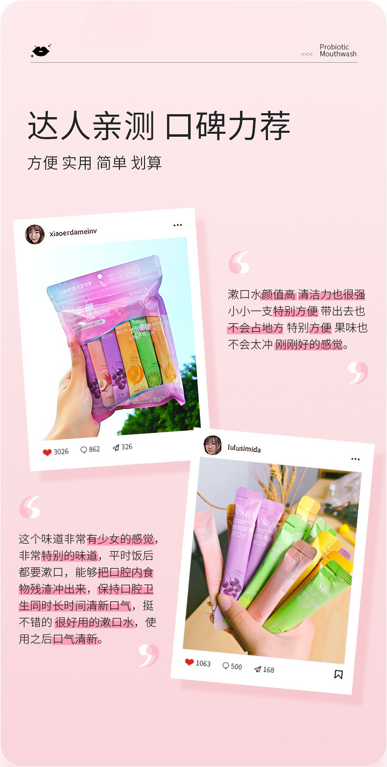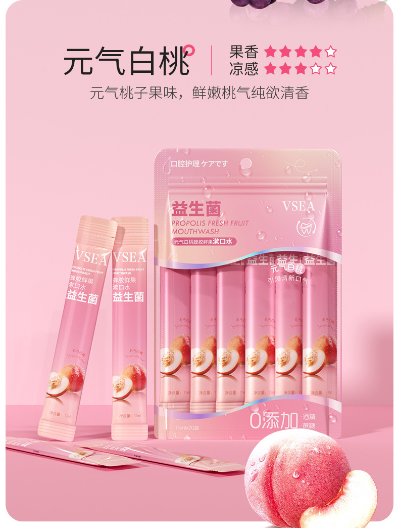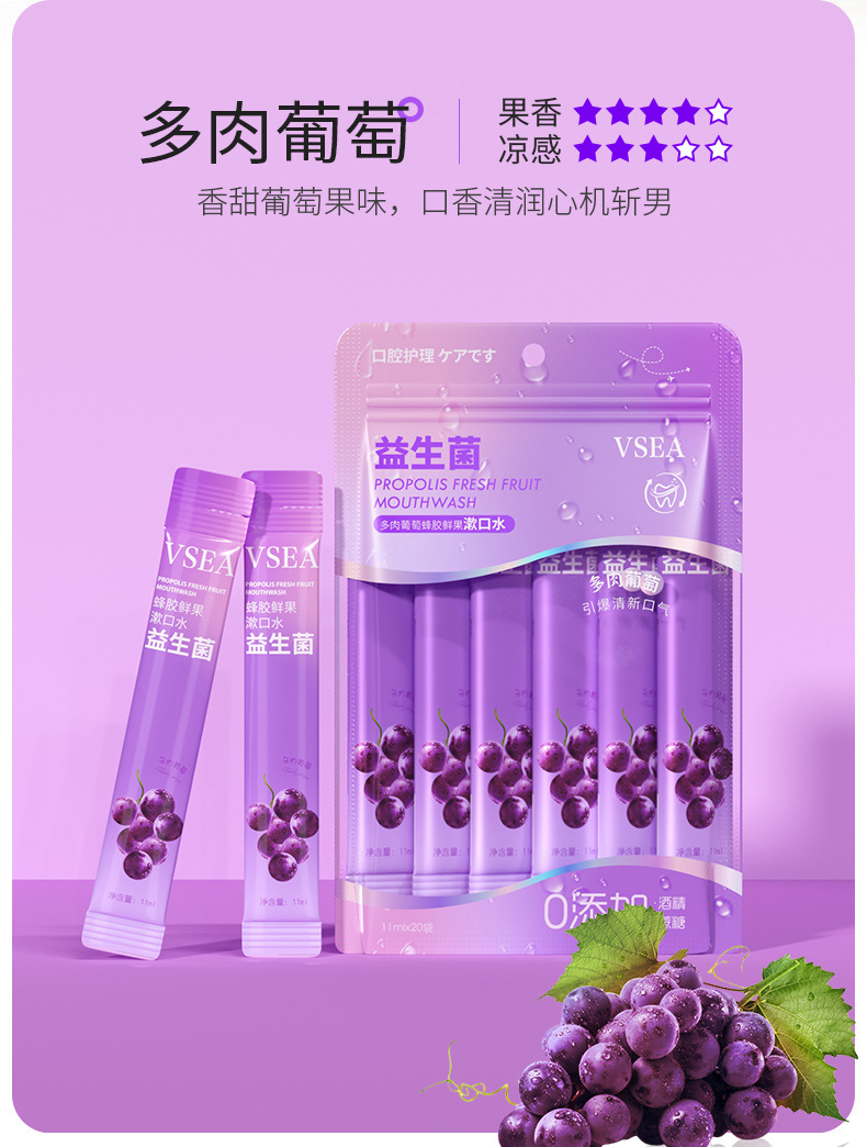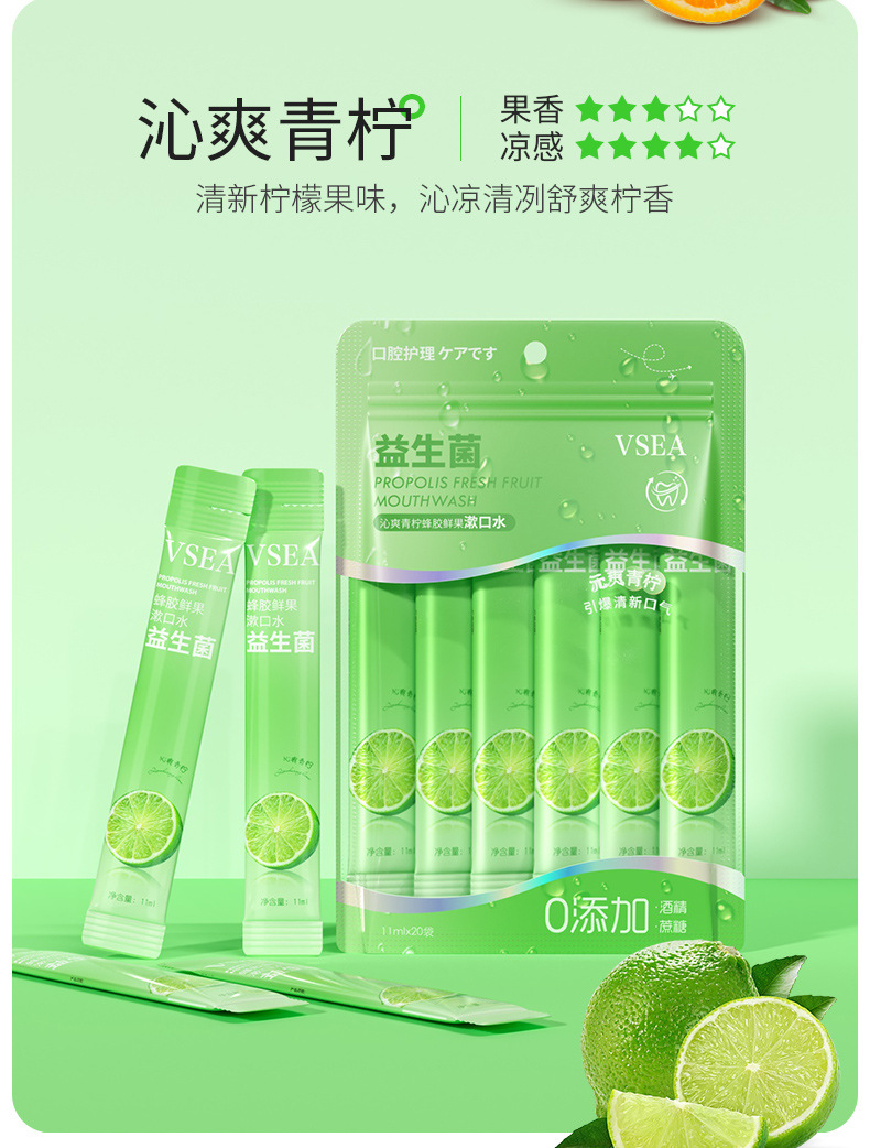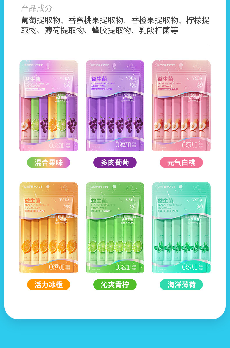 「20条装!五款口味」vsea益生菌漱口水 口气清新便携式一次性口腔护理