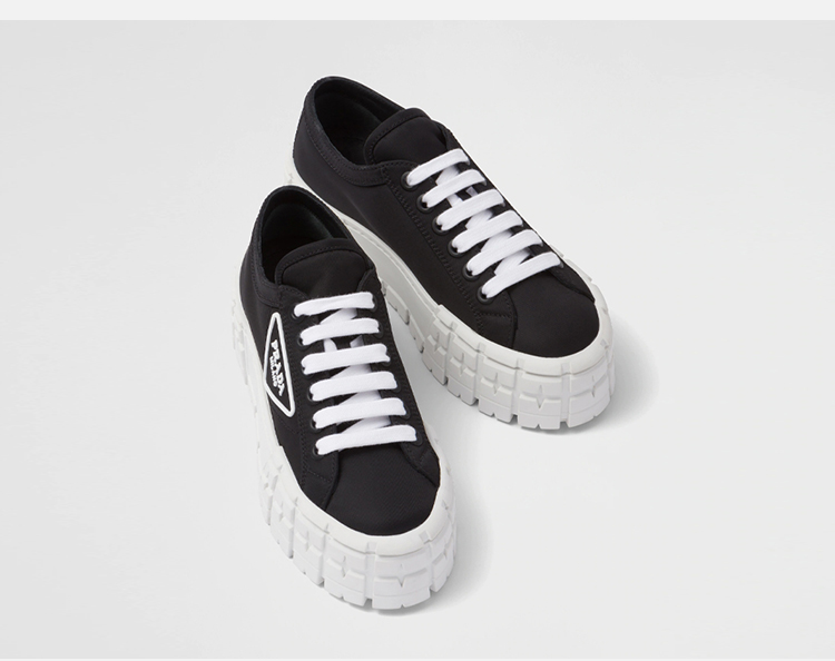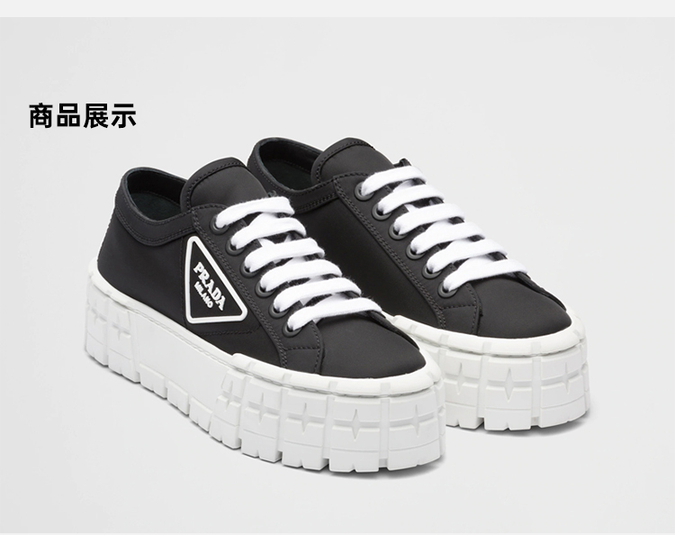 【二】PRADA 普拉达 女士 Double Wheel 双轮尼龙华达呢橡胶三角徽标系带休闲运动鞋 黑色 1E260M 3LFX F0632